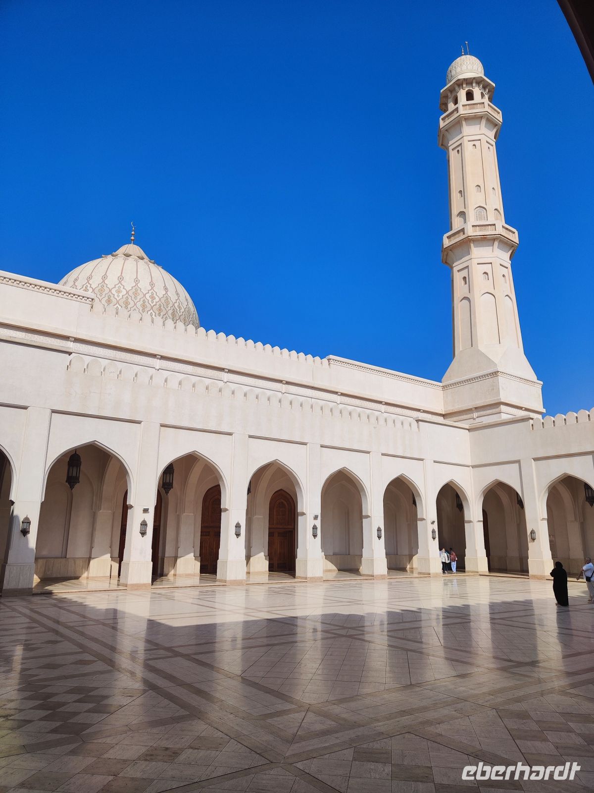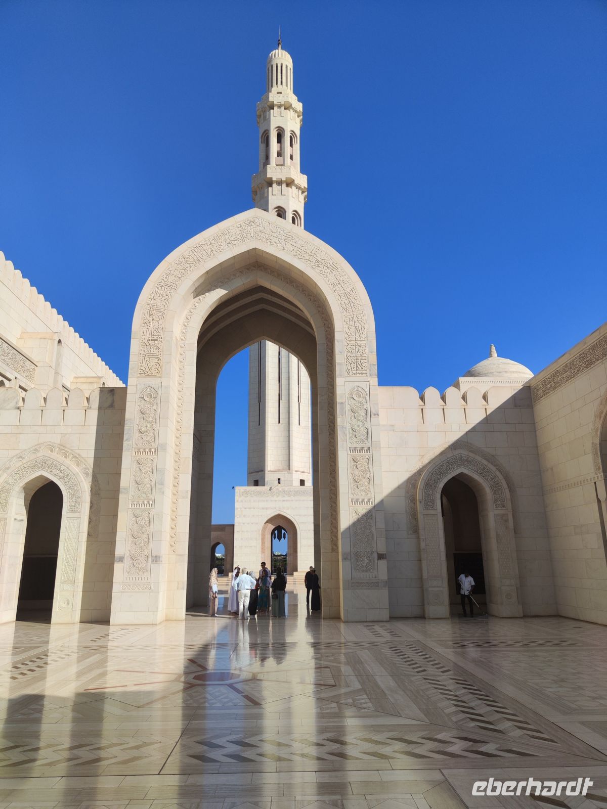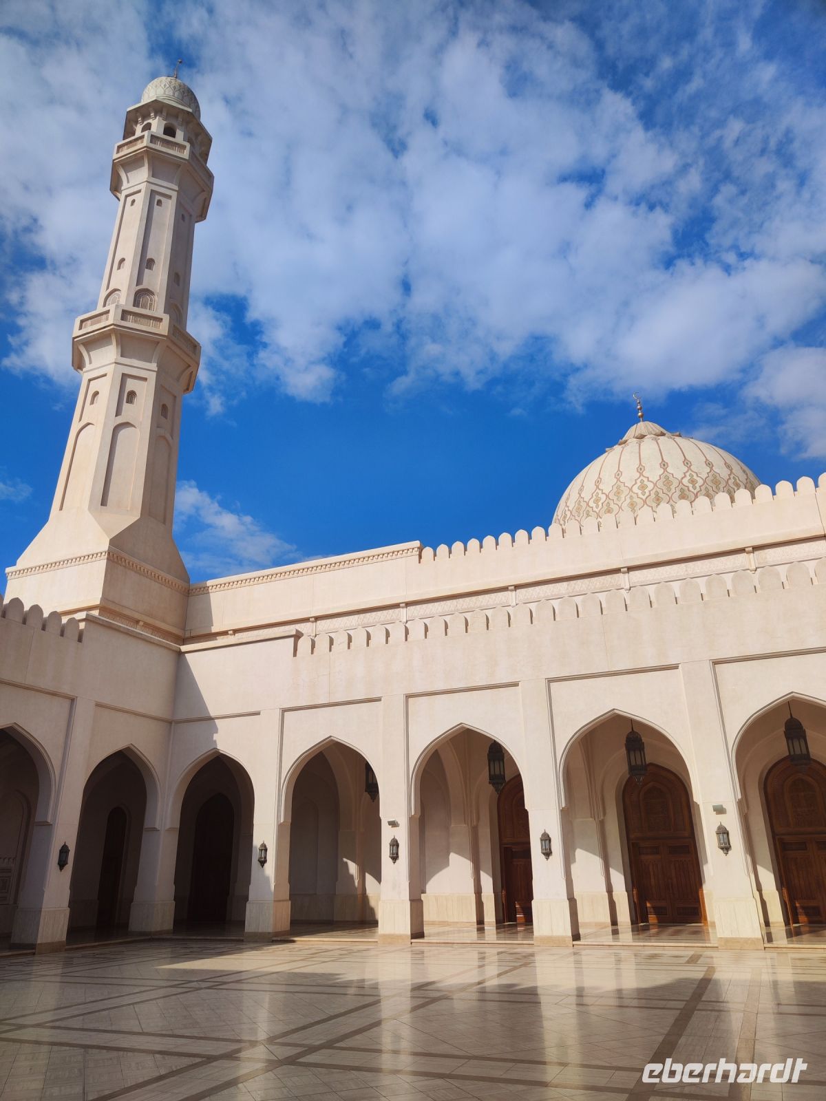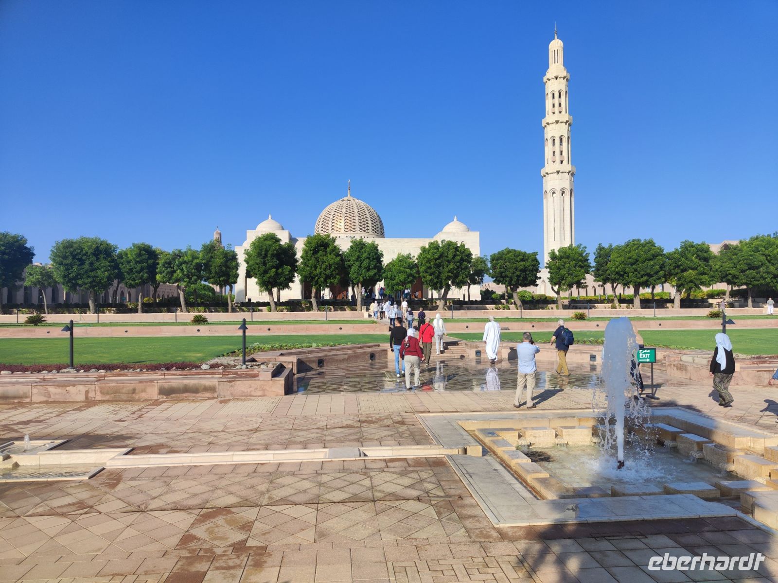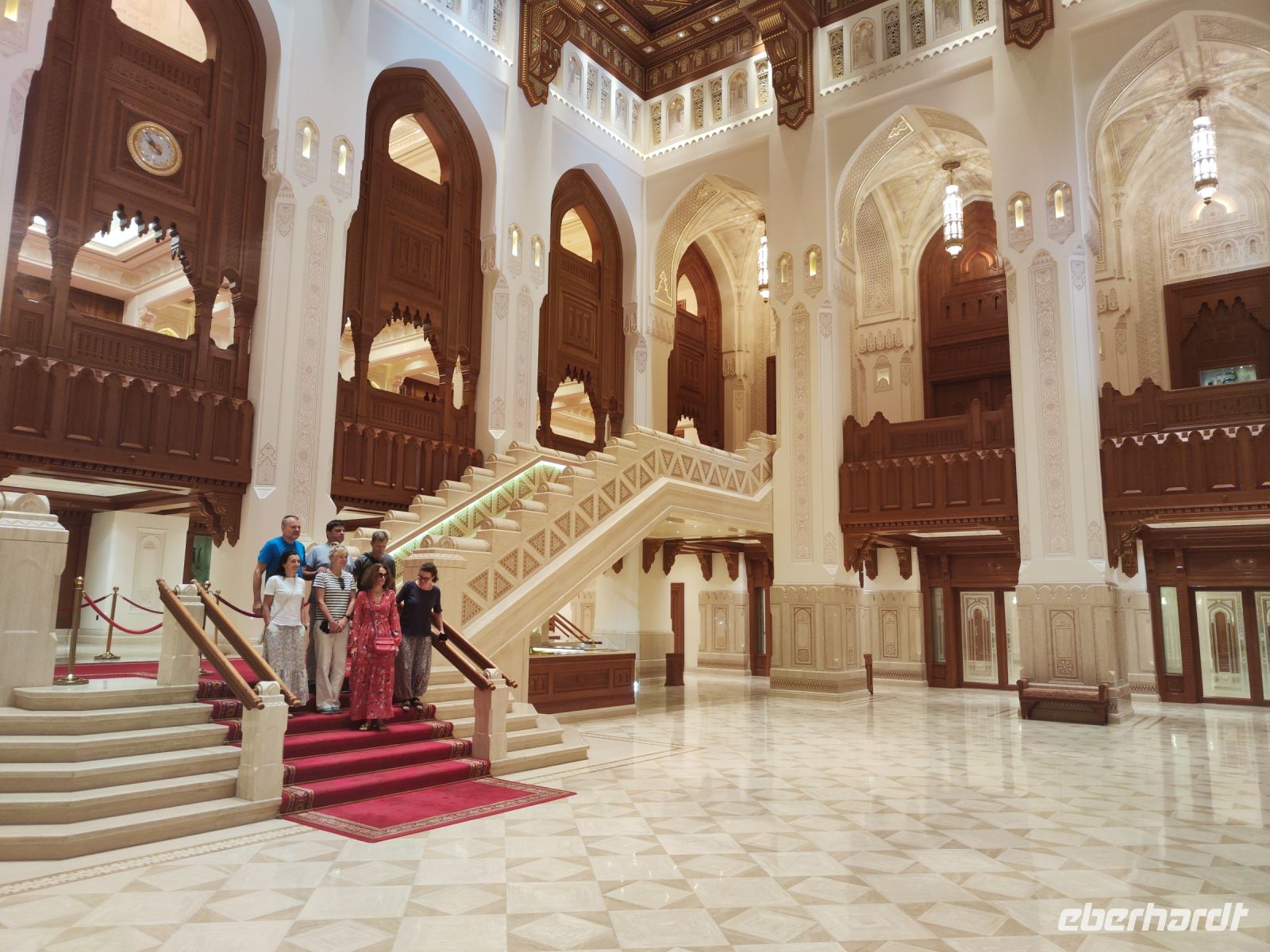 Wir trafen uns voller Vorfreude am Flughafen Frankfurt, bereit für unser Abenteuer im Oman. Der Flug nach Muscat verlief reibungslos, und wir waren gespannt auf die kommenden Tage. Am Flughafen in Muscat trafen wir die übrigen Reisegäste und unseren Reiseleiter Ajid, der uns herzlich willkommen hieß. Unser erster Halt war die beeindruckende Sultan Qaboos Moschee. Die Moschee wurde 2001 fertiggestellt und ist nach Sultan Qaboos bin Said Al Said benannt, der über 40 Jahre lang das Sultanat Oman regierte. Beim architektonischen Meisterwerk wurde modernes Design und traditioneller omanischer Baukunst vereint. Auffällig sind die 5 Minarette, der riesige Gebetsraum und der Kronleuchter aus Swarovski Steinen. Bei unserem Rundgang bestaunten wir die Moschee und die Baukunst der Omanis. Anschließend besuchten wir das Opernhaus in Muscat, das ebenfalls mit seiner modernen Eleganz beeindruckte. Wir hatten die Gelegenheit, die Räumlichkeiten zu erkunden und mehr über das 2011 erbaute Gebäude zu erfahren. Unser Mittagessen hatte unser Reiseleiter Ajit am Strand von Muscat in einem türkischen Restaurant reserviert. Wir genossen frischen Fisch und Meeresfrüchte in einer entspannten Atmosphäre und lauschten dem Rauschen des Meeres.