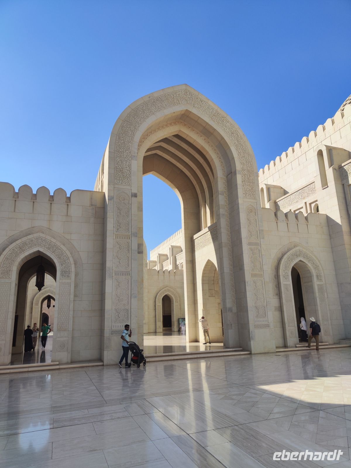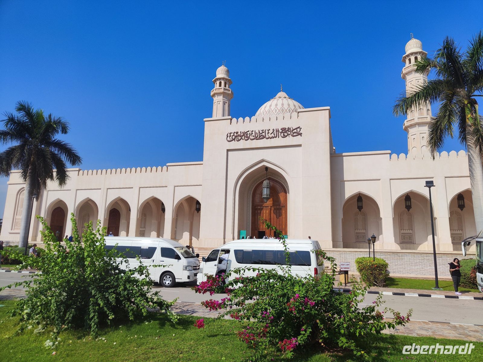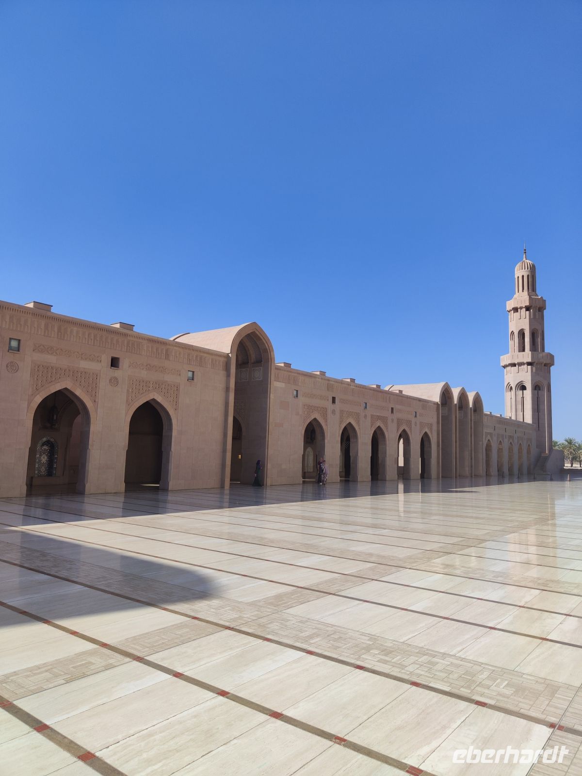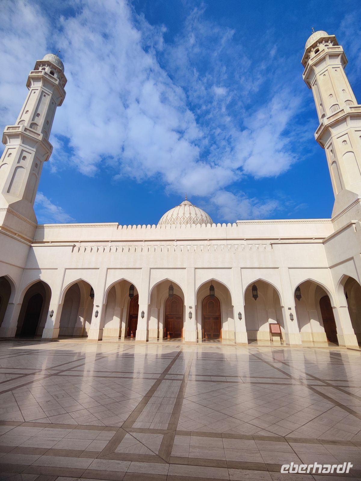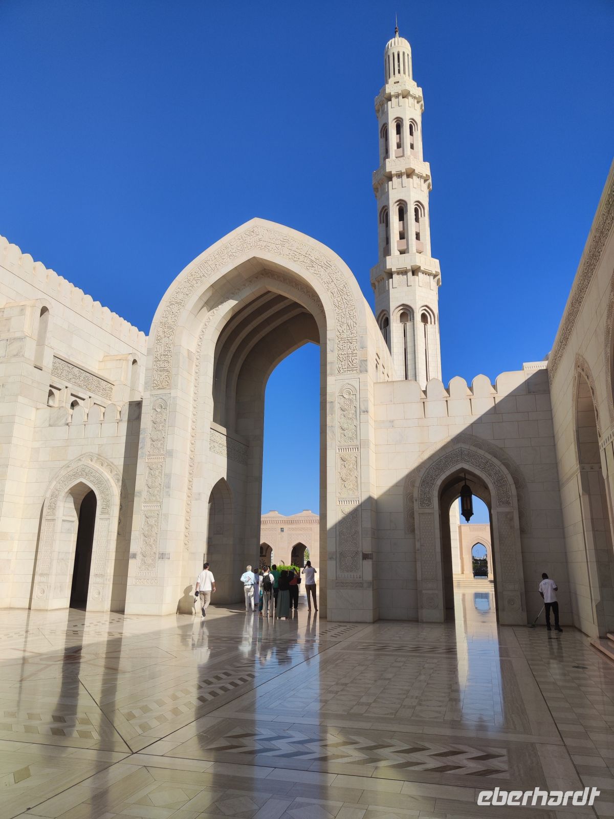 Wir trafen uns voller Vorfreude am Flughafen Frankfurt, bereit für unser Abenteuer im Oman. Der Flug nach Muscat verlief reibungslos, und wir waren gespannt auf die kommenden Tage. Am Flughafen in Muscat trafen wir die übrigen Reisegäste und unseren Reiseleiter Ajid, der uns herzlich willkommen hieß. Unser erster Halt war die beeindruckende Sultan Qaboos Moschee. Die Moschee wurde 2001 fertiggestellt und ist nach Sultan Qaboos bin Said Al Said benannt, der über 40 Jahre lang das Sultanat Oman regierte. Beim architektonischen Meisterwerk wurde modernes Design und traditioneller omanischer Baukunst vereint. Auffällig sind die 5 Minarette, der riesige Gebetsraum und der Kronleuchter aus Swarovski Steinen. Bei unserem Rundgang bestaunten wir die Moschee und die Baukunst der Omanis. Anschließend besuchten wir das Opernhaus in Muscat, das ebenfalls mit seiner modernen Eleganz beeindruckte. Wir hatten die Gelegenheit, die Räumlichkeiten zu erkunden und mehr über das 2011 erbaute Gebäude zu erfahren. Unser Mittagessen hatte unser Reiseleiter Ajit am Strand von Muscat in einem türkischen Restaurant reserviert. Wir genossen frischen Fisch und Meeresfrüchte in einer entspannten Atmosphäre und lauschten dem Rauschen des Meeres.