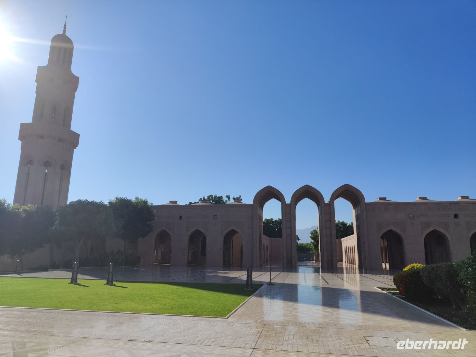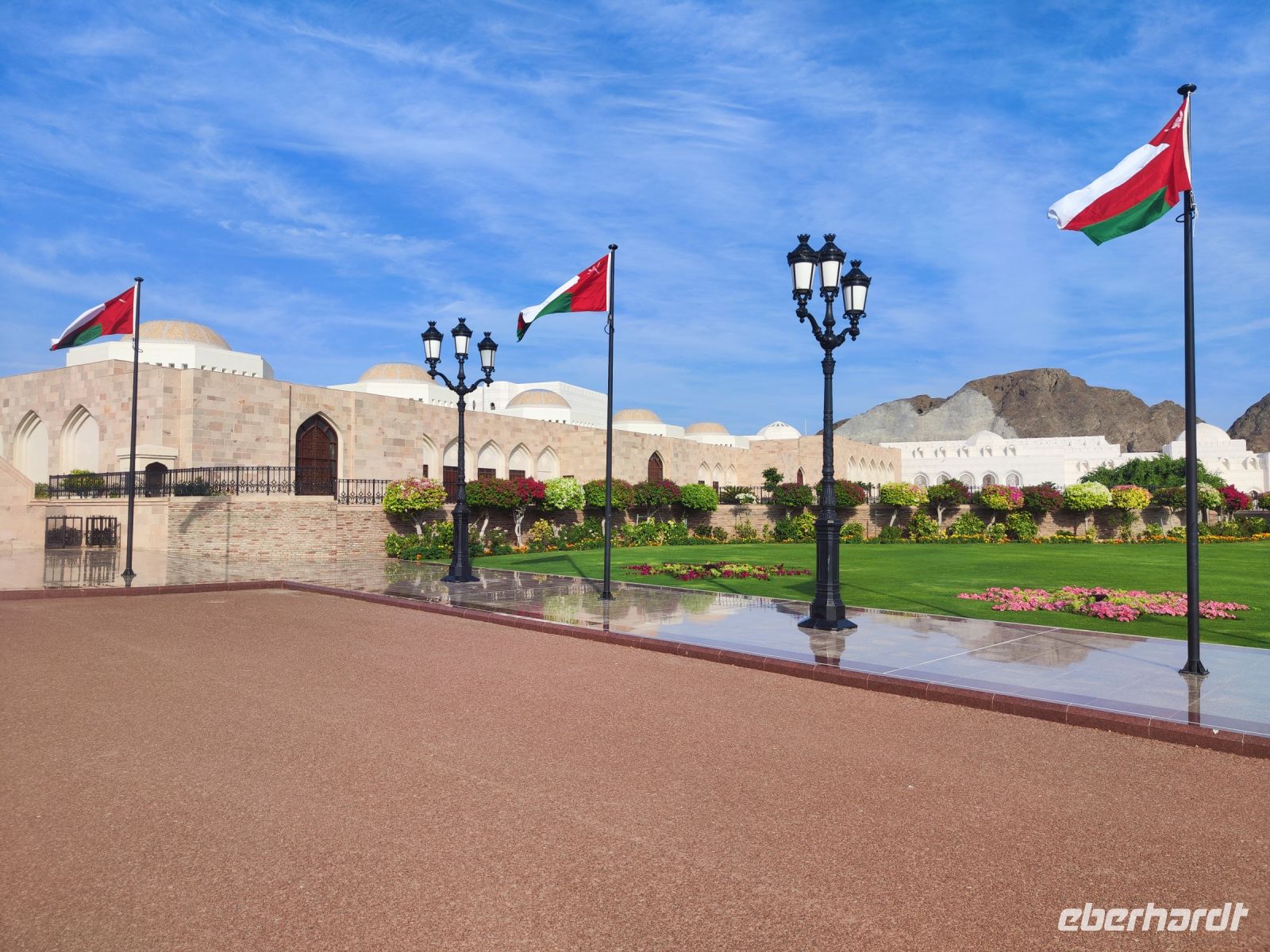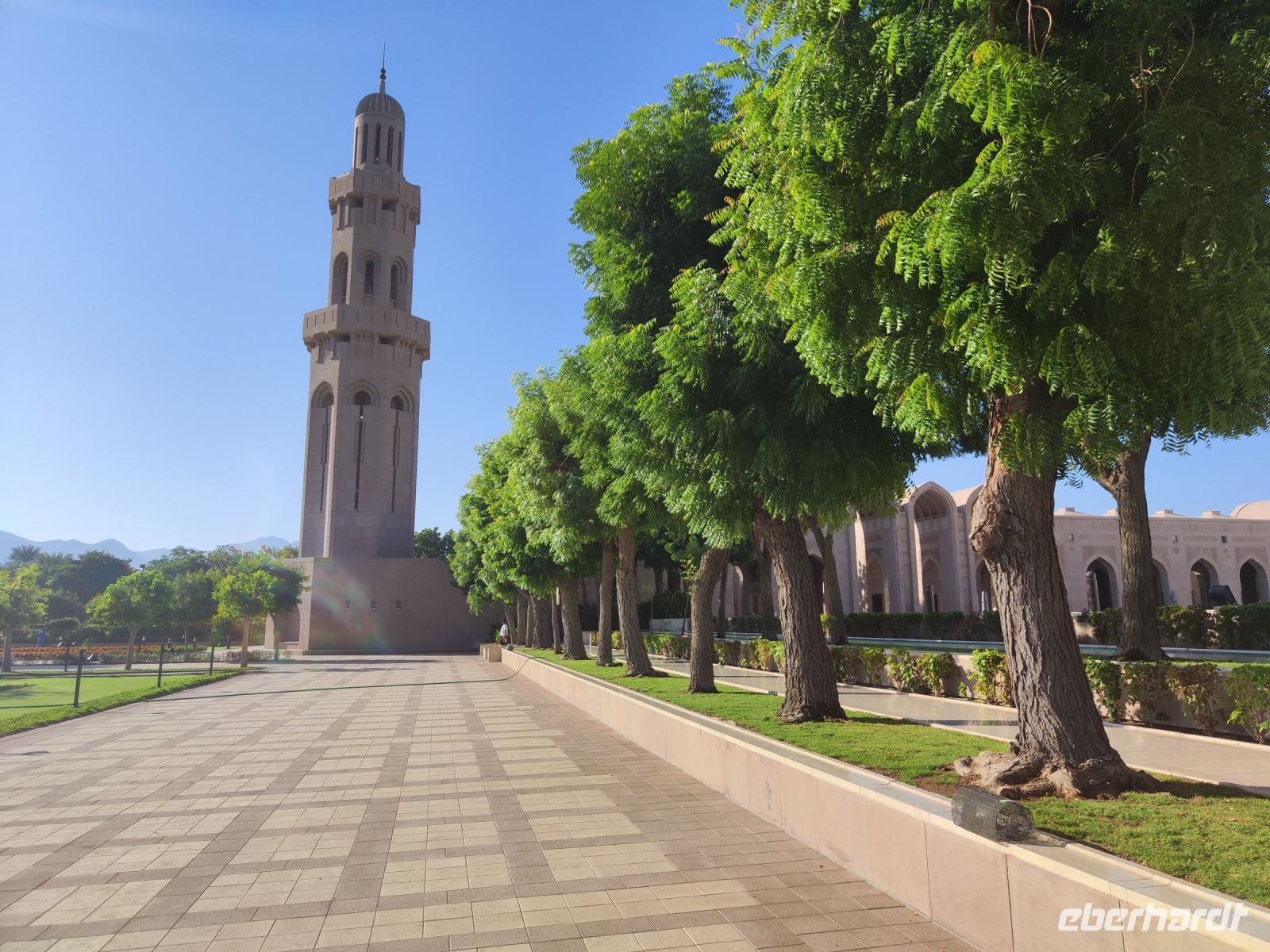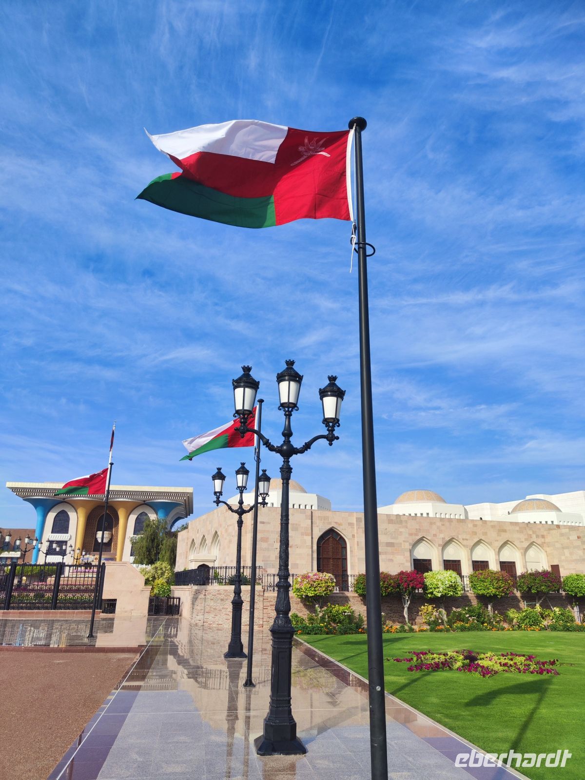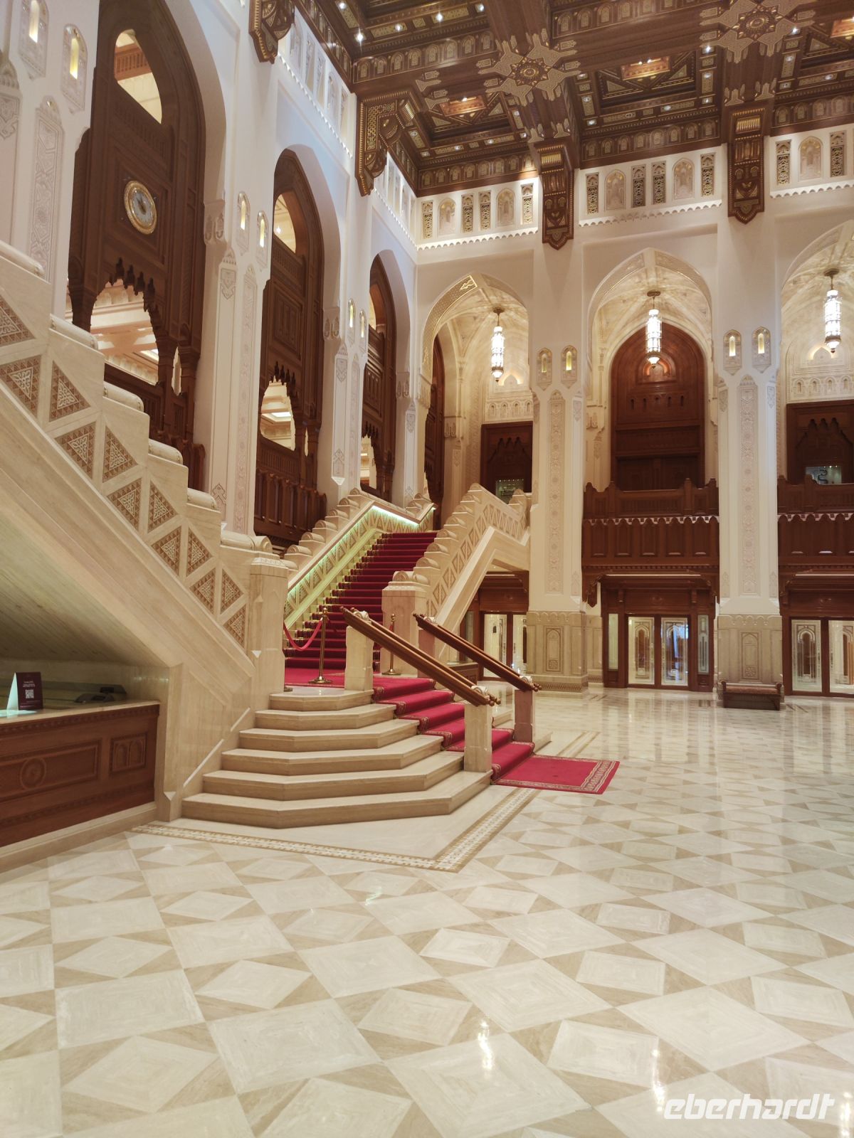 Wir trafen uns voller Vorfreude am Flughafen Frankfurt, bereit für unser Abenteuer im Oman. Der Flug nach Muscat verlief reibungslos, und wir waren gespannt auf die kommenden Tage. Am Flughafen in Muscat trafen wir die übrigen Reisegäste und unseren Reiseleiter Ajid, der uns herzlich willkommen hieß. Unser erster Halt war die beeindruckende Sultan Qaboos Moschee. Die Moschee wurde 2001 fertiggestellt und ist nach Sultan Qaboos bin Said Al Said benannt, der über 40 Jahre lang das Sultanat Oman regierte. Beim architektonischen Meisterwerk wurde modernes Design und traditioneller omanischer Baukunst vereint. Auffällig sind die 5 Minarette, der riesige Gebetsraum und der Kronleuchter aus Swarovski Steinen. Bei unserem Rundgang bestaunten wir die Moschee und die Baukunst der Omanis. Anschließend besuchten wir das Opernhaus in Muscat, das ebenfalls mit seiner modernen Eleganz beeindruckte. Wir hatten die Gelegenheit, die Räumlichkeiten zu erkunden und mehr über das 2011 erbaute Gebäude zu erfahren. Unser Mittagessen hatte unser Reiseleiter Ajit am Strand von Muscat in einem türkischen Restaurant reserviert. Wir genossen frischen Fisch und Meeresfrüchte in einer entspannten Atmosphäre und lauschten dem Rauschen des Meeres.