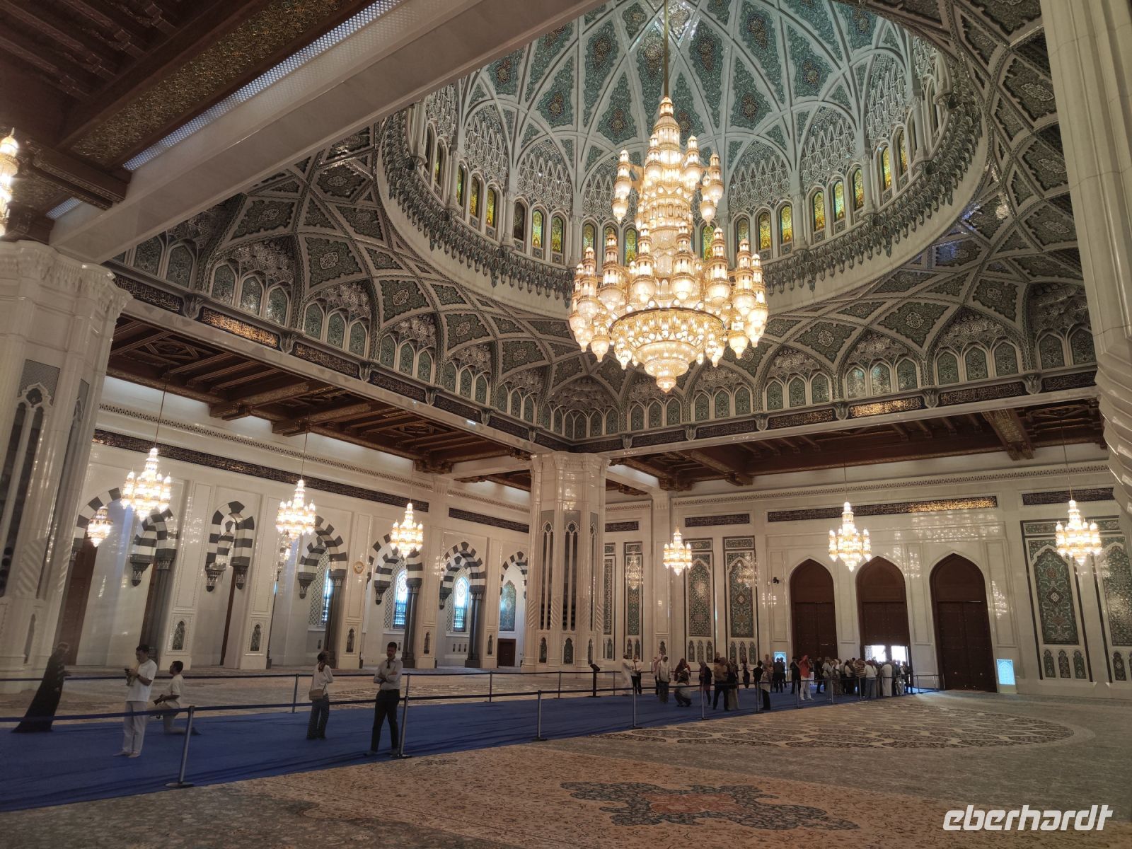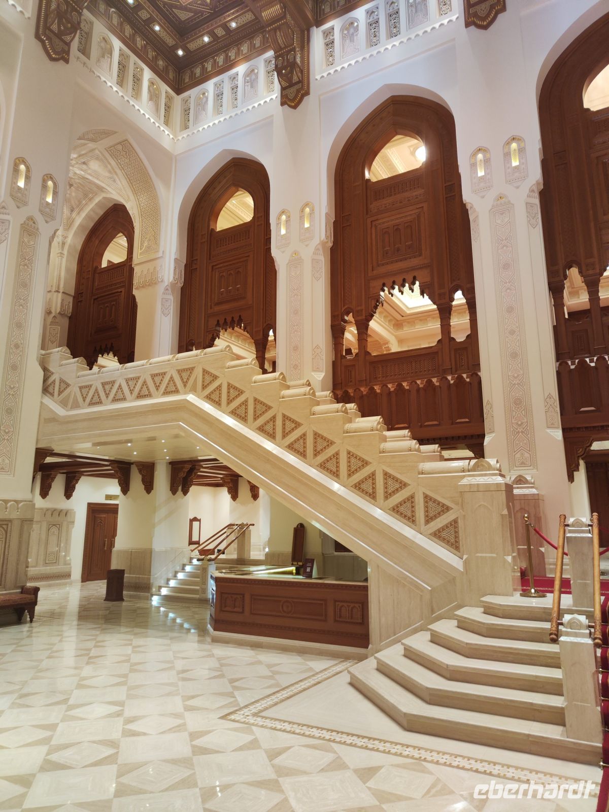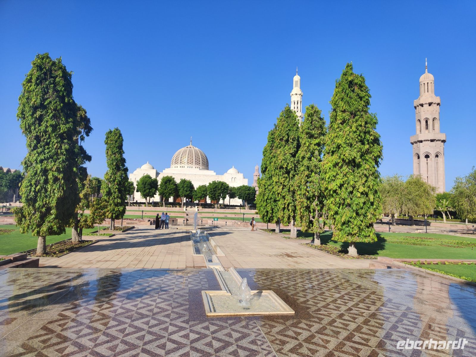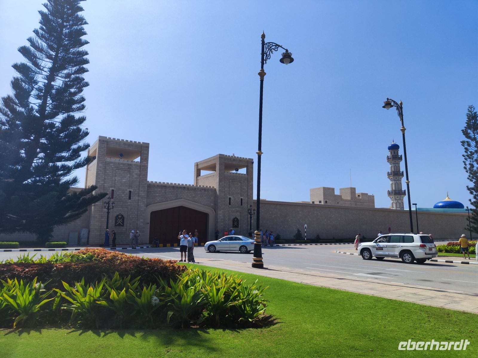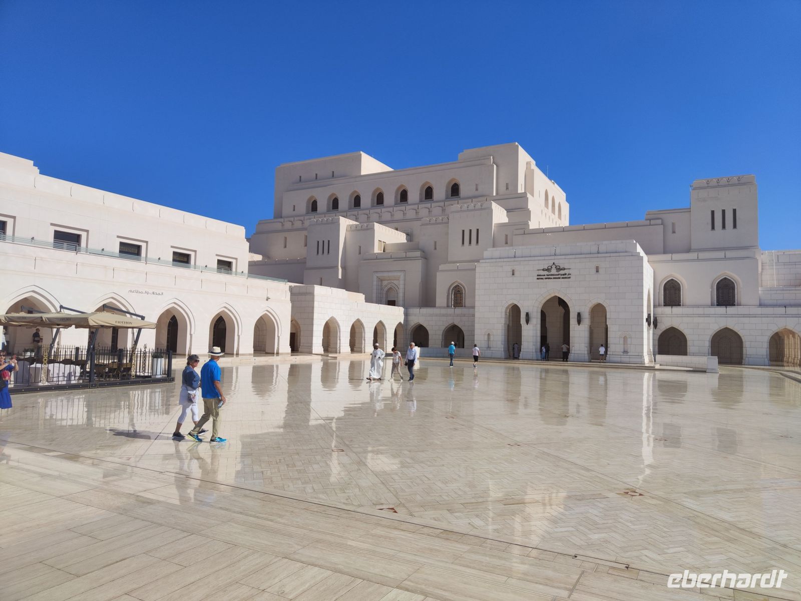 Wir trafen uns voller Vorfreude am Flughafen Frankfurt, bereit für unser Abenteuer im Oman. Der Flug nach Muscat verlief reibungslos, und wir waren gespannt auf die kommenden Tage. Am Flughafen in Muscat trafen wir die übrigen Reisegäste und unseren Reiseleiter Ajid, der uns herzlich willkommen hieß. Unser erster Halt war die beeindruckende Sultan Qaboos Moschee. Die Moschee wurde 2001 fertiggestellt und ist nach Sultan Qaboos bin Said Al Said benannt, der über 40 Jahre lang das Sultanat Oman regierte. Beim architektonischen Meisterwerk wurde modernes Design und traditioneller omanischer Baukunst vereint. Auffällig sind die 5 Minarette, der riesige Gebetsraum und der Kronleuchter aus Swarovski Steinen. Bei unserem Rundgang bestaunten wir die Moschee und die Baukunst der Omanis. Anschließend besuchten wir das Opernhaus in Muscat, das ebenfalls mit seiner modernen Eleganz beeindruckte. Wir hatten die Gelegenheit, die Räumlichkeiten zu erkunden und mehr über das 2011 erbaute Gebäude zu erfahren. Unser Mittagessen hatte unser Reiseleiter Ajit am Strand von Muscat in einem türkischen Restaurant reserviert. Wir genossen frischen Fisch und Meeresfrüchte in einer entspannten Atmosphäre und lauschten dem Rauschen des Meeres.
