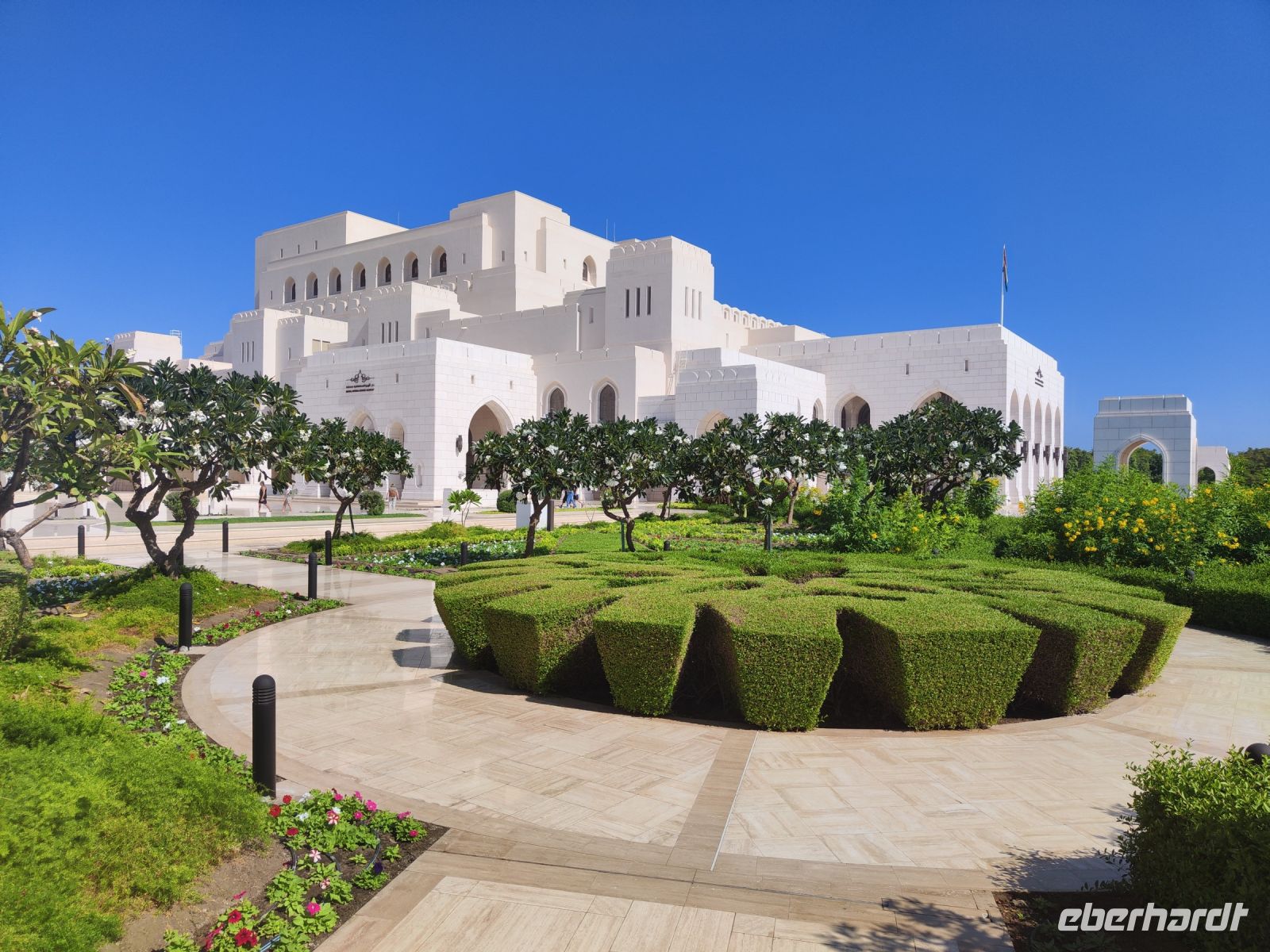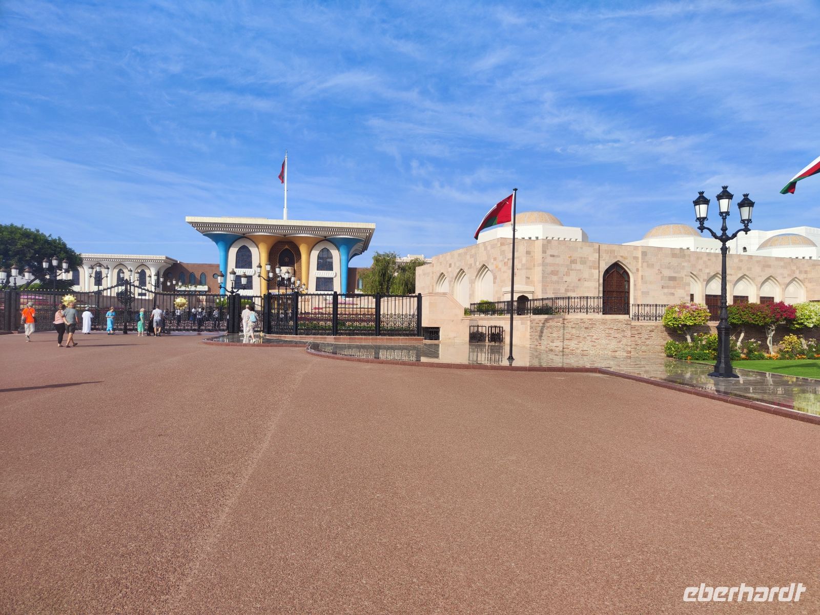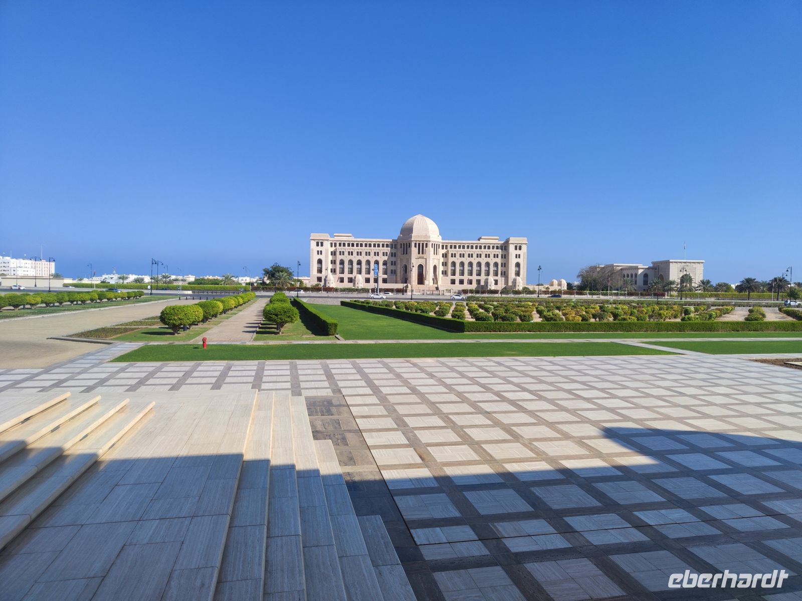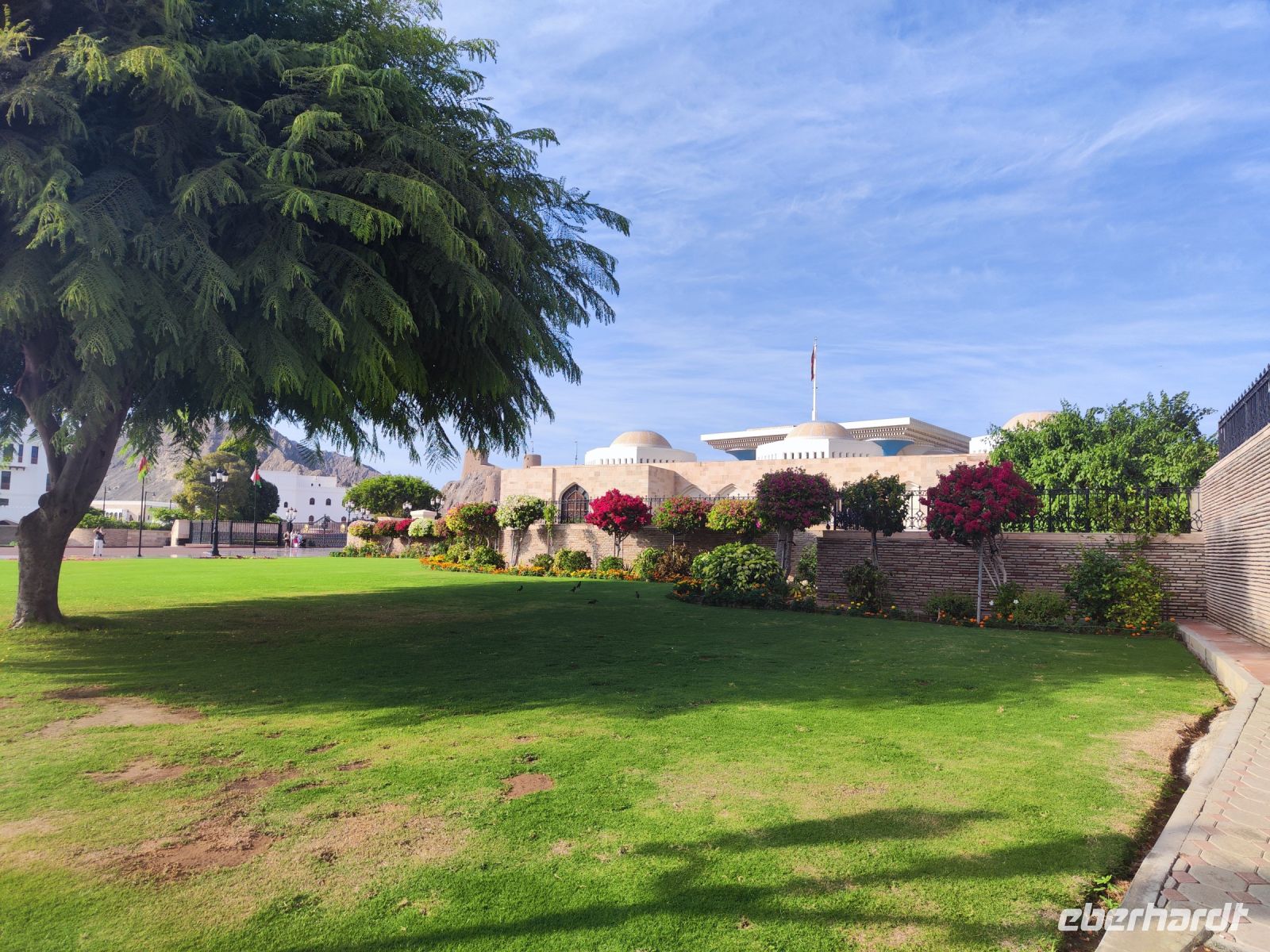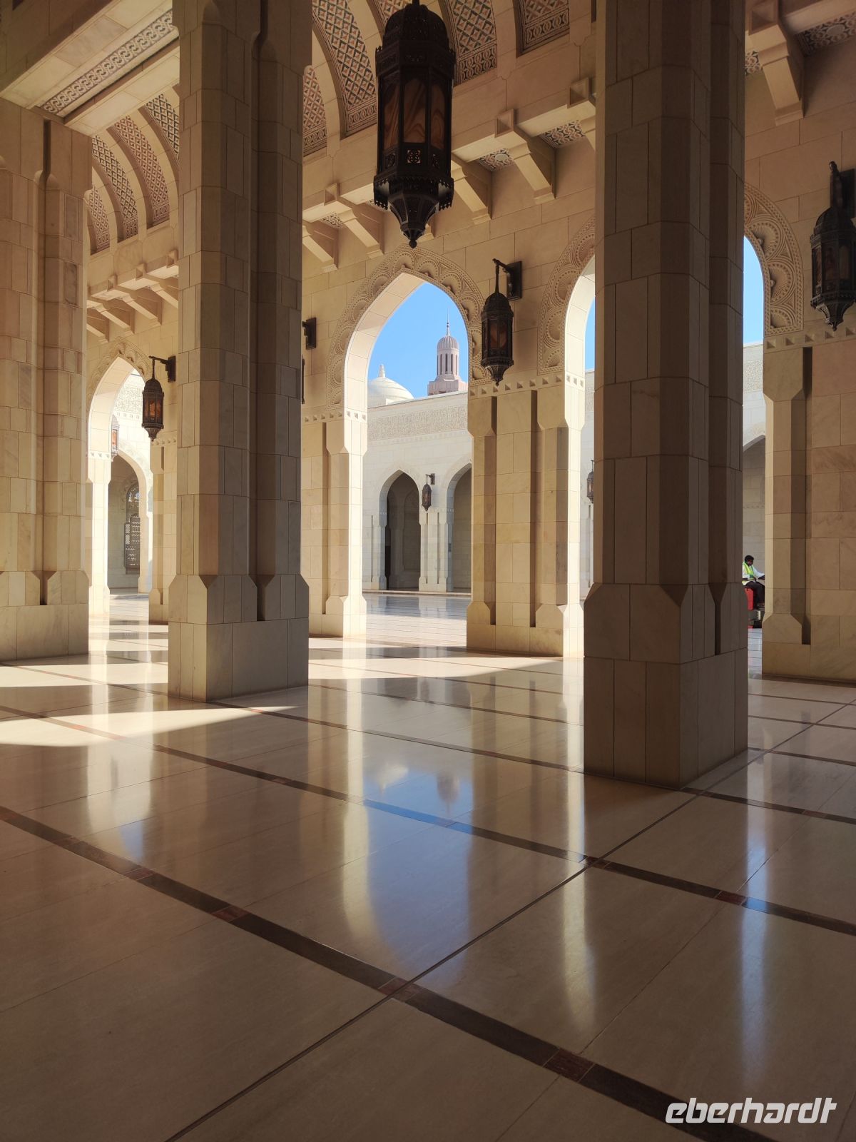 Wir trafen uns voller Vorfreude am Flughafen Frankfurt, bereit für unser Abenteuer im Oman. Der Flug nach Muscat verlief reibungslos, und wir waren gespannt auf die kommenden Tage. Am Flughafen in Muscat trafen wir die übrigen Reisegäste und unseren Reiseleiter Ajid, der uns herzlich willkommen hieß. Unser erster Halt war die beeindruckende Sultan Qaboos Moschee. Die Moschee wurde 2001 fertiggestellt und ist nach Sultan Qaboos bin Said Al Said benannt, der über 40 Jahre lang das Sultanat Oman regierte. Beim architektonischen Meisterwerk wurde modernes Design und traditioneller omanischer Baukunst vereint. Auffällig sind die 5 Minarette, der riesige Gebetsraum und der Kronleuchter aus Swarovski Steinen. Bei unserem Rundgang bestaunten wir die Moschee und die Baukunst der Omanis. Anschließend besuchten wir das Opernhaus in Muscat, das ebenfalls mit seiner modernen Eleganz beeindruckte. Wir hatten die Gelegenheit, die Räumlichkeiten zu erkunden und mehr über das 2011 erbaute Gebäude zu erfahren. Unser Mittagessen hatte unser Reiseleiter Ajit am Strand von Muscat in einem türkischen Restaurant reserviert. Wir genossen frischen Fisch und Meeresfrüchte in einer entspannten Atmosphäre und lauschten dem Rauschen des Meeres.