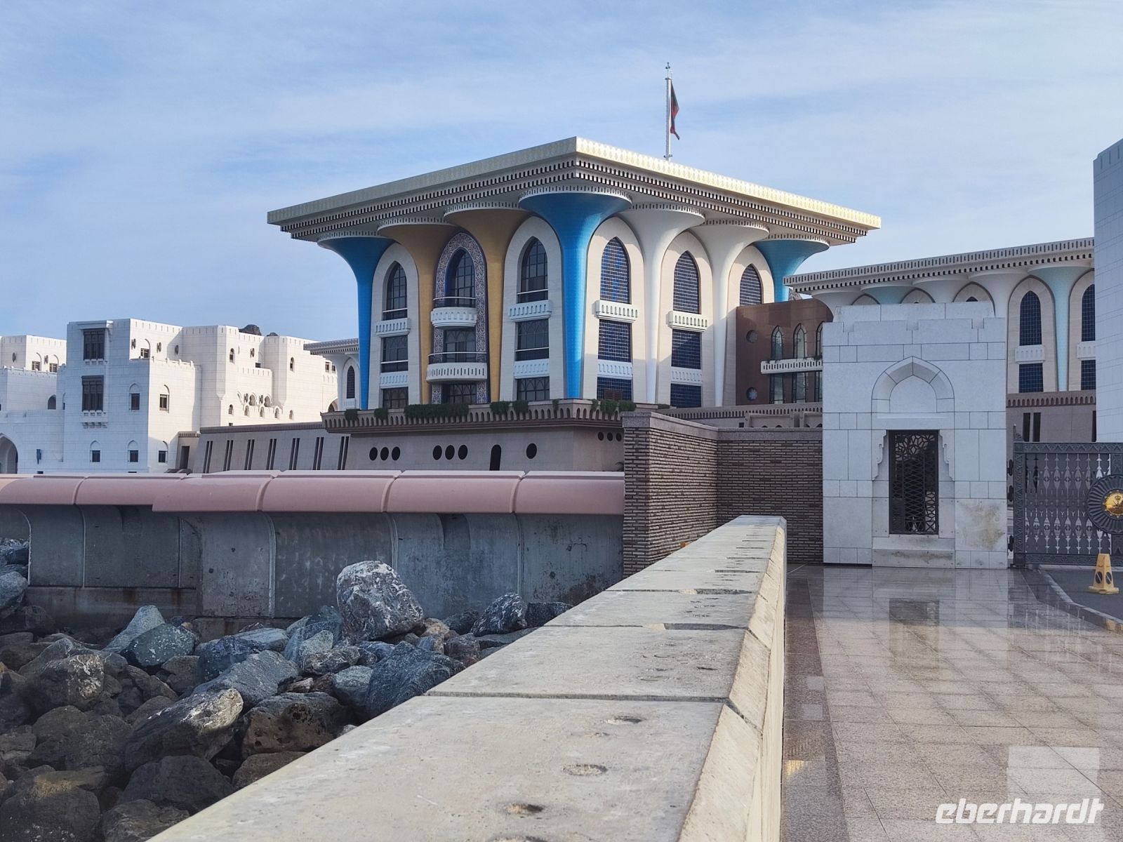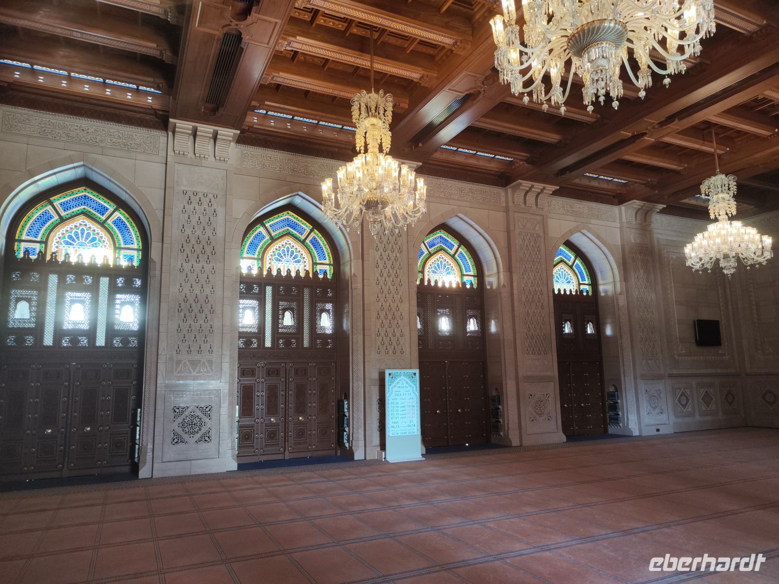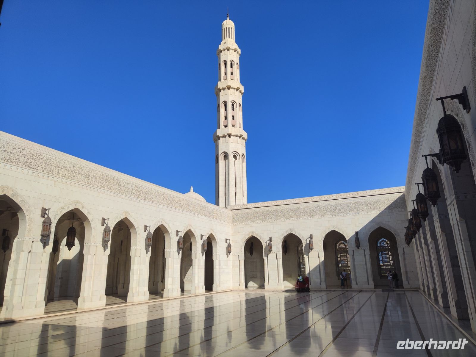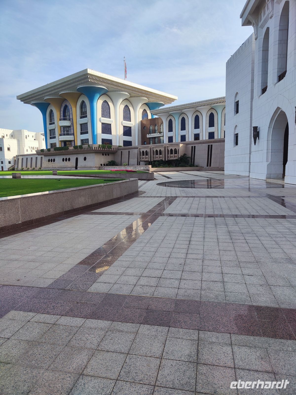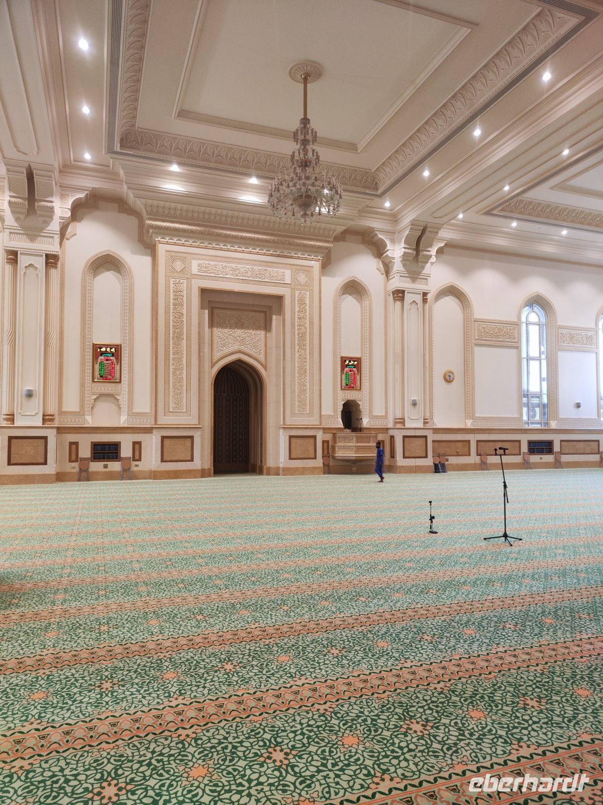 Wir trafen uns voller Vorfreude am Flughafen Frankfurt, bereit für unser Abenteuer im Oman. Der Flug nach Muscat verlief reibungslos, und wir waren gespannt auf die kommenden Tage. Am Flughafen in Muscat trafen wir die übrigen Reisegäste und unseren Reiseleiter Ajid, der uns herzlich willkommen hieß. Unser erster Halt war die beeindruckende Sultan Qaboos Moschee. Die Moschee wurde 2001 fertiggestellt und ist nach Sultan Qaboos bin Said Al Said benannt, der über 40 Jahre lang das Sultanat Oman regierte. Beim architektonischen Meisterwerk wurde modernes Design und traditioneller omanischer Baukunst vereint. Auffällig sind die 5 Minarette, der riesige Gebetsraum und der Kronleuchter aus Swarovski Steinen. Bei unserem Rundgang bestaunten wir die Moschee und die Baukunst der Omanis. Anschließend besuchten wir das Opernhaus in Muscat, das ebenfalls mit seiner modernen Eleganz beeindruckte. Wir hatten die Gelegenheit, die Räumlichkeiten zu erkunden und mehr über das 2011 erbaute Gebäude zu erfahren. Unser Mittagessen hatte unser Reiseleiter Ajit am Strand von Muscat in einem türkischen Restaurant reserviert. Wir genossen frischen Fisch und Meeresfrüchte in einer entspannten Atmosphäre und lauschten dem Rauschen des Meeres.