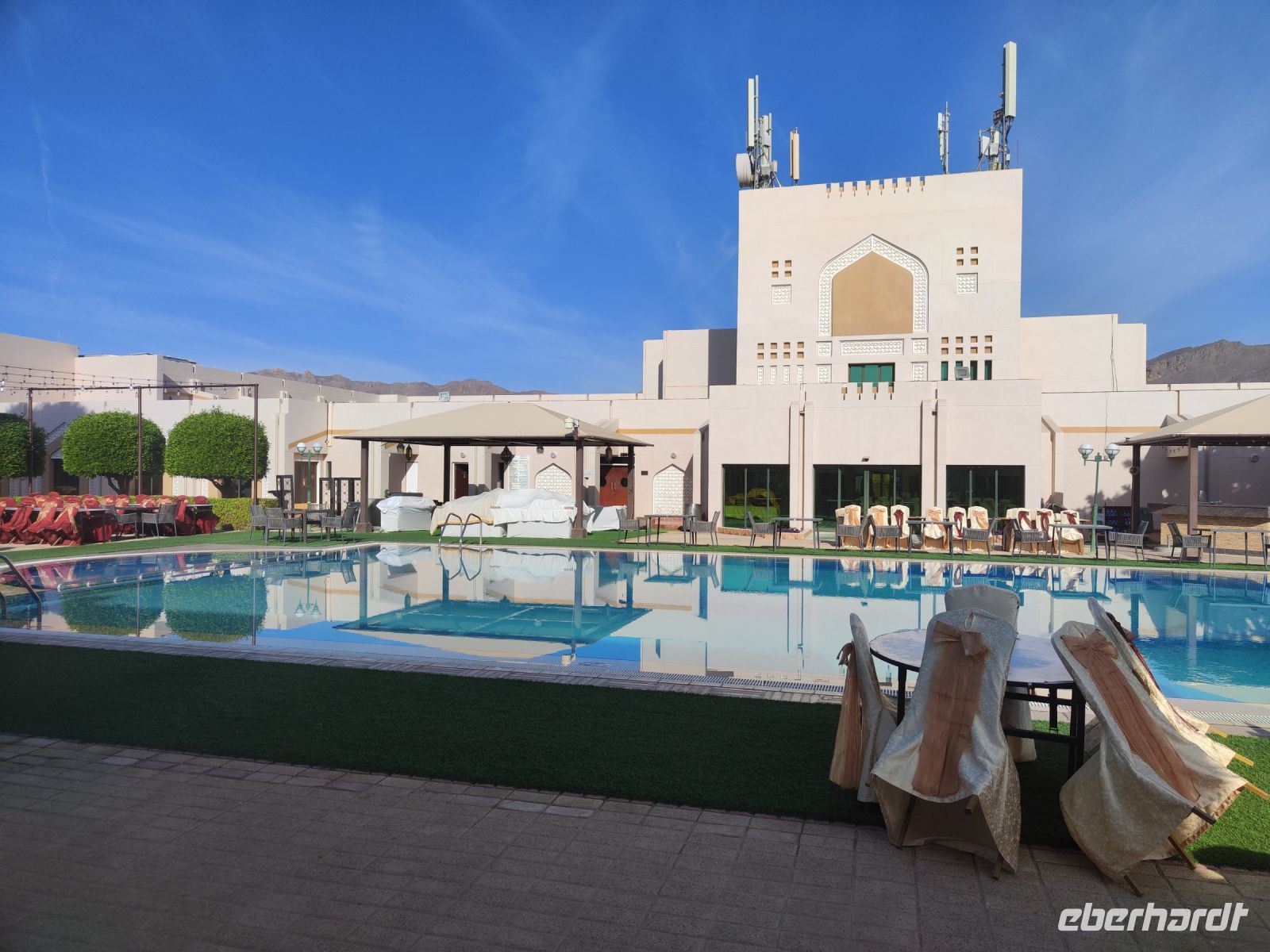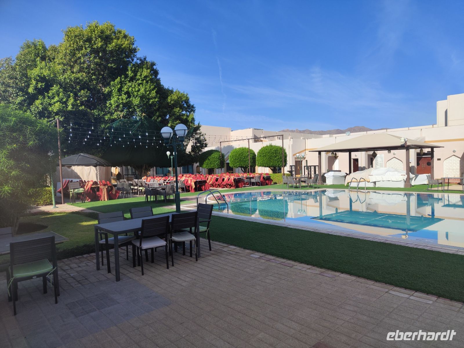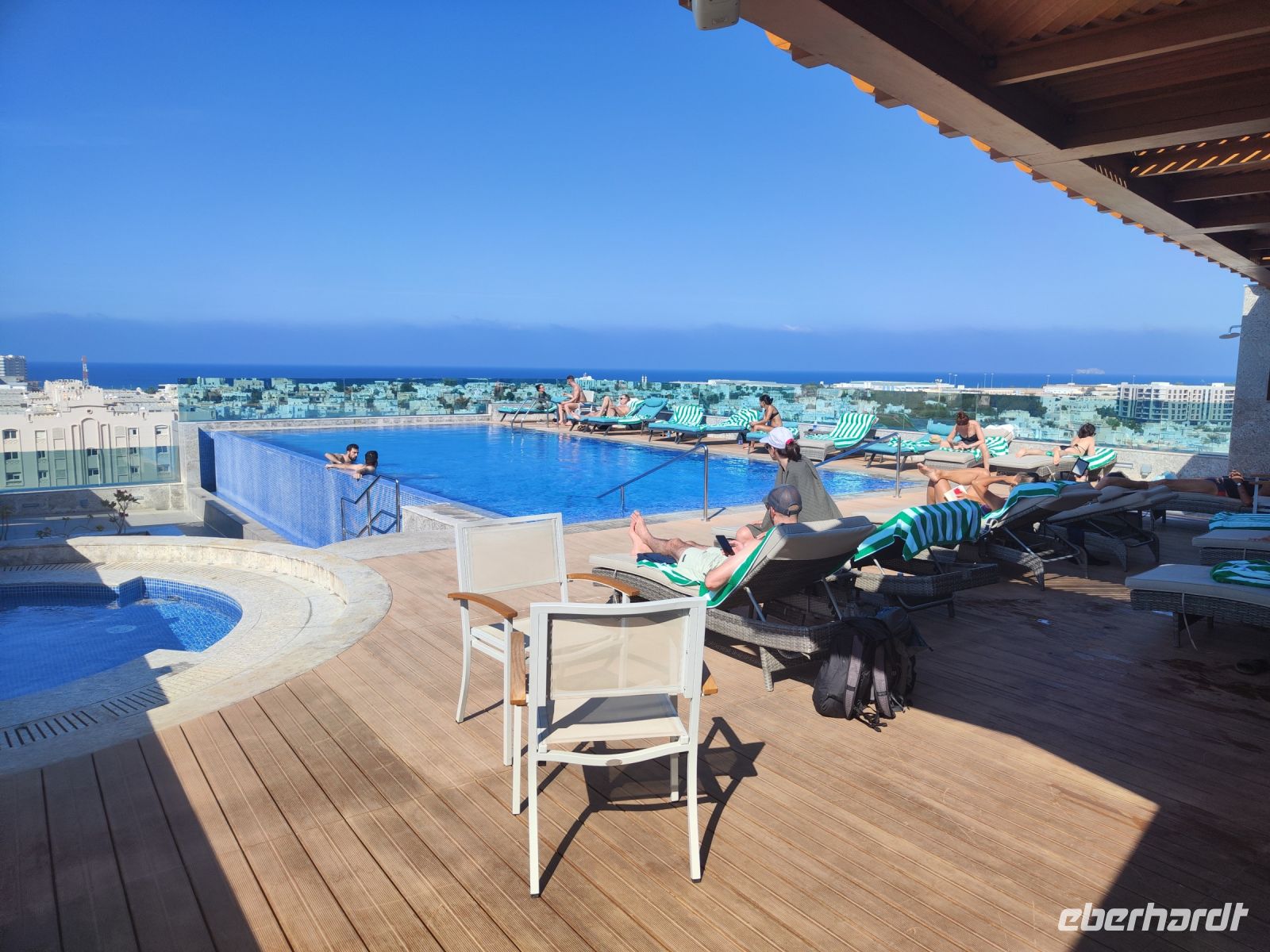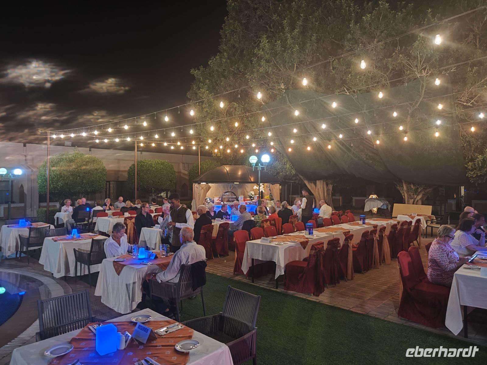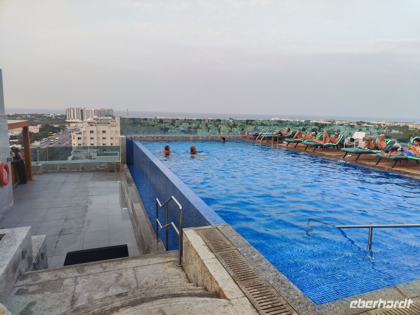 Nach dem Essen fuhren wir zum Hotel, wo wir uns ein wenig ausruhen konnten. Am Abend ließen wir den Tag auf der Dachterrasse ausklingen, genossen die Aussicht auf die Stadt Muscat und freuten uns auf die aufregenden Abenteuer, die uns in den kommenden Tagen im Oman erwarten sollten.