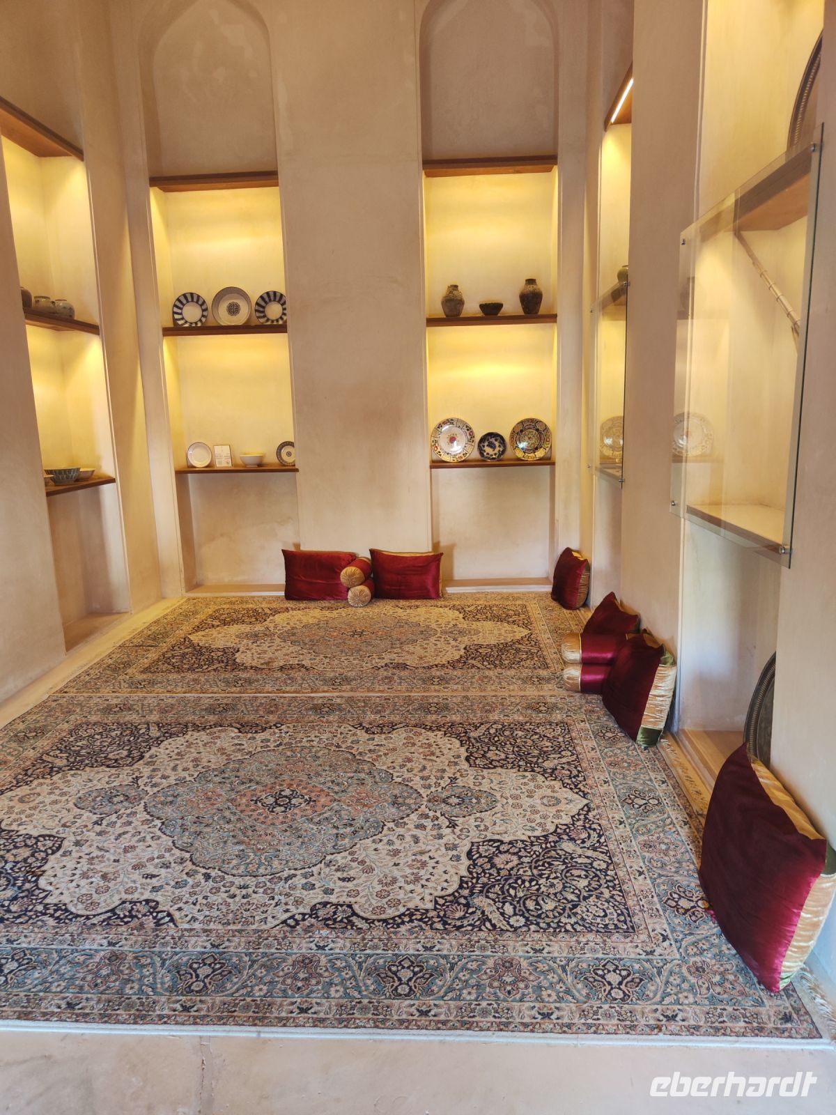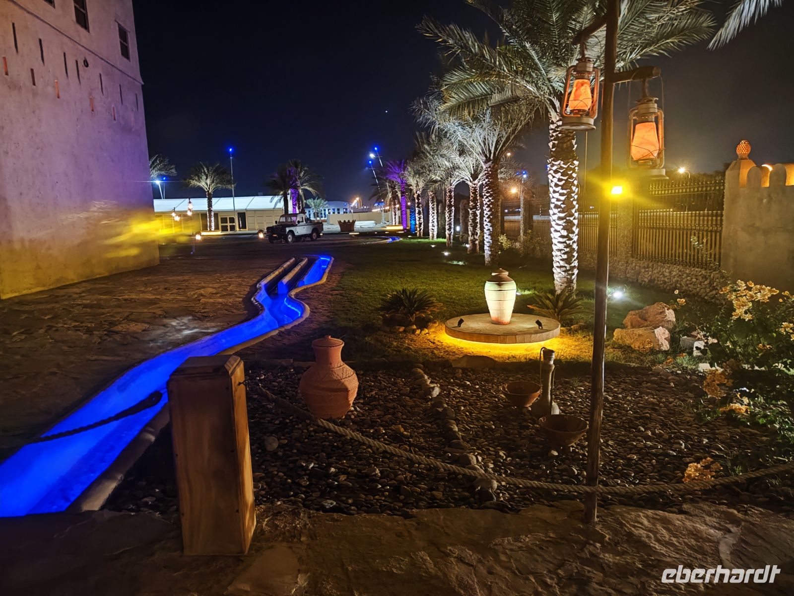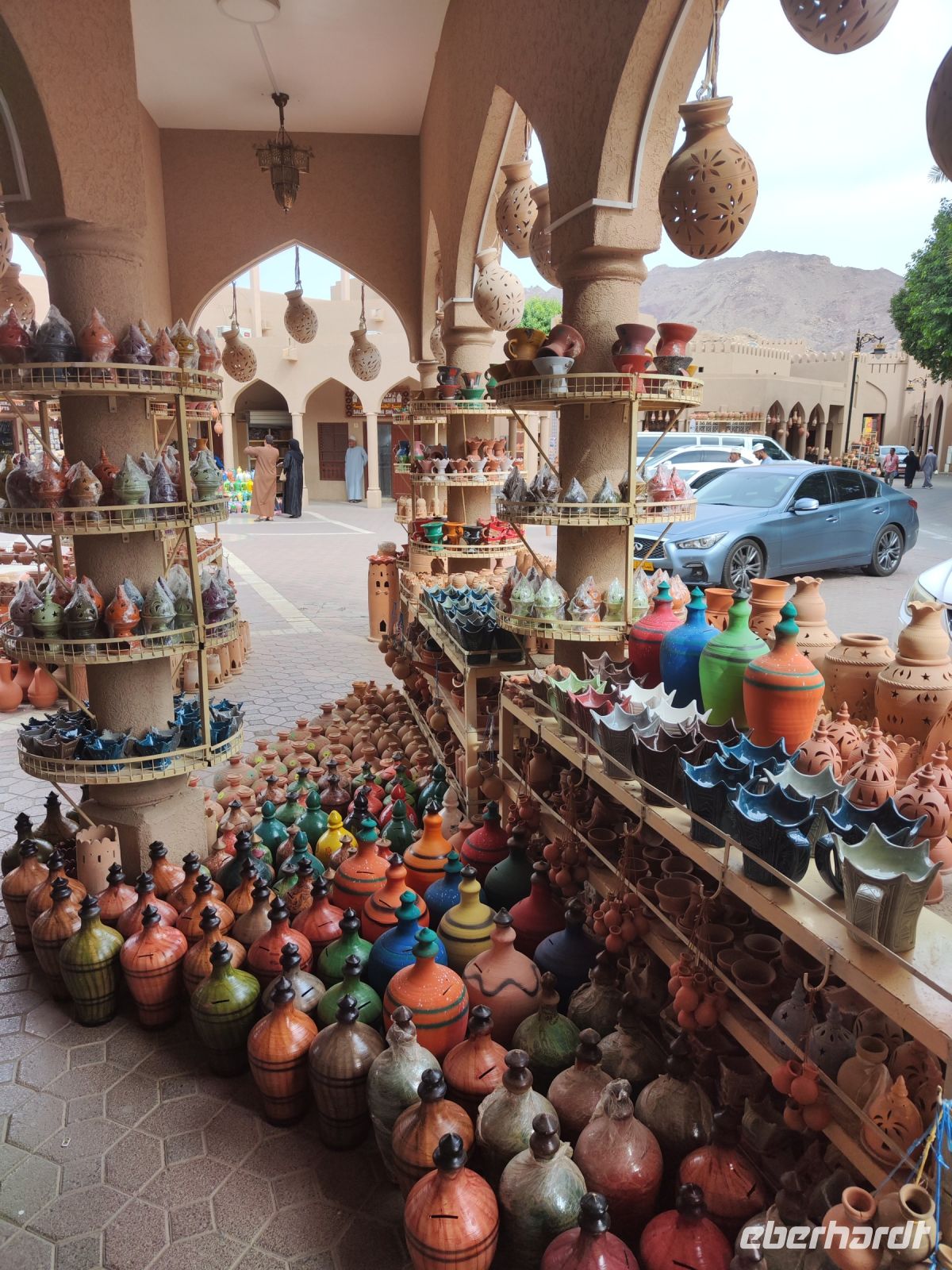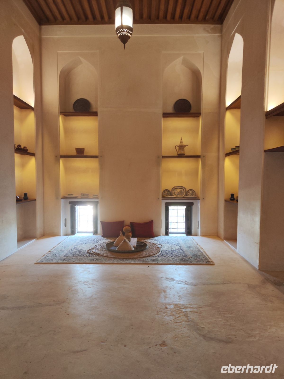 Unser Tag begann mit einem köstlichen Frühstück, das uns auf die Abenteuer vorbereitete, die uns bevorstanden. Gestärkt und voller Vorfreude brachen wir zu unserer Jeeptour auf, aufgeteilt in fünf Jeeps, die unsere Gruppe durch den Norden Omans führen würden. Unsere erste Station war die Parfümmanufaktur Amouage, wo wir einen faszinierenden Einblick in die Kunst der Parfümherstellung erhielten. Die Marke Amouage wurde 1983 im Oman gegründet und hat ihre Wurzeln in der reichen omanischen Kultur und Geschichte. Amouage gilt als eines der exklusivsten und teuersten Parfüms der Welt. Bei einer Führung erhielten wir einen interessanten Einblick und durften die exklusiven Parfüms sogar testen. Anschließend führte uns unsere Routen nach Nizwa. Als erstes besuchten wir den Gewürzsouk in Nizwa, wo wir uns von den exotischen Gewürzen und den lebhaften Farben verzaubern ließen. In der arabischen Welt bedeutet Souk so etwas wie Markt oder Handelsplatz und ist oft ein kulturelles und soziales Zentrum in einer Stadt. Unser Reiseleiter Ajid begleitete uns durch des Souk und half uns bei der Auswahl von leckeren Gewürzen. Anschließend erkundeten wir einen Souk mit frischem Gemüse, Töpferware und Silberschmuck, der uns die Vielfalt der omanischen Kultur aufzeigte. Beim Rundgang konnten wir auch Halwa, eine süße omanische Leckerei, verkosten. Ein Besuch in einem Geschäft mit Datteln rundete unseren Rundgang ab und wir konnte bereits Mitbringsel für die Heimat einkaufen. In unmittelbarer Nähe des Souks befand sich auch das beeindruckende Fort von Nizwa. Die Geschichte und Aufbau des Forts bekamen wir zunächst von unserem Reiseleiter Ajid erklärt und konnten anschließend das Fort in Ruhe erkunden oder den Ausblick über Nizwa genießen. Nach all den Erkundungen war es Zeit für ein köstliches Mittagessen, bevor wir uns auf den Weg zum Hotel Golden Tulip Nizwa machten. Dort angekommen, genossen wir die ruhige Atmosphäre und die Annehmlichkeiten des Hotels. Am Abend hatten wir ein romantisches Abendessen im Poolbereich mit einem vielfältigen Buffet und wir genossen das Abendessen unter dem Sternenhimmel.