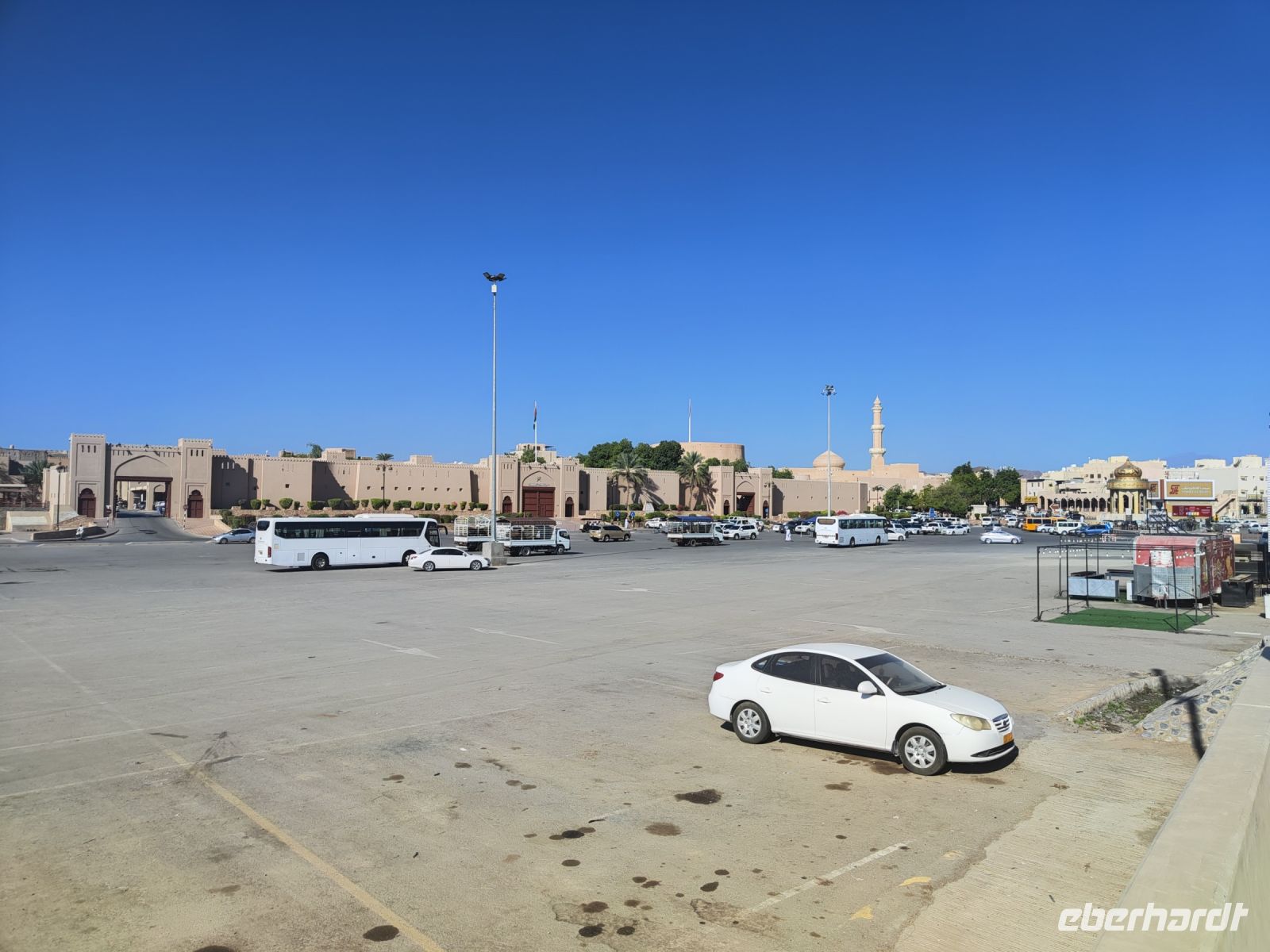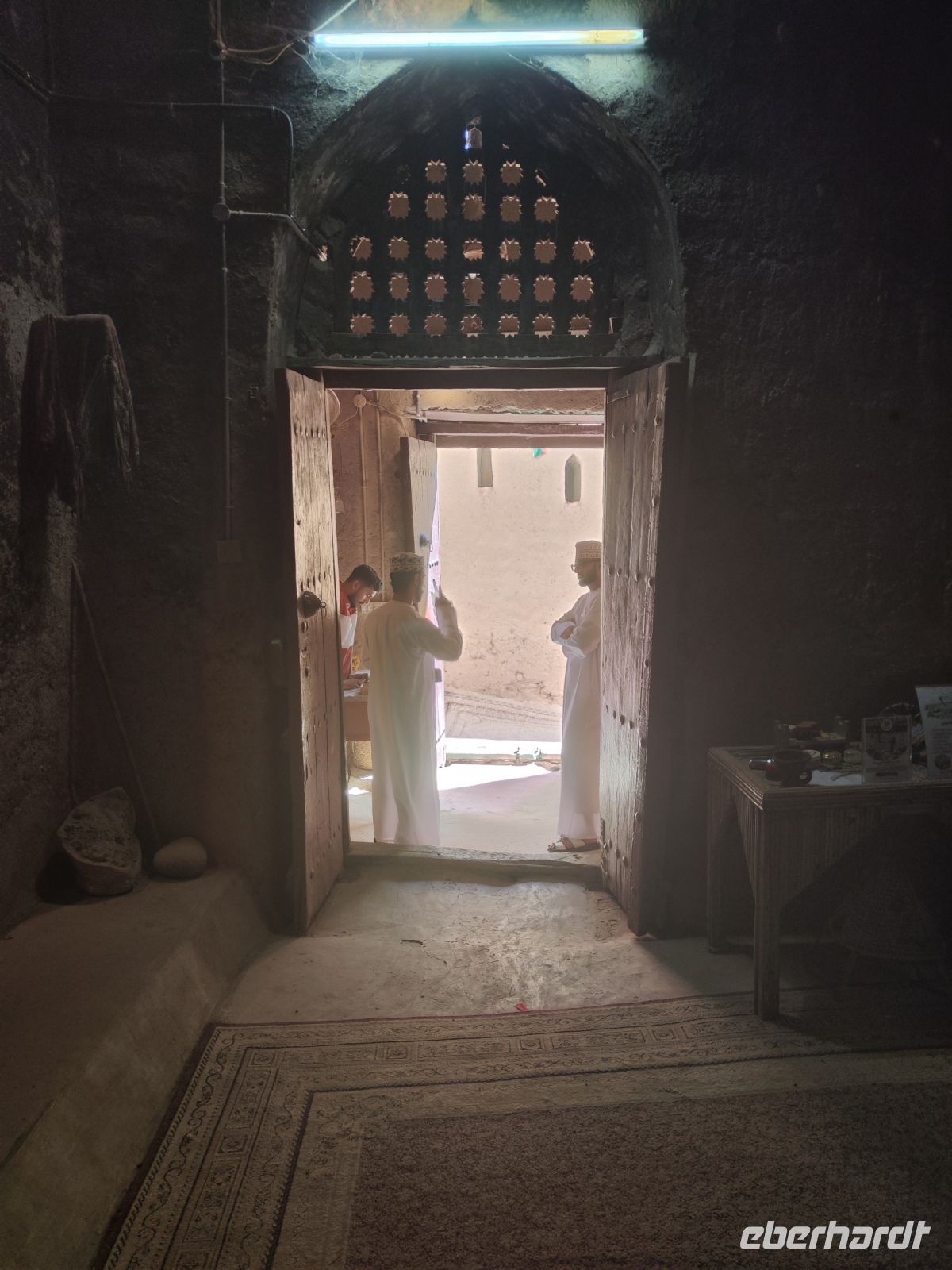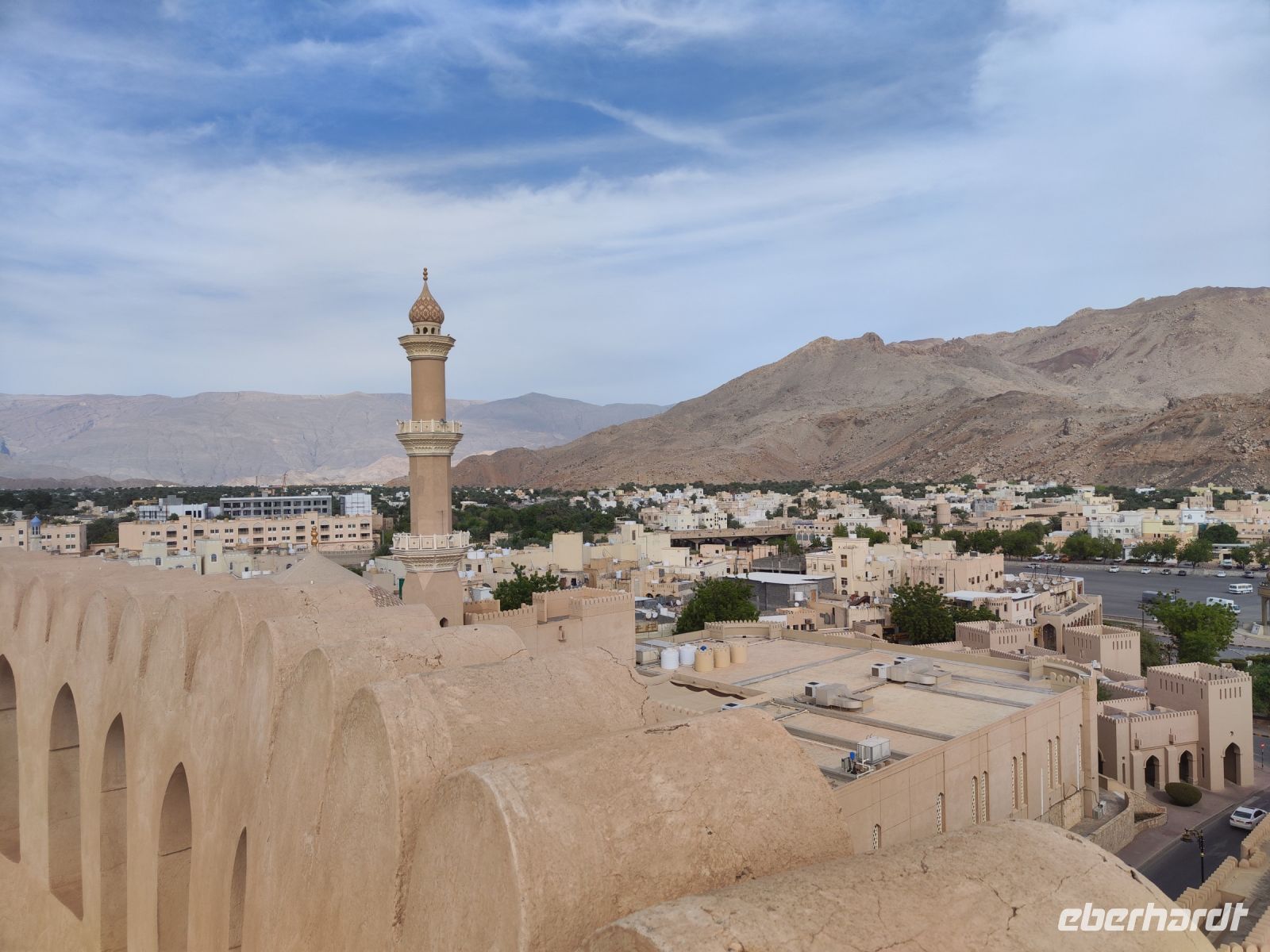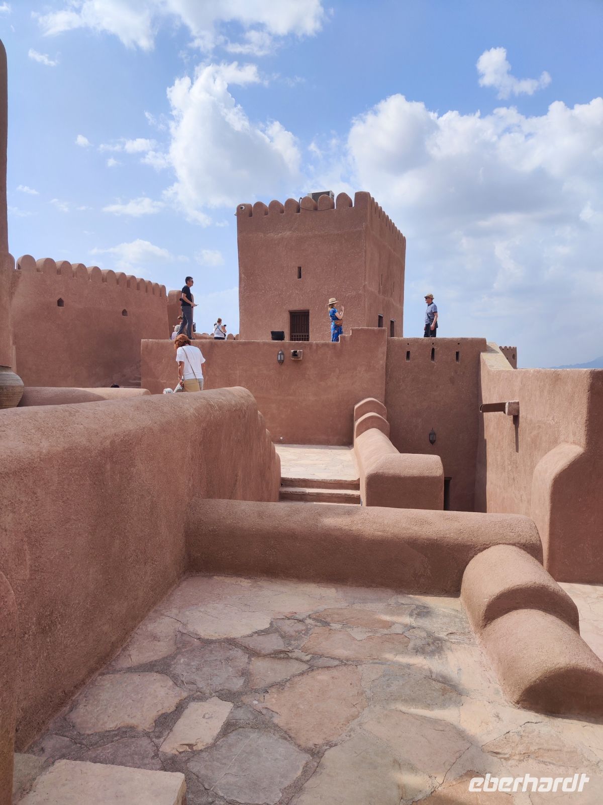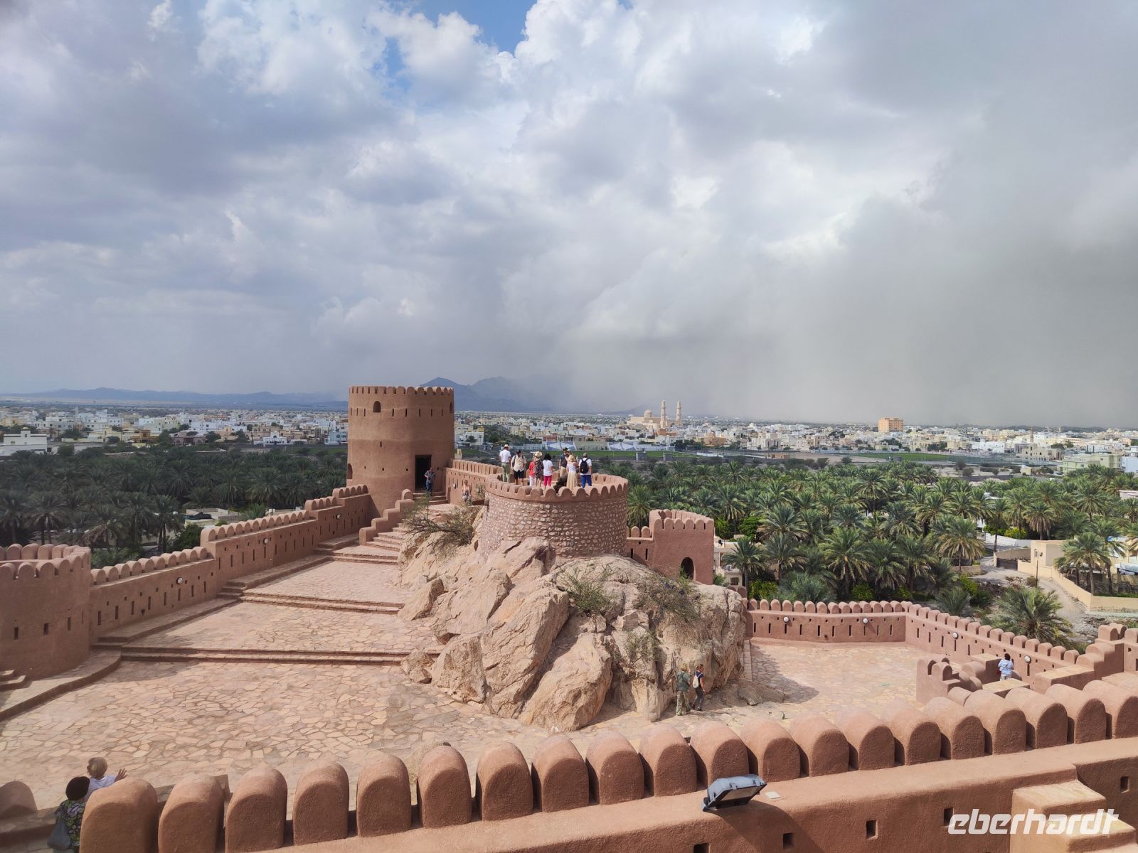 Unser Tag begann mit einem Besuch auf dem traditionellen Fischmarkt in Barka, wo wir neben dem Verkauf von Fisch auch eine lebhaften Fischversteigerung erleben konnten. Der Duft von frischem Fisch erfüllte die Luft, und wir konnten das geschäftige Treiben beobachten. Unsere Reise führte uns nach einem kleinen Zwischenstopp im Supermarkt zum Fort Nakhi. Die historische Festung liegt etwa 120 Kilometer von der Hauptstadt entfernt und blickt auf eine lange Geschichte zurück. Das Fort Nakhi wurde im 17. Jahrhundert während der Herrschaft des omanischen Imams Bil'arab bin Sultan al-Ya'arubi errichtet und diente sowohl Verteidigungszwecken als auch als Residenz. Verteidigen mussten wir uns nicht, allerdings suchten wir während des Rundganges um Schutz vor einen kleinen Sandsturm. Der kleine Sandsturm verdeutlichte uns nochmal, die extremen Wetterbedingungen in der Wüste. Eine angenehme Überraschung hingegen erwartete an den heißen Quellen von Ain Thowara. Hier wurde rasch ein Picknick aufgebaut und wir speisten hier zu Mittag. Wir genossen die entspannte Atmosphäre und das leckere Essen. Nach einem erlebnisreichen Tag kehrten wir zurück zum Hotel, um uns für den Abend vorzubereiten. Das Abendessen in einem traditionellen omanischen Restaurant namens Rozna war ein wahrer Genuss. Das Restaurant ist in einem alten Fort untergebracht und wir bestaunten die tolle Atmosphäre und die vielfältigen Speisen. Um den Tag gebührend abzuschließen, verbrachten wir den Abend auf der Dachterrasse, wo wir unsere Erlebnisse in Norden des Oman Revue passieren ließen, bevor wir unsere Koffer packen mussten.