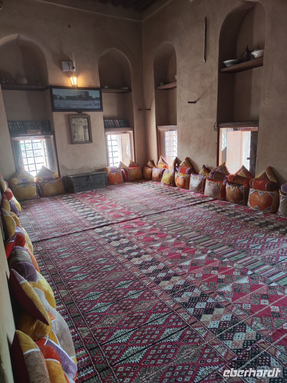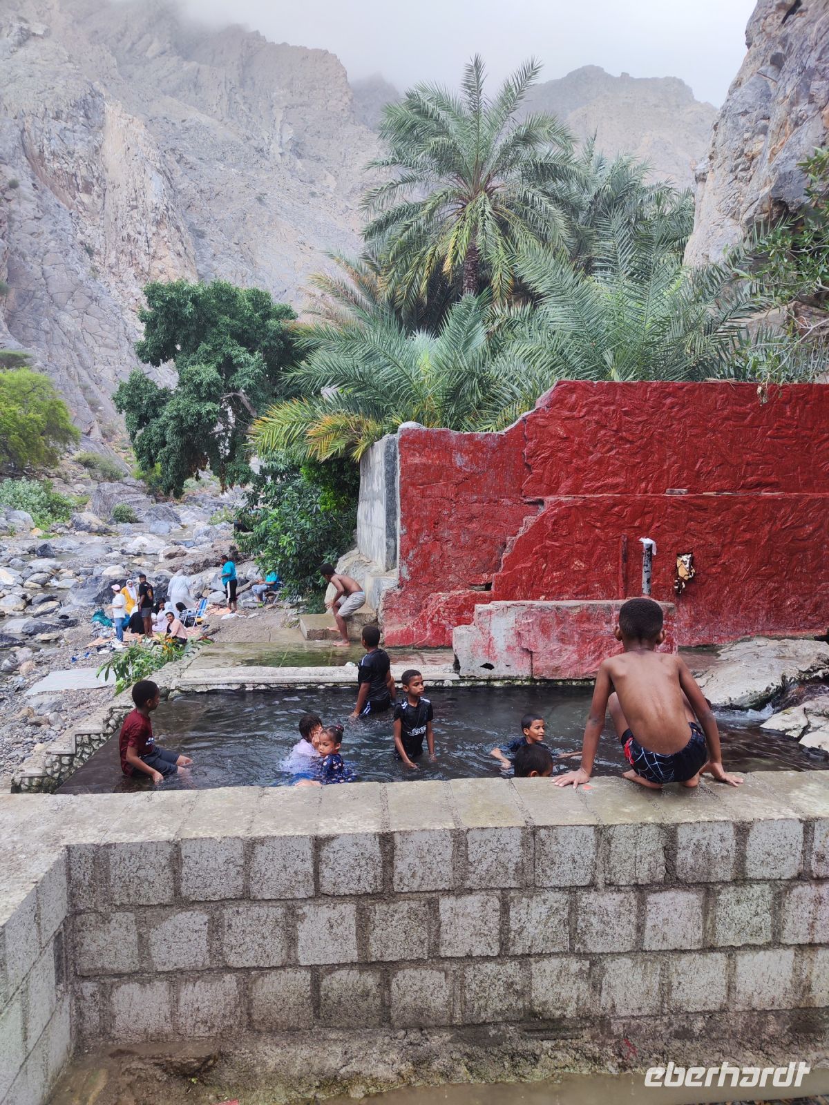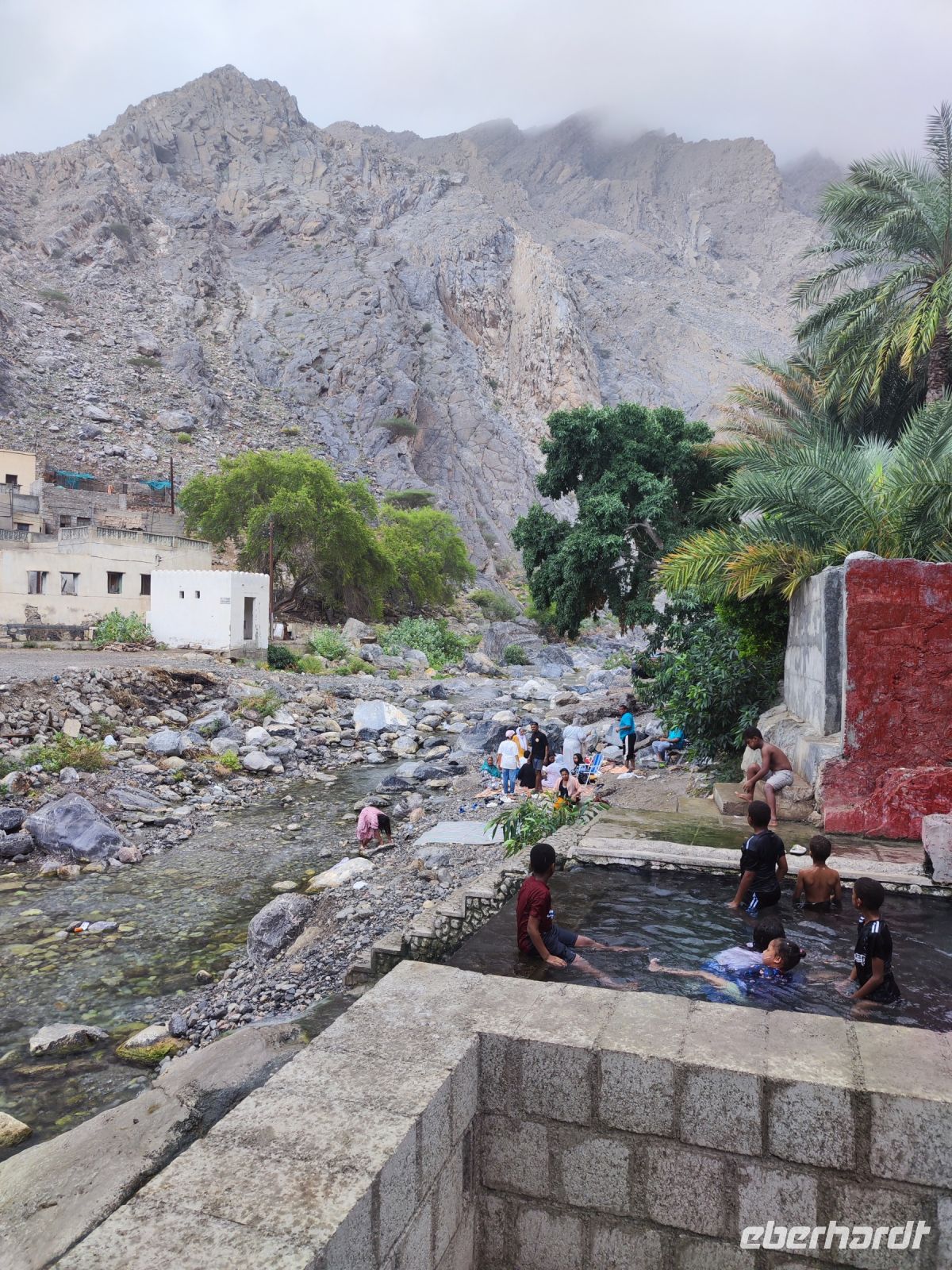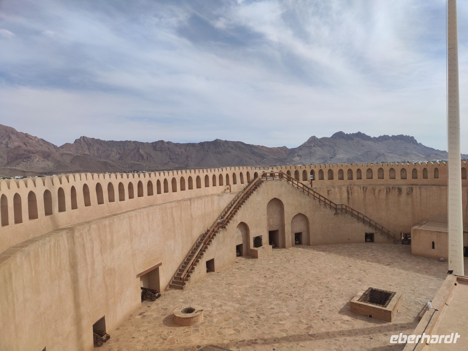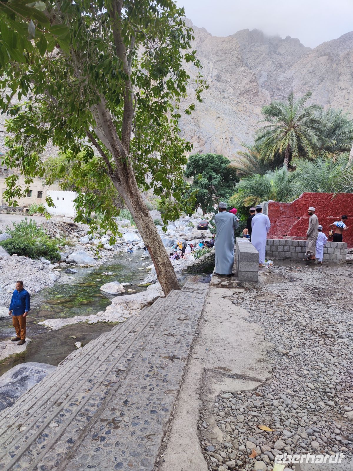 Unser Tag begann mit einem Besuch auf dem traditionellen Fischmarkt in Barka, wo wir neben dem Verkauf von Fisch auch eine lebhaften Fischversteigerung erleben konnten. Der Duft von frischem Fisch erfüllte die Luft, und wir konnten das geschäftige Treiben beobachten. Unsere Reise führte uns nach einem kleinen Zwischenstopp im Supermarkt zum Fort Nakhi. Die historische Festung liegt etwa 120 Kilometer von der Hauptstadt entfernt und blickt auf eine lange Geschichte zurück. Das Fort Nakhi wurde im 17. Jahrhundert während der Herrschaft des omanischen Imams Bil'arab bin Sultan al-Ya'arubi errichtet und diente sowohl Verteidigungszwecken als auch als Residenz. Verteidigen mussten wir uns nicht, allerdings suchten wir während des Rundganges um Schutz vor einen kleinen Sandsturm. Der kleine Sandsturm verdeutlichte uns nochmal, die extremen Wetterbedingungen in der Wüste. Eine angenehme Überraschung hingegen erwartete an den heißen Quellen von Ain Thowara. Hier wurde rasch ein Picknick aufgebaut und wir speisten hier zu Mittag. Wir genossen die entspannte Atmosphäre und das leckere Essen. Nach einem erlebnisreichen Tag kehrten wir zurück zum Hotel, um uns für den Abend vorzubereiten. Das Abendessen in einem traditionellen omanischen Restaurant namens Rozna war ein wahrer Genuss. Das Restaurant ist in einem alten Fort untergebracht und wir bestaunten die tolle Atmosphäre und die vielfältigen Speisen. Um den Tag gebührend abzuschließen, verbrachten wir den Abend auf der Dachterrasse, wo wir unsere Erlebnisse in Norden des Oman Revue passieren ließen, bevor wir unsere Koffer packen mussten.