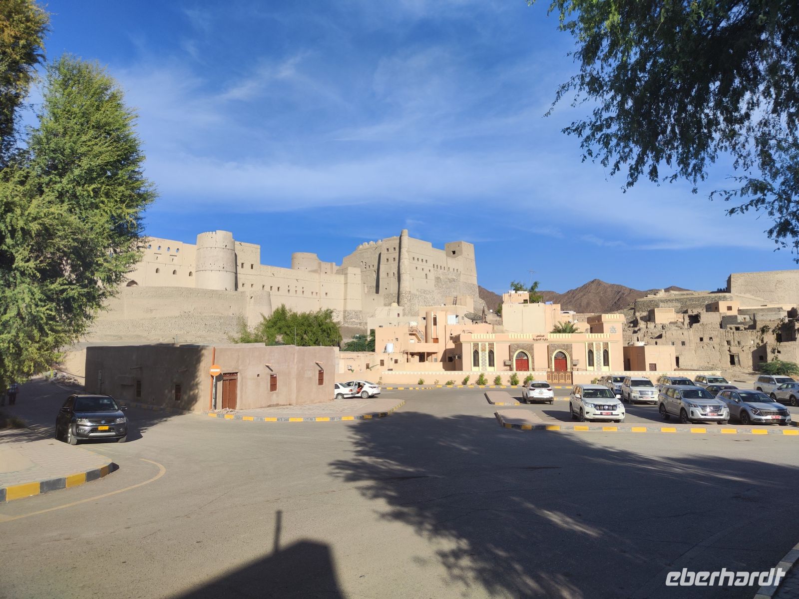 Nach dem Frühstück machten wir uns bereit für unser Abenteuer in den omanischen Bergen. Zuerst besuchten wir erneut den Gewürzsouk, da wir gestern nicht genug Zeit hatten, um alles zu erkunden. Die exotischen Gewürze und Farben zogen uns erneut in ihren Bann. Unsere Reise führte uns weiter in das charmante Bergdorf Al Hamra, wo wir das Museum Bait Al Safah besuchten. Dort wurden uns traditionelles Brot, köstliche Datteln und duftender Kaffee serviert, und wir konnten mehr über die Kultur und das Leben in den omanischen Bergen erfahren. Ein Fotostopp am Wadi Ghul bot uns tolle Ausblicke, bevor wir zur Jebel Shams, dem "Berg der Sonne", aufbrachen. Jebel Shams ist mit einer Höhe von etwa 3.009 Metern der höchste Berg im Sultanat Oman und Teil des Al-Hajar-Gebirges. Besonders Spektakulär sind die Ausblicke in die tiefen Schluchten und zerklüftete Landschaften. Am beeindruckenden "Grand Canyon des Oman" hatten wir ausreichend Zeit, um die Ausblicke auf die majestätische Berglandschaft zu genießen. Unseren Mittagsstopp machen wir in einem omanischen Restaurant, wo wir sogar Kamelspieß probieren konnten - eine interessante kulinarische Erfahrung. Auf dem Weg zu unserem nächsten Ziel machten wir einen Fotostopp in Bahla, bevor wir das beeindruckende Jabreen Castle besuchten. Die historische Festung wurde im 17. Jahrhundert während der Herrschaft des Imams Bil'arab bin Sultan al-Ya'arubi erbaut und diente sowohl als Festung als auch als Wohnsitz für die königliche Familie. Bei einem Rundgang fühlten wir uns in die Vergangenheit des Omans zurückversetzt. Außerhalb des Schlosses erwarteten uns bereits unsere Jeepfahrer und Reiseleiter Ajid mit omanischen Kaffee und leckeren Datteln. Am späten Nachmittag erreichten wir unser Hotel, wo wir den Tag am Pool ausklingen ließen. Das Abendessen wurde wieder in entspannter Atmosphäre serviert und wir konnten den Tag sogar bei einem kalten Bier ausklingen lassen.