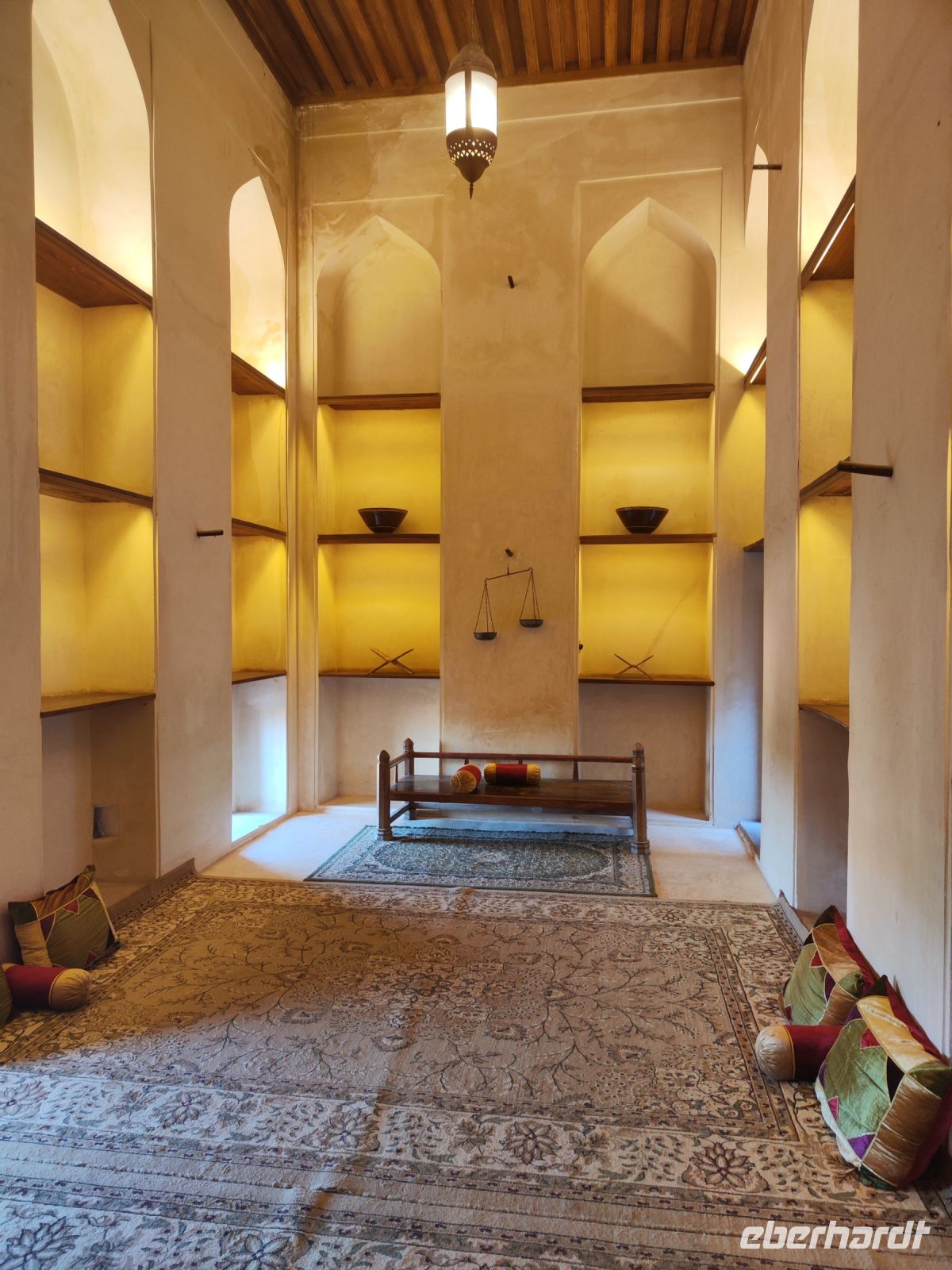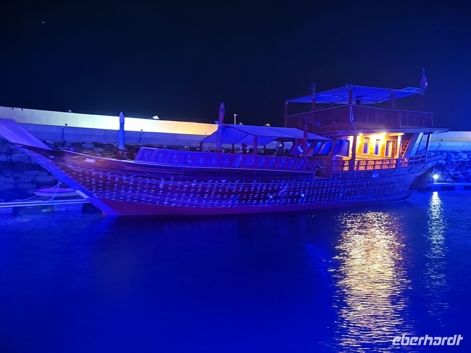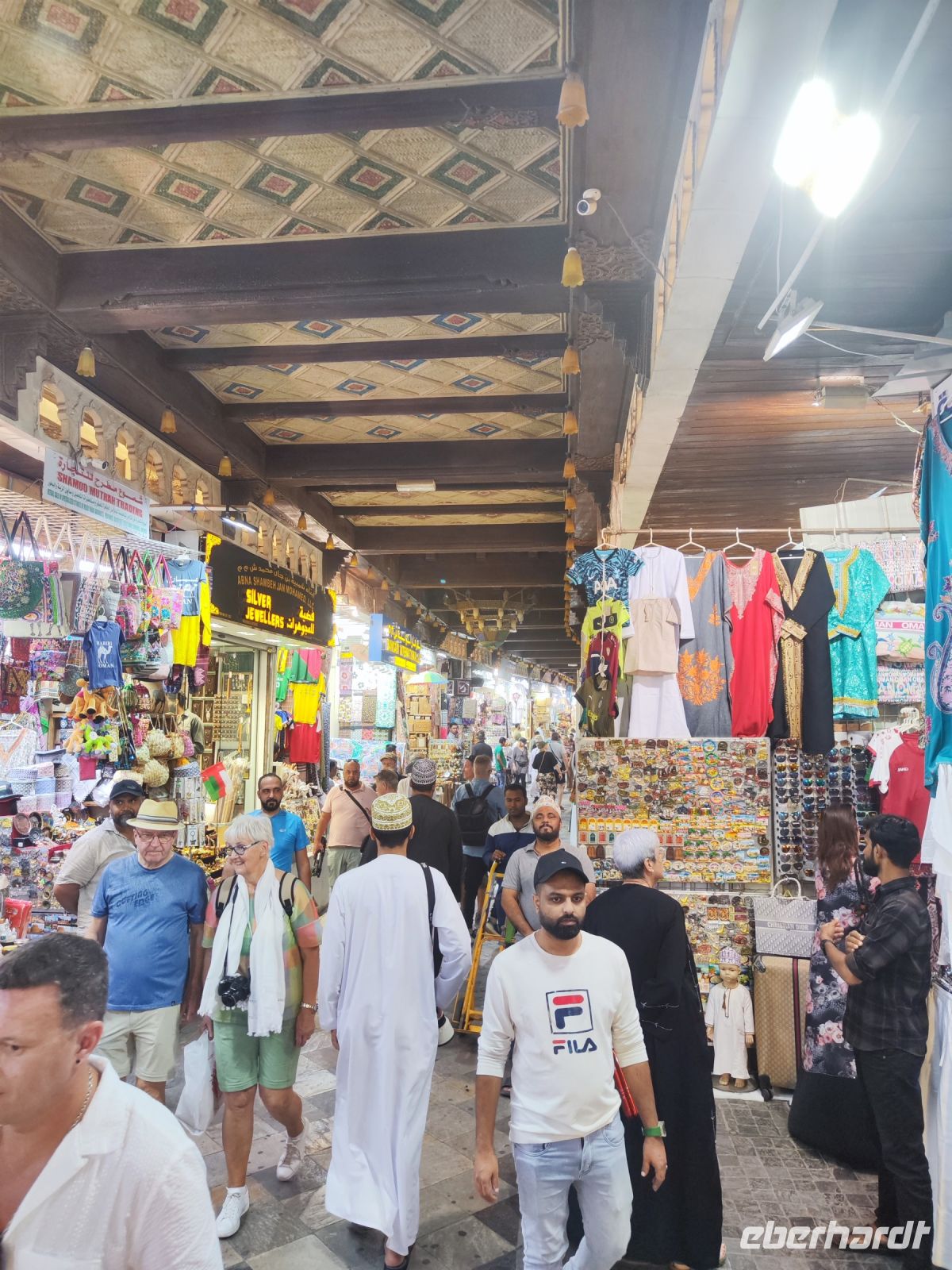 Nach einem anstrengenden Vortag entschieden wir uns, etwas länger zu schlafen und ausgiebig zu frühstücken, bevor wir die Hauptstadt des Oman näher kennen lernen wollten. Unser Reiseleiter Ajid führte uns zunächst zum Fischmarkt und zur Gemüsehalle von Muscat, wo wir die lebhafte Atmosphäre und die Vielfalt der angebotenen Produkte erlebten. Der Duft von frischem Fisch und Obst hing in der Luft. Vom Markt aus waren es nur wenige Meter entlang der Marina, wo die Boote im klaren Wasser schaukelten und wir auch die Jacht des Scheichs entdecken konnten. Unser nächster Anlaufpunkt war der Souk von Muscat, wo wir Freizeit hatten, um durch die engen Gassen zu schlendern und Souvenirs zu kaufen. Der Mutrah Souk ist ein historischer Basar in Mutrah, einem Stadtteil von Muscat. Im Souk finden Sie eine Fülle von Produkten, darunter traditionelle omanische Handwerkskunst, Schmuck, Gewürze, Textilien, Parfüm, Souvenirs, Antiquitäten und vieles mehr. Nach dem Marktbesuch ging es ins Alte Muscat. Wir machten einen Fotostopp mit herrlichem Blick auf Alt-Muscat. Der Anblick der alten Festungen, weißen Häuser und der Moscheen war atemberaubend. Im Anschluss besuchten wir das faszinierende Bait Al Zubair Museum. Das Museum beherbergt eine vielfältige Sammlung von Exponaten, die die Geschichte, Kultur und Traditionen des Oman darstellen. Wir entdeckten historische Fotografien, traditionelle Kleidung, Schmuck, Waffen, handgefertigte Kunstgegenstände und vieles mehr. Ein weiterer Höhepunkt war unser Halt beim prächtigen Palast Al Alam. Der Al-Alam-Palast oder auch Qasr Al-Alam, ist einer der offiziellen königlichen Paläste des Sultans von Oman. Der Palast wird bei offiziellen Staatsanlässen besucht und dient aber nicht als Wohnpalast für den Sultan. Die Krönung unseres Tages war eine Bootsfahrt auf einer traditionellen Dhau vor der Küste von Muscat. Während der Fahrt genossen wir köstliche Datteln und erfrischende Getränke und bewunderten die Aussicht auf das azurblaue Wasser, die Küste und den Sonnenuntergang über Alt Muscat. Nach einem erlebnisreichen Tag kehrten wir voller Freu de und unvergesslicher Erinnerungen zurück, um den Abend beim Abendessen im Hotel in Muscat ausklingen zu lassen.
