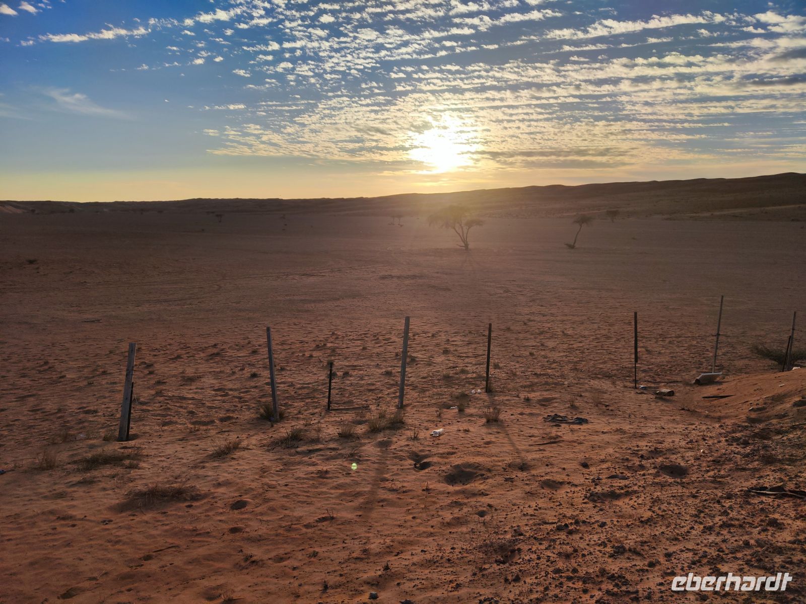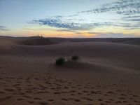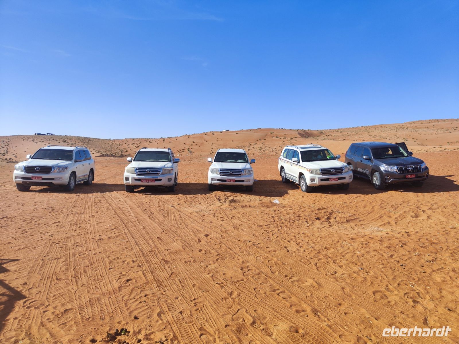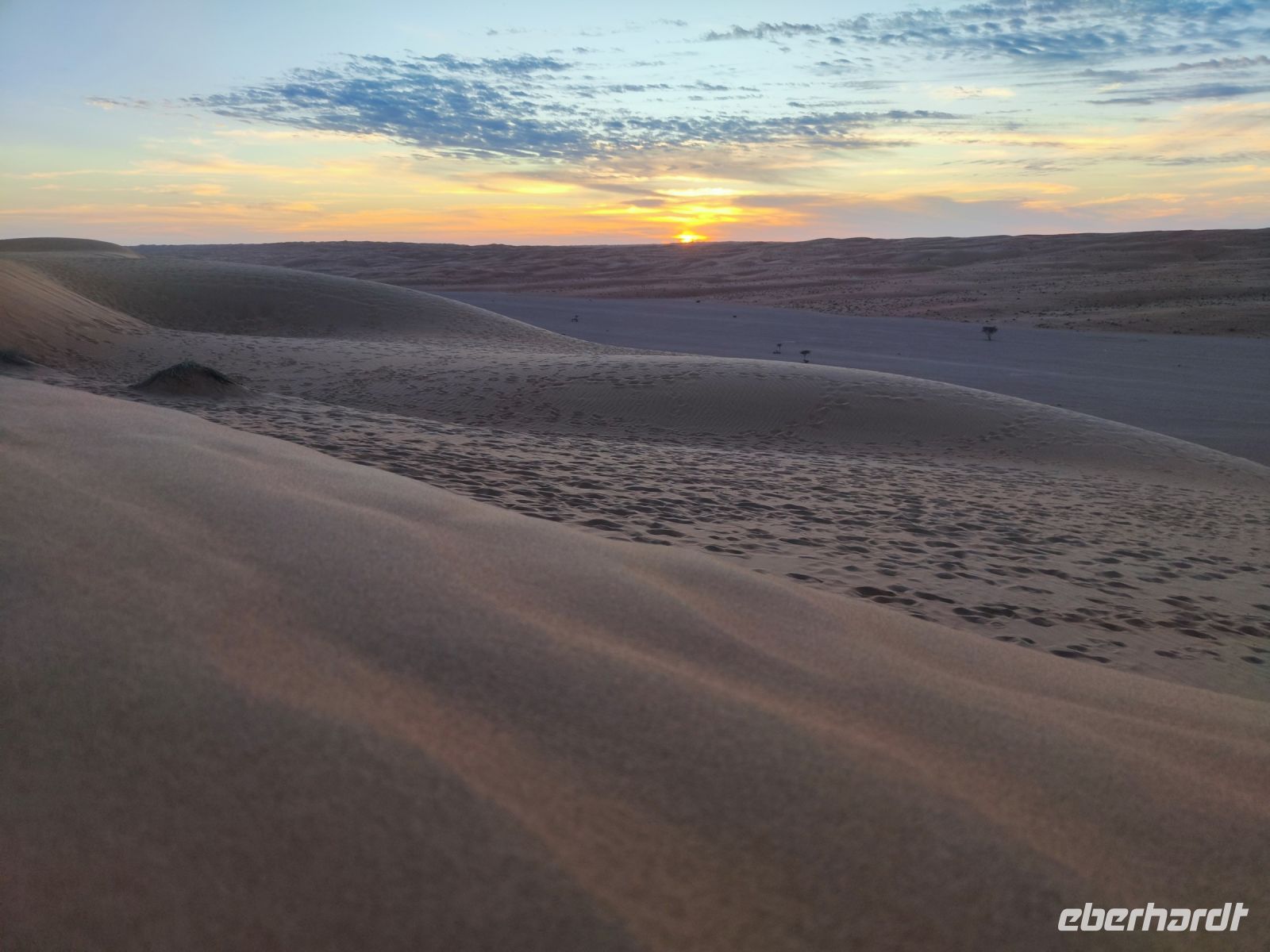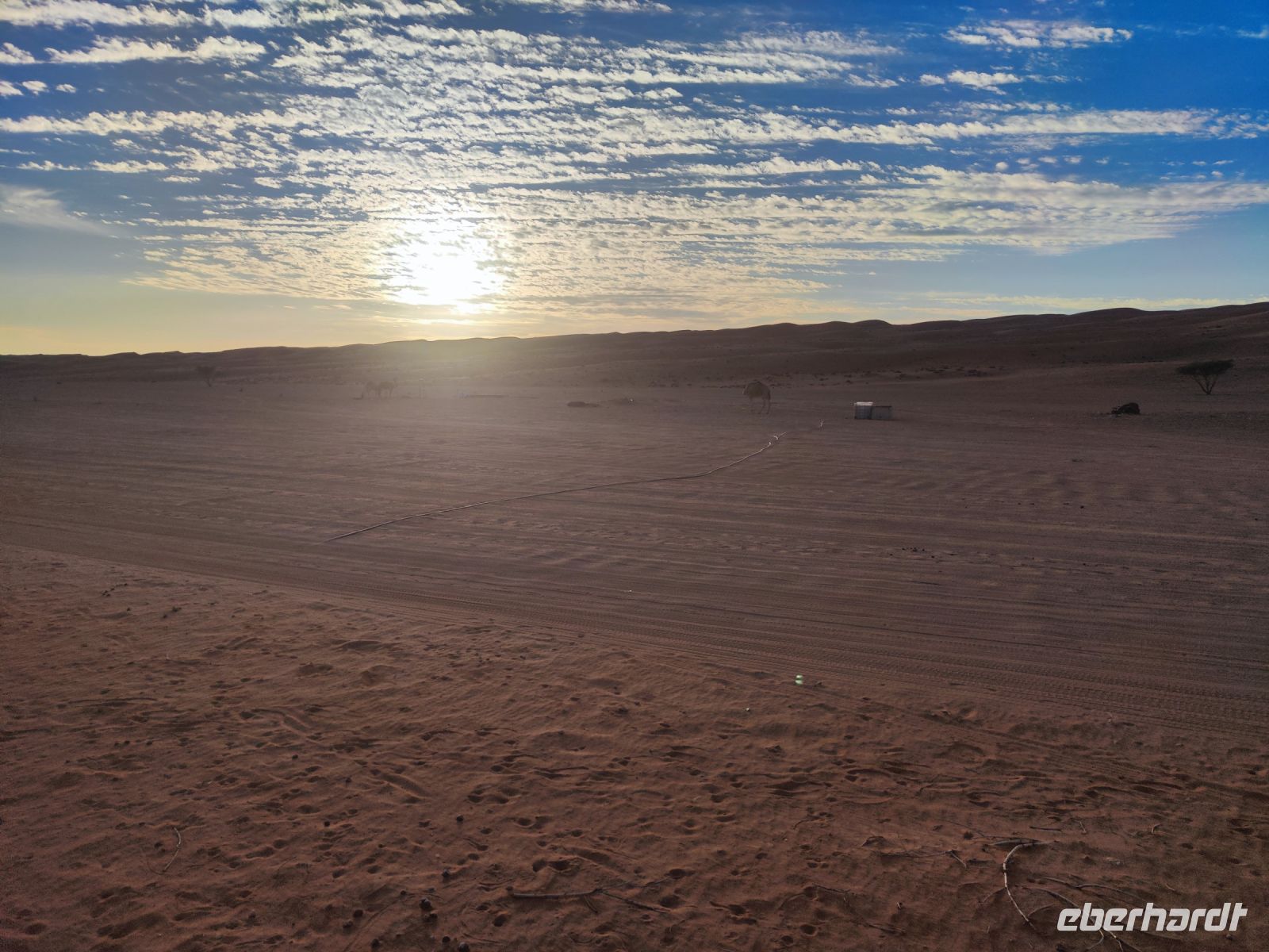 Nachdem wir Nizwa nach dem Frühstück verlassen hatten und in unseren Jeeps unterwegs waren, tauchten wir in die beeindruckende Bergwelt des Jebel Akhdar ein. Die Aussicht am „Grünen Berg“ war atemberaubend, und wir machten eine kurze Pause am Hotel Sahab, wo uns der Aussichtspunkt Diana Point begeisterte. Es war interessant zu wissen, dass bereits Prinzessin Diana und Prinz Charles (heuzutage König Charles) an diesem Ort standen. Jebel Akhdar ist für seine spektakuläre natürliche Schönheit bekannt, einschließlich üppiger grüner Täler, Terrassenfelder und beeindruckender Schluchten. Die Region ist ein Kontrast zu den trockenen Wüstenlandschaften des Omans. Unser Weg führte uns nur wenige Meter weiter, und wir erhielten einen Blick auf das Haus des Imans und saftig grüne Terassenfelder. Nach unserem schönen Stopp, hielt unser Reiseleiter Ajid eine Überraschung bereit und spendierte uns einen köstlichen Chai Latte. Nachdem wir die Bergwelt erkundet hatten, führte uns unsere Reiseroute nach Birkat Al Mauz. Im „verlassenen“ Dorf unternahmen wir einen entspannten Spaziergang entlang des Falaj-Systems und lernten mehr über die traditionelle Wasserversorgung des Omans. Anschließend wurden wir nun endgültige in die Wüste geschickt. Doch kurz bevor wir den Wüstensand erreichten, mussten wir den Reifendruck unserer Jeeps reduzieren, um uns besser an das sandige Gelände anzupassen. Nun brachen wir aber endgültig auf und fuhren durch die majestätische Wahiba Sands Wüste bis in unser Wüstencamp. Hier machten wir uns kurz frisch, bevor wir uns den Sonnenuntergang in der Wüste widmen konnten. Mit den Jeeps fuhren wir zu einen schönen Fotopoint und genossen den unvergesslichen Sonnenuntergang in der Wüste. Zurück im Wüstencamp erwartete uns ein traditionelles omanisches Abendessen mit Hühnchen oder Kamelfleisch. Wir lauschten der Omanischen Musik und genossen die stimmungsvolle Atmosphäre unter dem klaren Wüstenhimmel. Am Lagerfeuer ließen wir den Tag ausklingen und freuten uns bereits auf den Sonnenaufgang in der Wüste.
