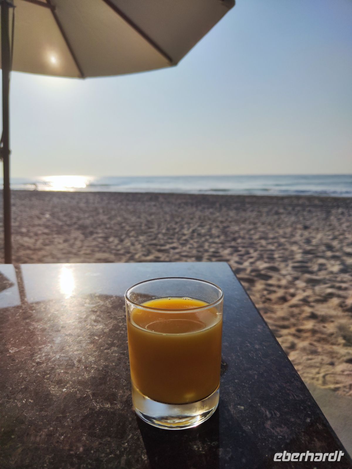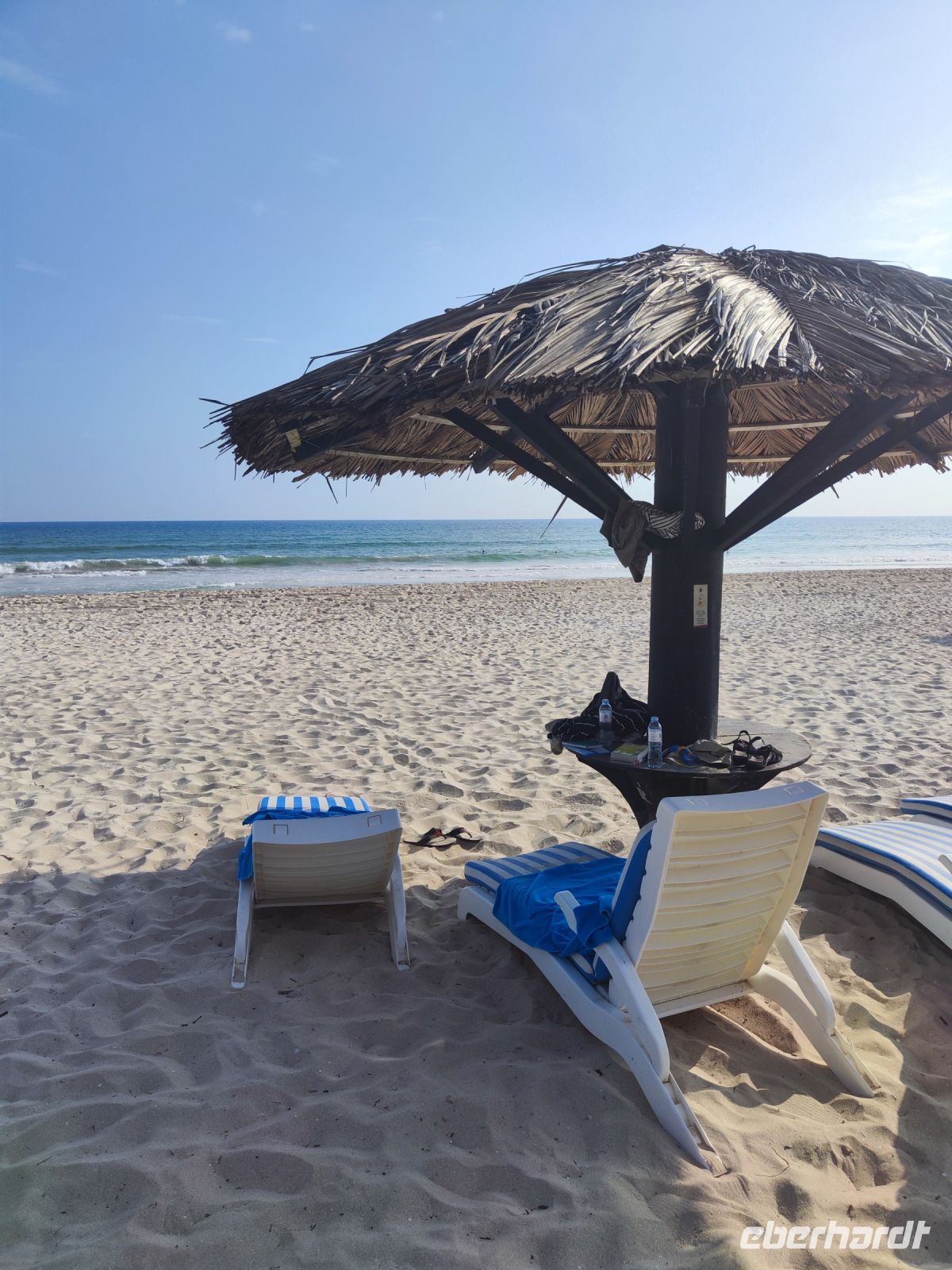 Endlich einen Tag am Meer verbringen. Wir nutzten den Tag zum Entspannen und sortierten unsere Eindrücke. Nach all den aufregenden Abenteuern war es Zeit, einen Gang herunterzuschalten. Es war ein perfekter Tag für Spaziergänge am Strand. Einige von uns wagten sich ins Meer, um im erfrischenden Wasser zu schwimmen, während andere am Strand entlang schlenderten und nach Muscheln suchten. Am Abend versammelten wir uns an unseren lieb gewonnen Tisch direkt am Strand. Beim gemeinsamen letzten Abendessen ließen wir die Reise Revue passieren und erinnerten uns an die schönen Momente der Reise. Es war ein schöner Abschluss für unser Abenteuer im Sultanat Oman.