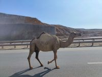 Wir begannen unseren Tag mit einem erneuten Frühstück am malerischen Strand von Salalah. Der Klang der Wellen und der Blick auf das Meer waren ein perfekter Start in den Tag. Unser Ausflug in dem östlichen Teil von Dhofar startet in der Hafenstadt Taqa. Zunächst legten wir einen kurzen Stopp am Strand ein, bevor es auf das Hochplateau ging. Von hier aus hatten wir einen herrlichen Blick auf die Umgebung, den goldgelben Strand und das azurblaue Meer. Wir verweilten einen Moment, um die schönen Ausblicke zu genießen zu können. Unser nächstes Ziel war das UNESCO-Weltkulturerbe Sumhuram, eine historische Stätte von großer Bedeutung. Wir lernten mehr über die antiken Ruinen und die Geschichte dieser faszinierenden Stadt, die eng mit dem Weihrauchhandel verbunden ist. Der Handel lockte Handelsleute aus Indien, Griechenland oder Afrika nach Sumhuram, wo Weihrauch gegen Gewürze, Tücher oder Gold getauscht wurde. Die verlassene Stadt Mirbat war unser nächster kurzer Zwischenstopp. Man kann heutzutage nur noch erahnen, wie früher das hübsche Städtchen ausgesehen haben kann, bevor der Monsun die Stadt heimsuchte. Auf dem Weg zurück begegneten uns einige Kamele, die gemächlich auf der Straße spazierten und die Wüstenatmosphäre perfekt machten. Es folgte ein nächster Höhepunkt. Wir erreichten die Wadi Darbat und entdeckten die malerischen Wasserfälle des Wadis. Unser letzter Tagespunkt waren die Quellen von Ain Razat. Wir spazierten zur Höhle und durften einen Wunsch äußern. Von der Höhle aus hatten wir einen herrlichen Ausblick auf die Quellen, was vielmehr ein kleiner Fluss war. Kurz vorm Hotel hielten wir erneut am Weihrauchmarkt, wo wir die Gelegenheit nutzten, letzte Souvenirs zu kaufen.