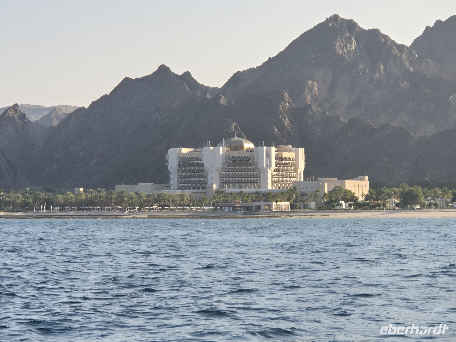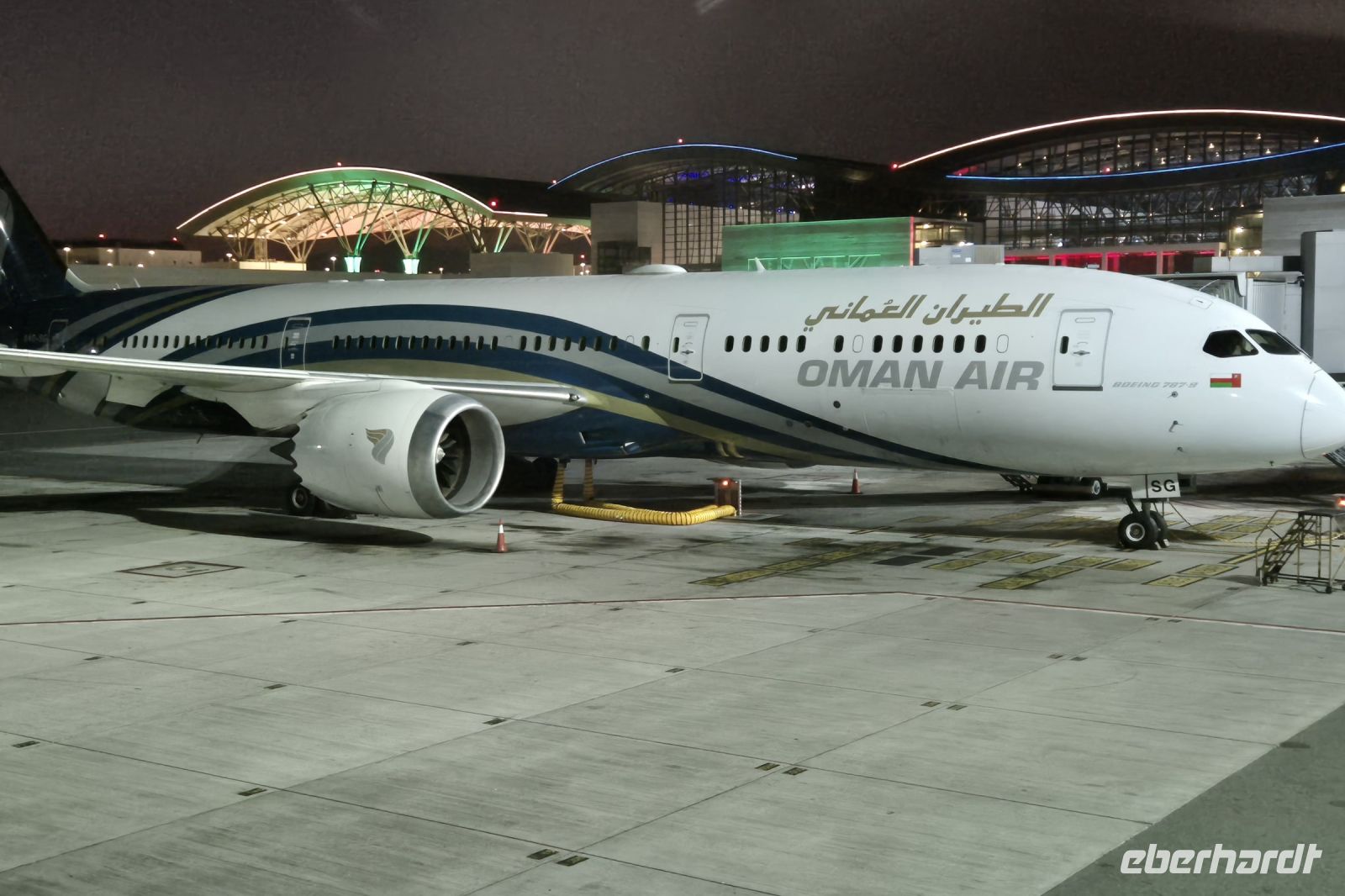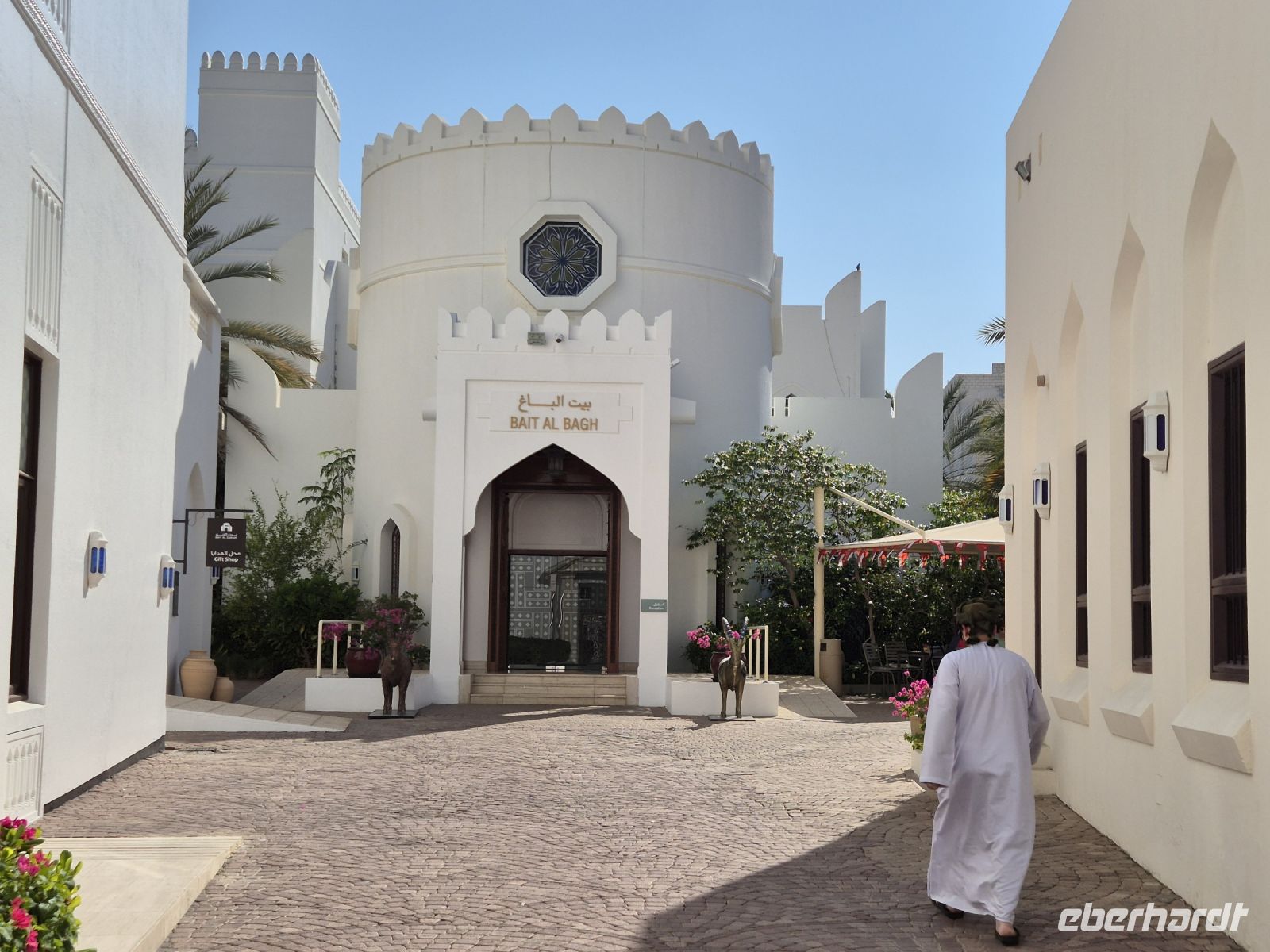Mit dem angenehm ruhig fliegenden Dreamliner erreichen wir sechs Stunden später die omanische Hauptstadt. Hier geht gerade die Sonne auf, wir sind mit unserem Flieger offensichtlich gerade die einzigen ankommenden Passagiere, entsprechend schnell können wir eineisen und gleich unsere Koffer entgegennehmen. An der Wechselstube werden gleich noch omanische Rial eingetauscht. Im Empfangsbereich begrüßt uns Muhammad, unser örtlicher Begleiter. Schon um 7.00 Uhr, und damit deutlich früher als gedacht, sind wir im Hotel, können unsere Zimmer beziehen, in aller Ruhe frühstücken, duschen und leichte Sommerkleidung anlegen.