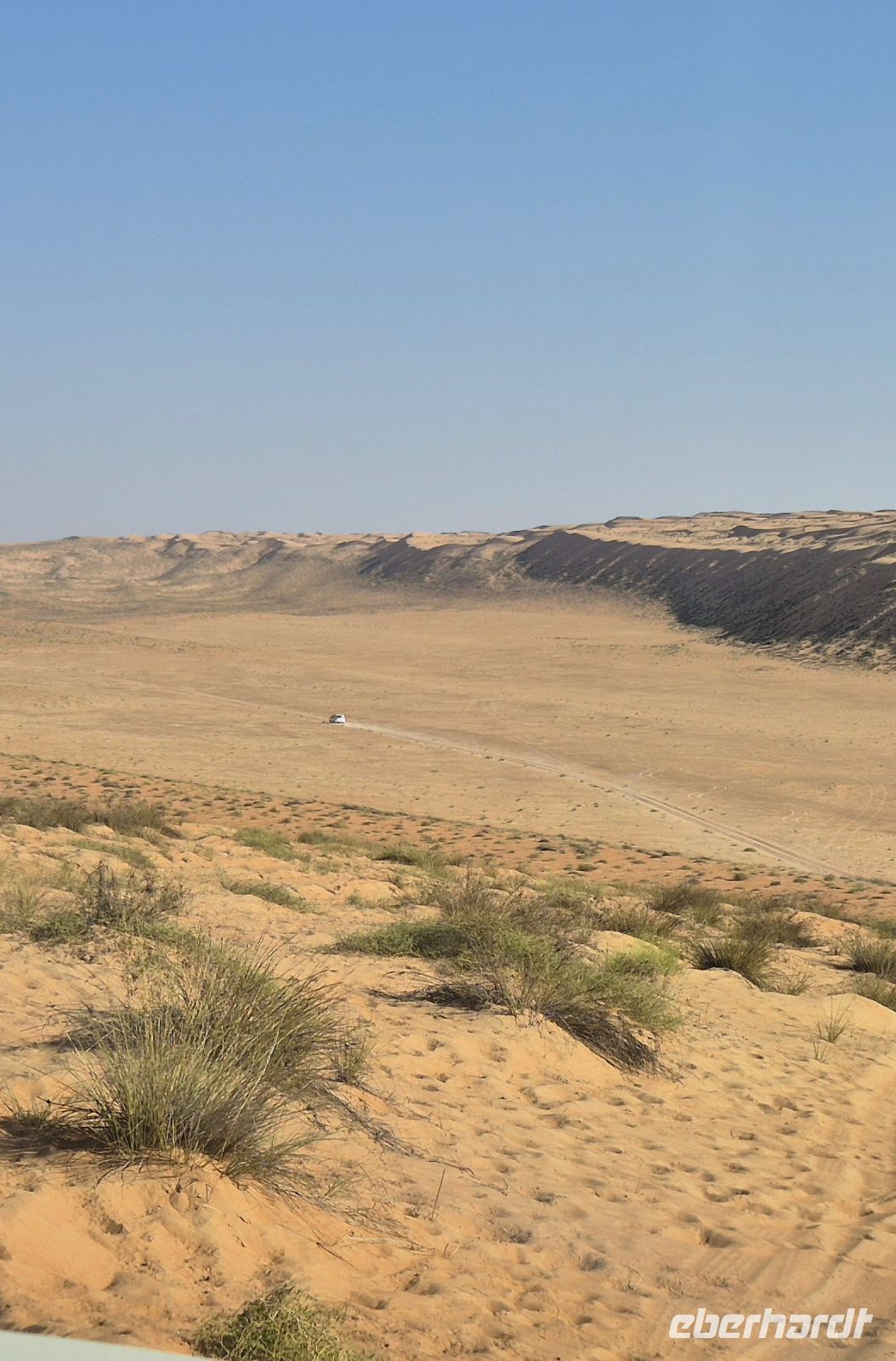 Am Morgen verlassen wir dieses schöne Wüstencamp. Noch einmal nehmen wir die schöne Route durch das benachbarte Dünental, um die Wahiba Sands zu verlassen. Vor uns liegt heute eine relativ lange Strecke mit knapp 400 km bis Muscat.
