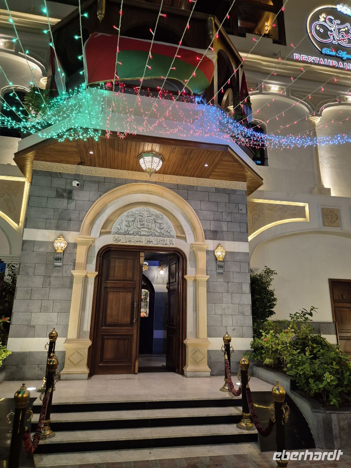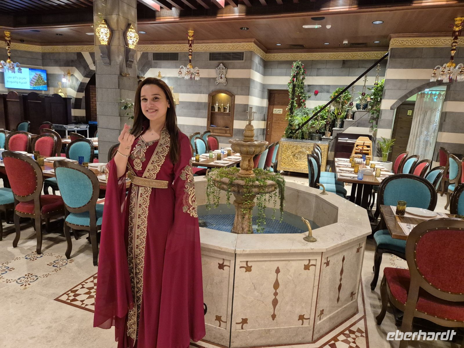 Nach einer kurzen Pause im Hotel besuchen wir noch das Restaurant Bait Al Yasmin. Dieses im osmanischen Stil gestaltete Restaurant wird von Syrern geführt. Auch hier wird nach unserem Verständnis viel zu viel aufgetischt, aber das ist nun mal die hiesige Kultur.