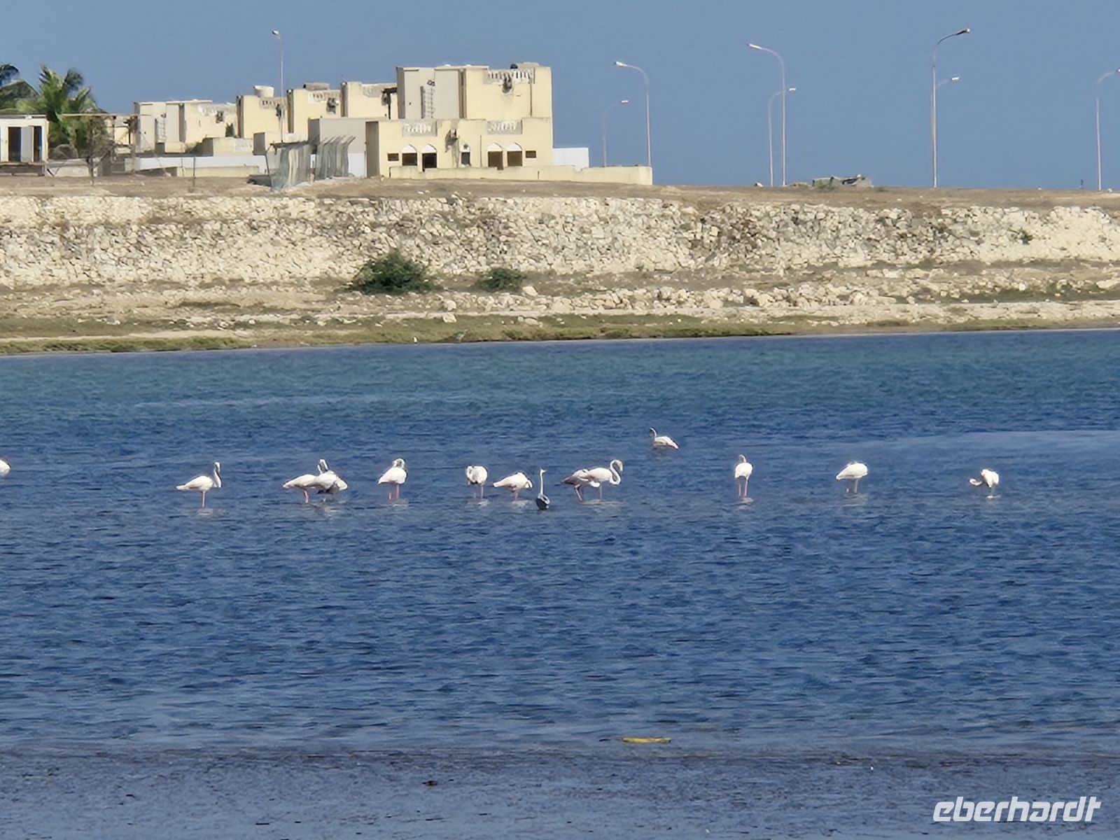 An der Lagune von Mughsail ist unser Fahrer Said so freundlich und fährt uns an eine Stelle, wo wir Flamingos aus der Nähe beobachten können. Sie fühlen sich hier im Winter wohl.