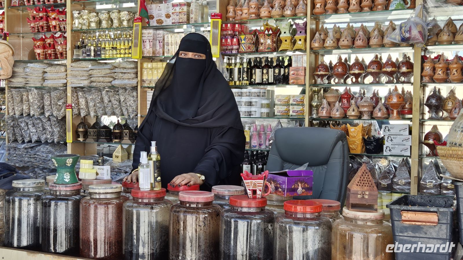 Unsere Fahrt führt uns weiter zum Stadtteil Muttrah. Nach der Passage des Stadttores öffnet sich nach und nach der Blick in diese wunderschöne Bucht. Wir spazieren entlang der alten Handelshäuser und probieren in einem Geschäft omanischen Kaffee mit Kardamom, dazu gibt es verschiedene Kostproben von Süßigkeiten (Halwa). Dann bummeln wird durch den überdachten Souk. Überall duftet es nach Weihrauch. An einem Stand verschaffen wir uns schon einmal einen Überblick rund um den Weihrauch, sparen uns aber den Einkauf für später in Salalah auf. Nun bleibt noch genügend Zeit für individuelle Erkundungen im Souk, für einen Mittagsimbiss oder einen Spaziergang entlang der schönen Corniche von Muttrah.