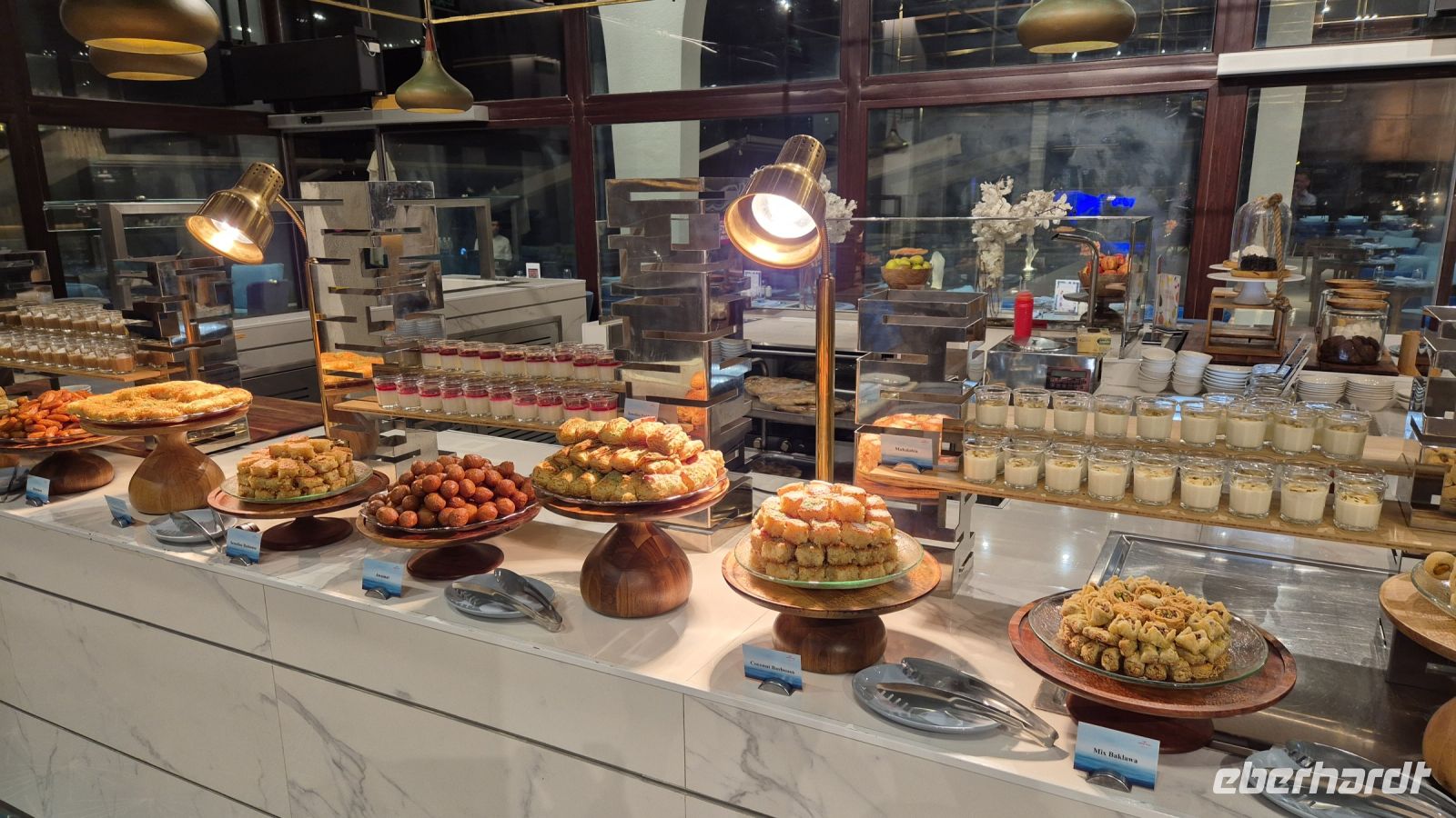 Unser Abendessen haben wir im Restaurant „Turkish Diwan“. Bei sommerlichen Temperaturen können wir draußen sitzen. Zum Hauptgang gibt es wahlweise Grillspiese oder Seebarsch. Nachdem die letzte Nacht im Flieger kurz war, freuen wir uns jetzt alle auf unser Bett…
