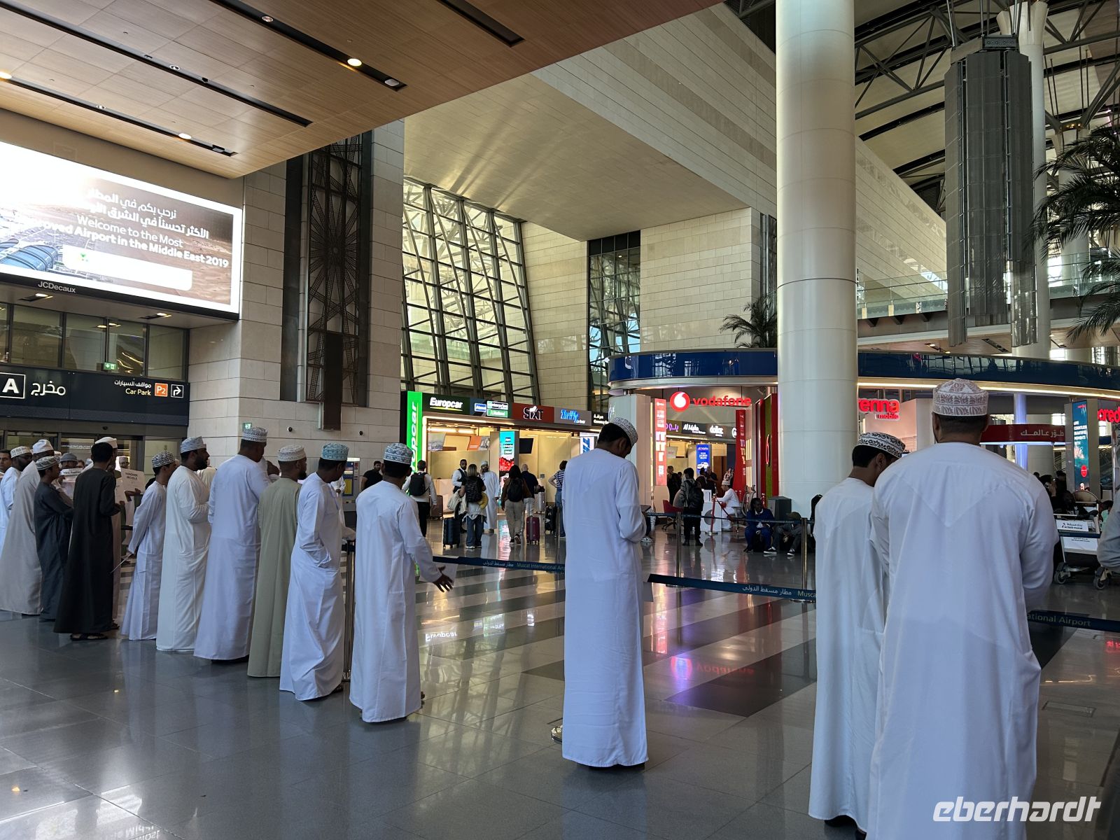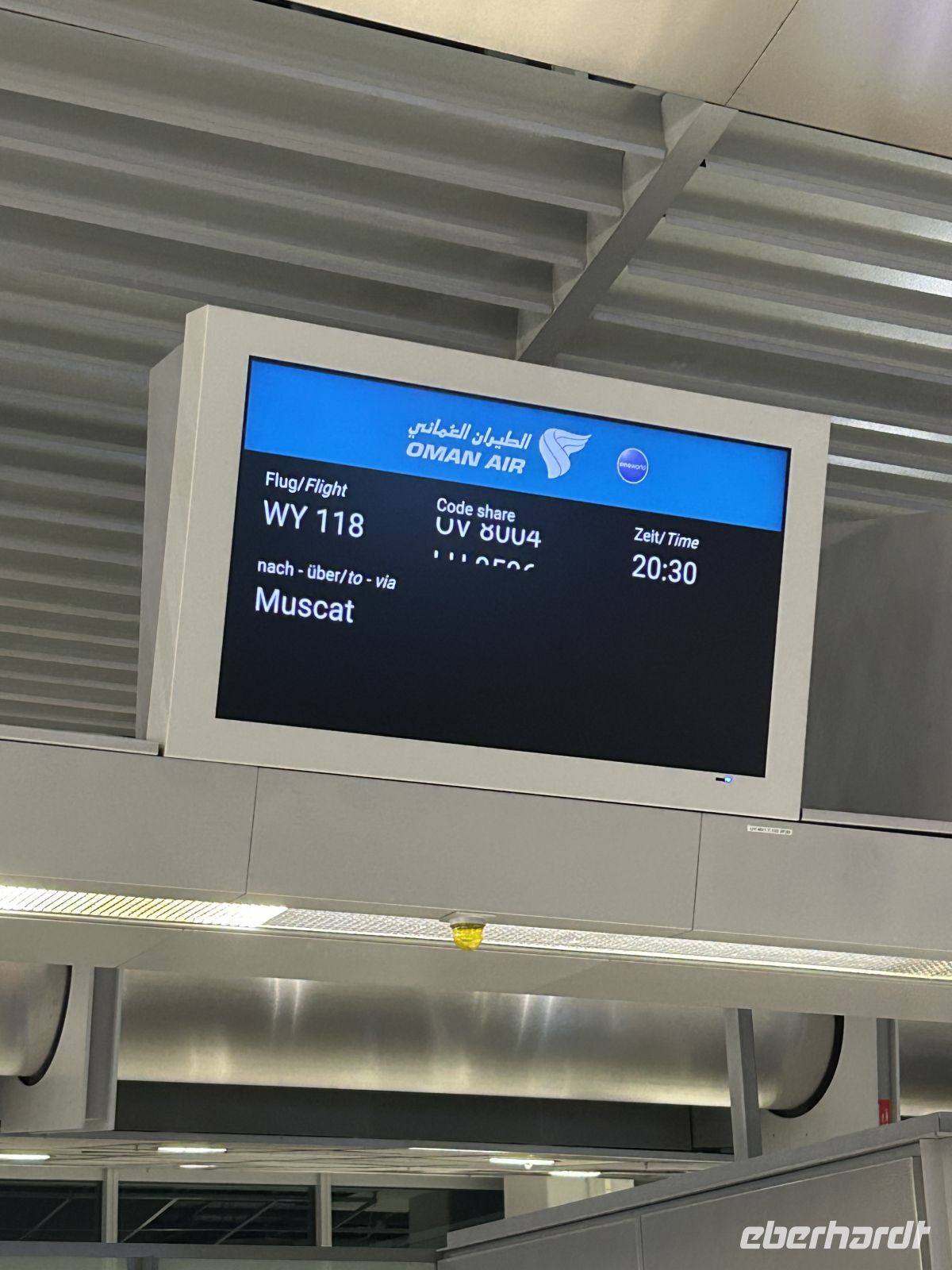Unsere Gruppe ist hier fast komplett; zwei Gäste fliegen heute direkt von München nach Muscat und stoßen dort zu uns. Während wir entspannt die Abfertigung durchlaufen, steigt die Vorfreude auf das, was uns erwartet.