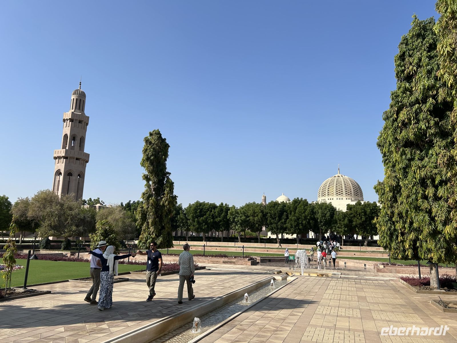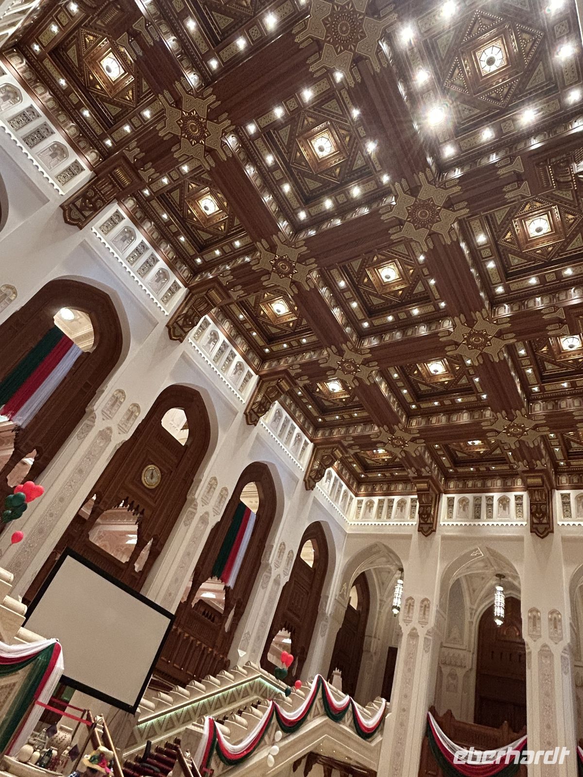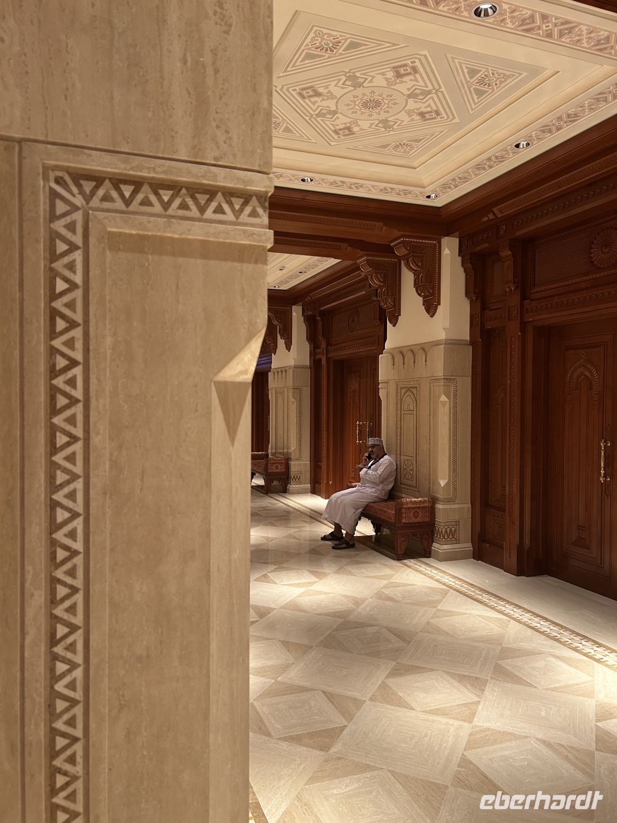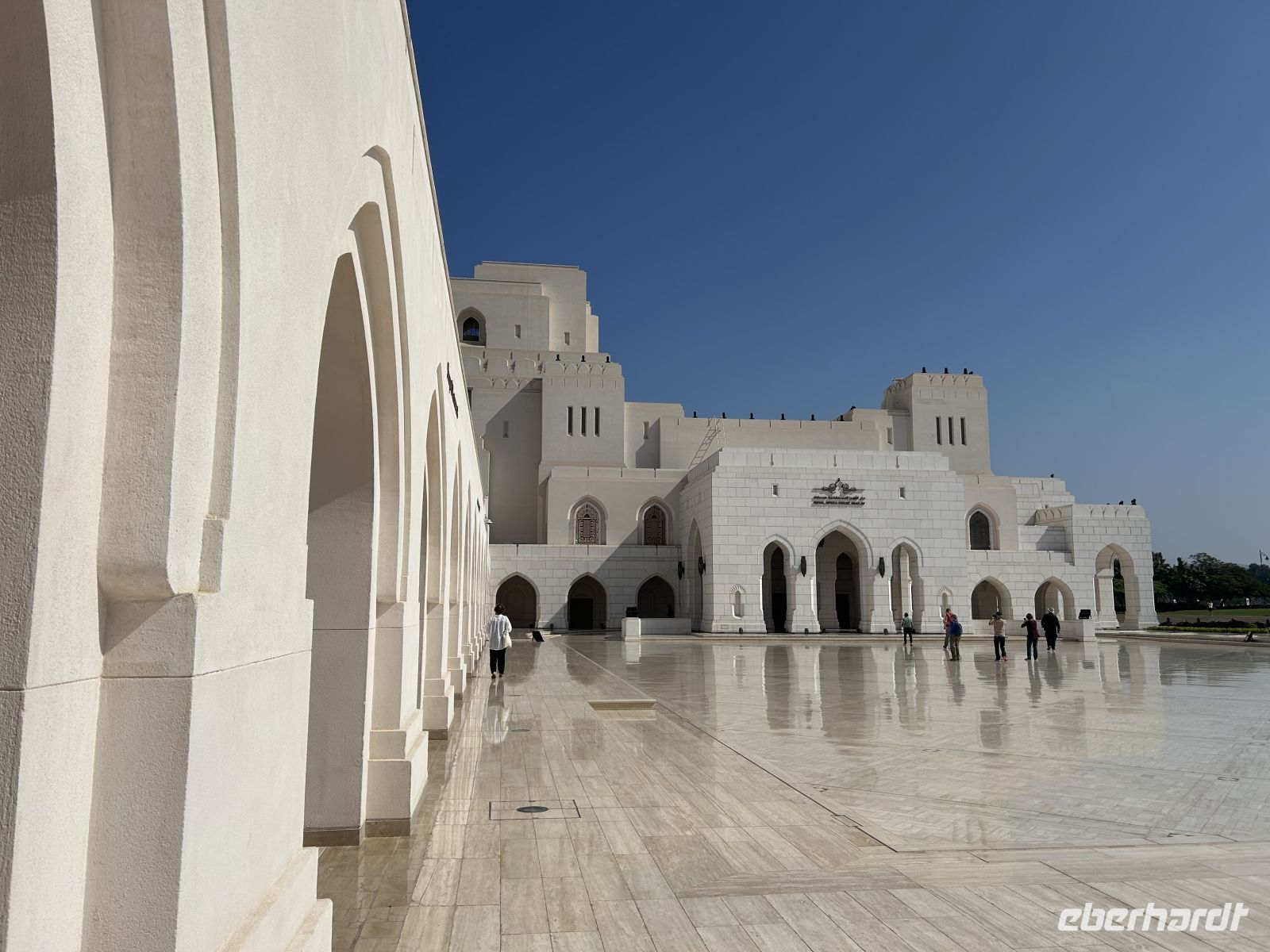 Um 10:30 Uhr beginnt unser erstes richtiges Eintauchen in den Oman. Das Royal Opera House empfängt uns mit strahlend weißem Marmor, kunstvollen Details und einer Eleganz, die uns sofort staunen lässt. Die Mischung aus moderner Architektur und omanischer Tradition wirkt fast wie ein Auftakt zu den Kontrasten, die uns im Land noch begegnen werden.
