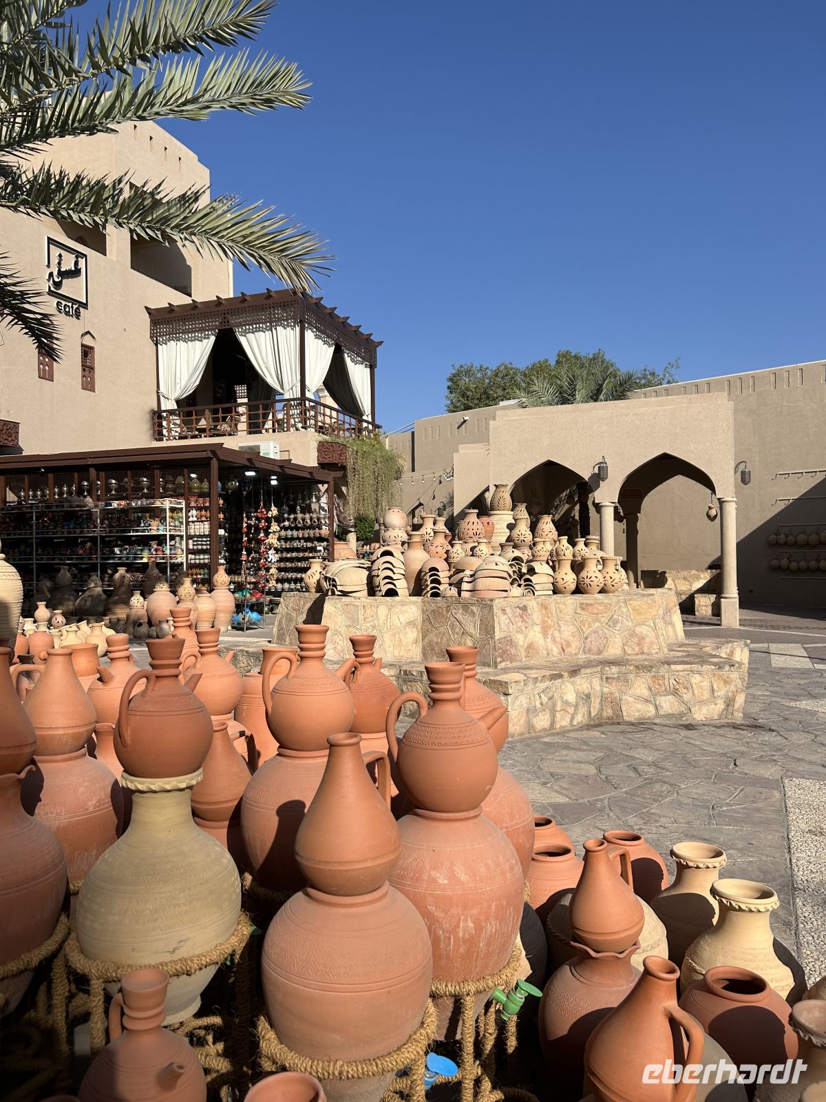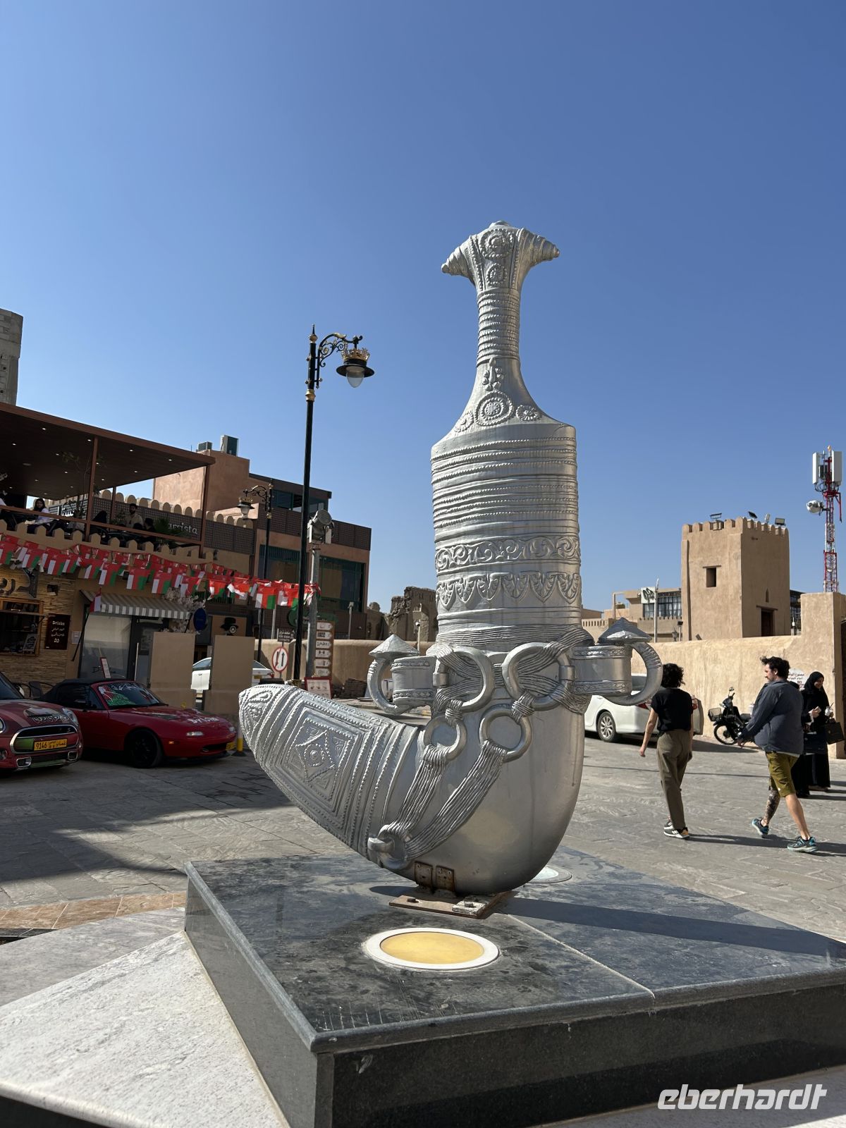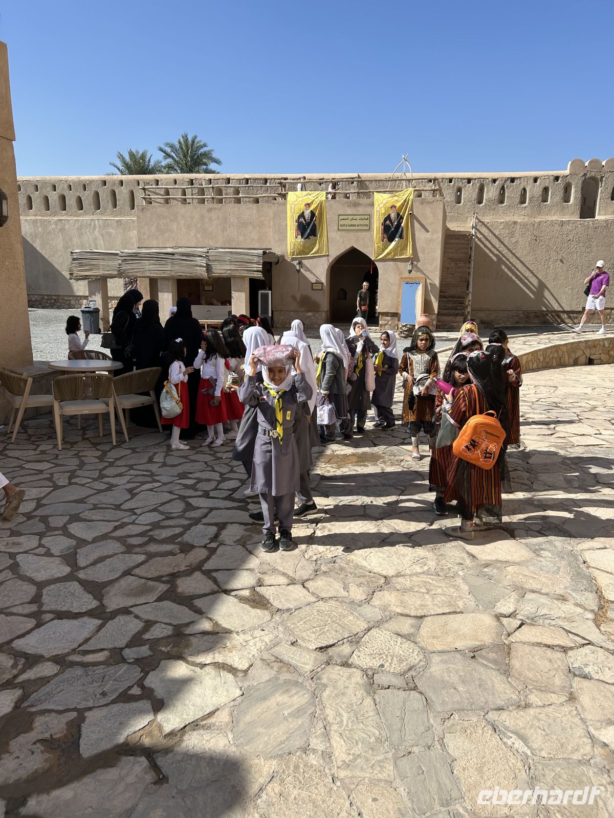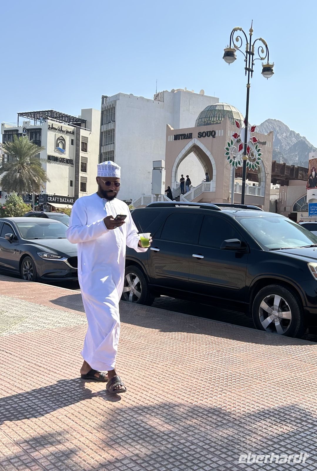 Dort erwartet uns der weitläufige Souk, ein Marktlabyrinth, das in seiner Vielfalt kaum zu übertreffen ist. Wir starten mit einer gemeinsamen Runde, um einen Überblick zu gewinnen: das Areal des Viehmarktes, der freitags zum echten Spektakel wird, der Dattelmarkt mit unzähligen Sorten, die Fischhalle, der Halwa-Markt, die farbenfrohen Obststände, der Waffen- und Khanjar-Markt, Gewürze, Töpferwaren, Schmuck, Kleidung – ein Kaleidoskop orientalischen Lebens.