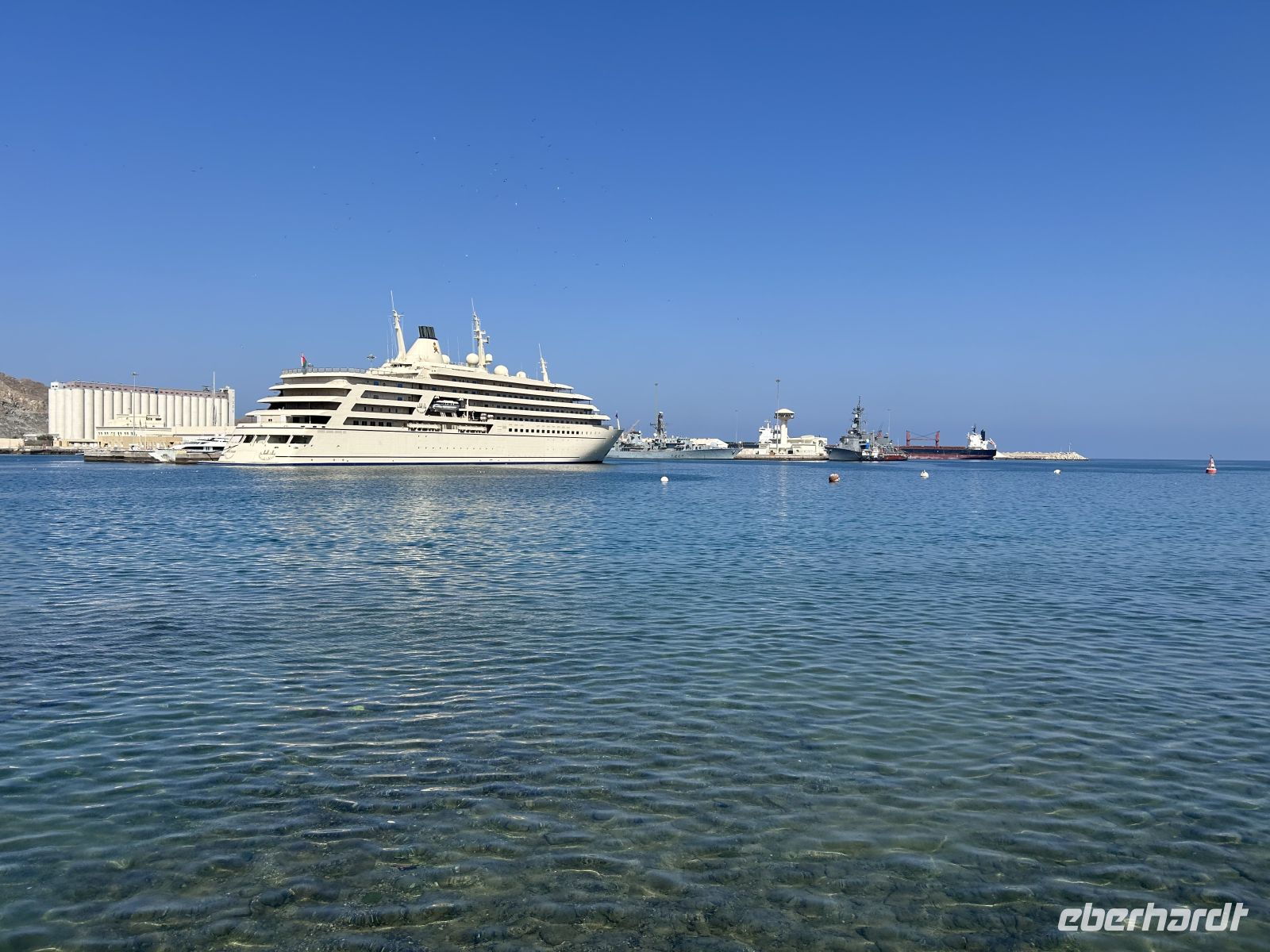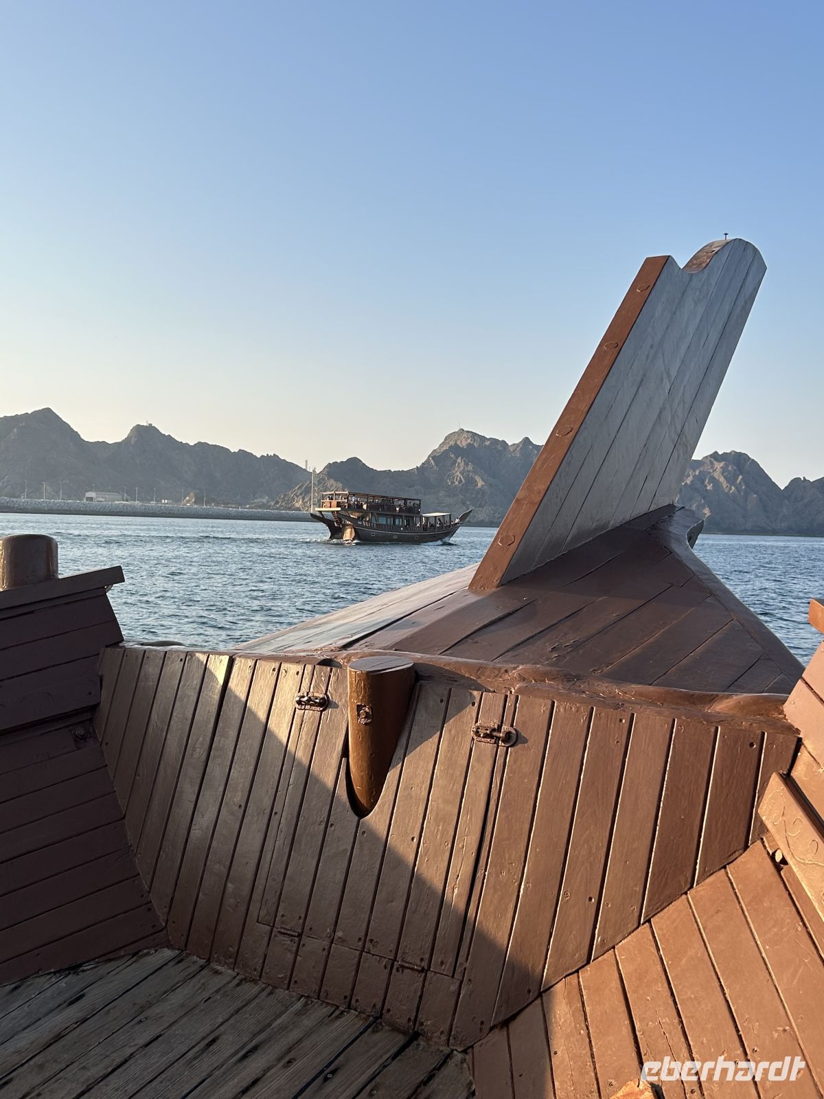Nach einem angenehm ruhigen Flug taucht unter uns im Morgengrauen die Küste Omans auf. Kurz nach 6 Uhr rollen wir über das Flugfeld des modernen Flughafens von Muscat – und mit dem Öffnen der Türen schlägt uns die warme Luft entgegen, die uns sofort spüren lässt: Wir sind wirklich angekommen.