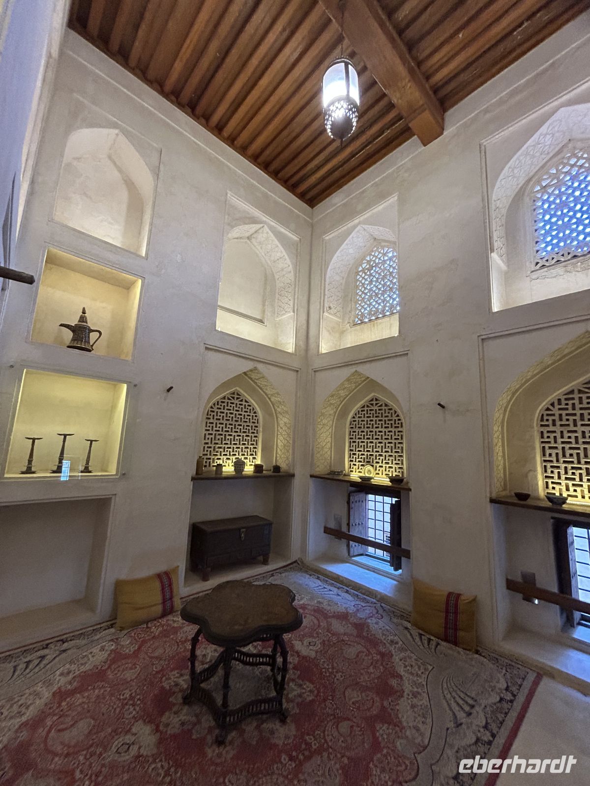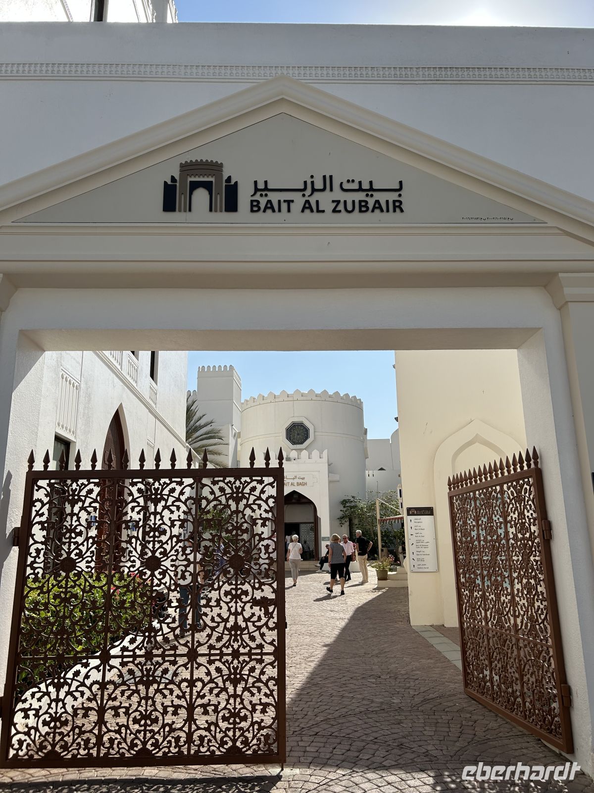 Im Bait Al Zubair Museum tauchen wir tiefer in die Kultur des Landes ein. Traditionelle Gewänder, kunstvolle Dolche, Schmuck und Alltagsgegenstände geben uns ein Gefühl für die omanische Geschichte. Im schattigen Museumscafé genießen wir anschließend einen Kaffee – ein Moment der Ruhe, in dem wir spüren, wie wir immer mehr im Oman ankommen.