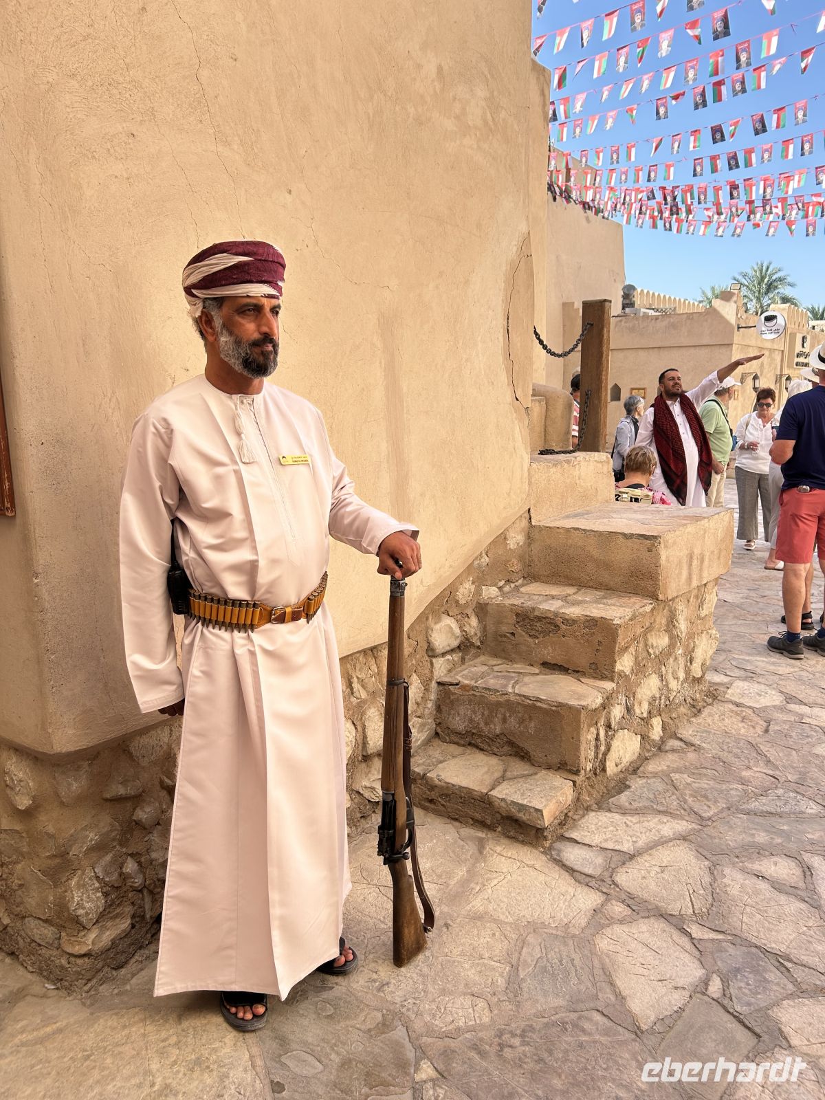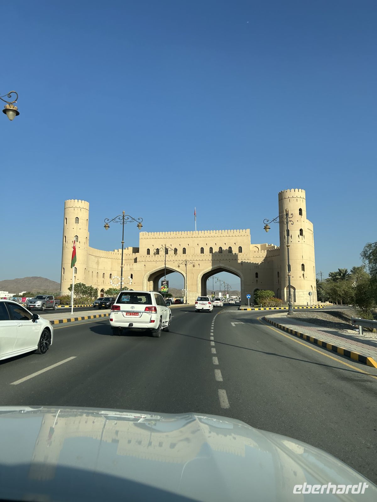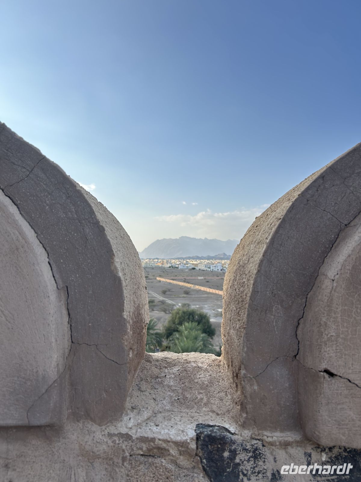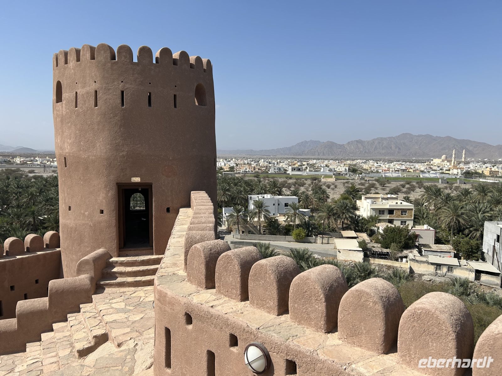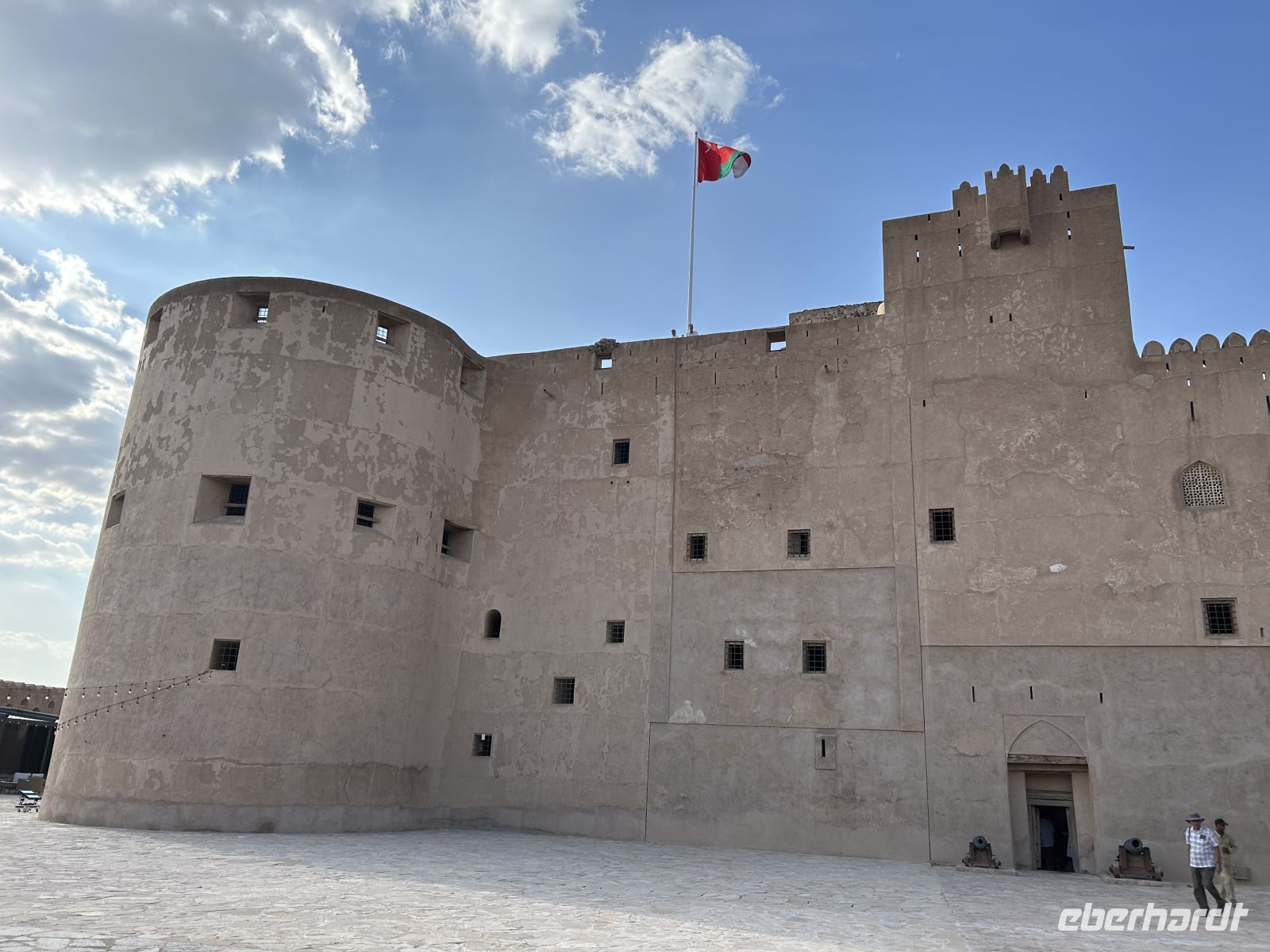 Danach führt uns die Route nach Nakhl, wo das mächtige Fort auf einem Felsen thront. Von den Zinnen aus öffnet sich ein traumhafter Blick über Palmenhaine, Berge und das weitläufige Tal – ein Panorama, das die Kamera kaum einfangen kann.