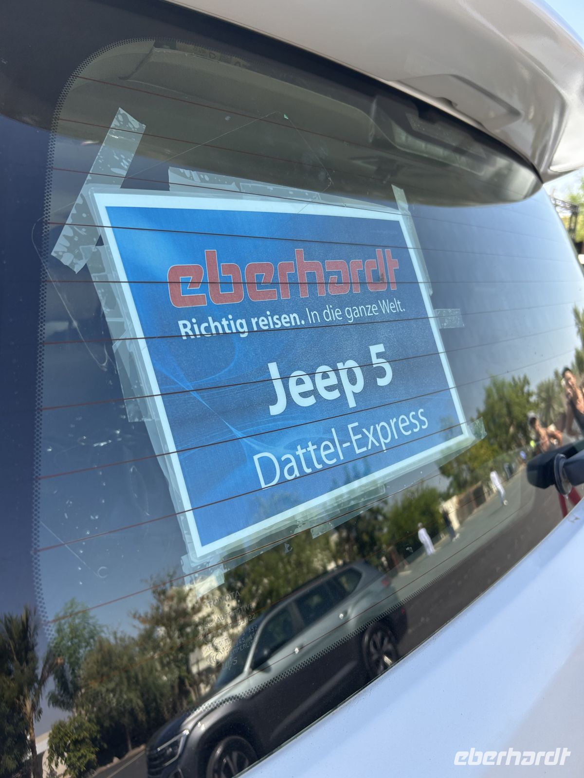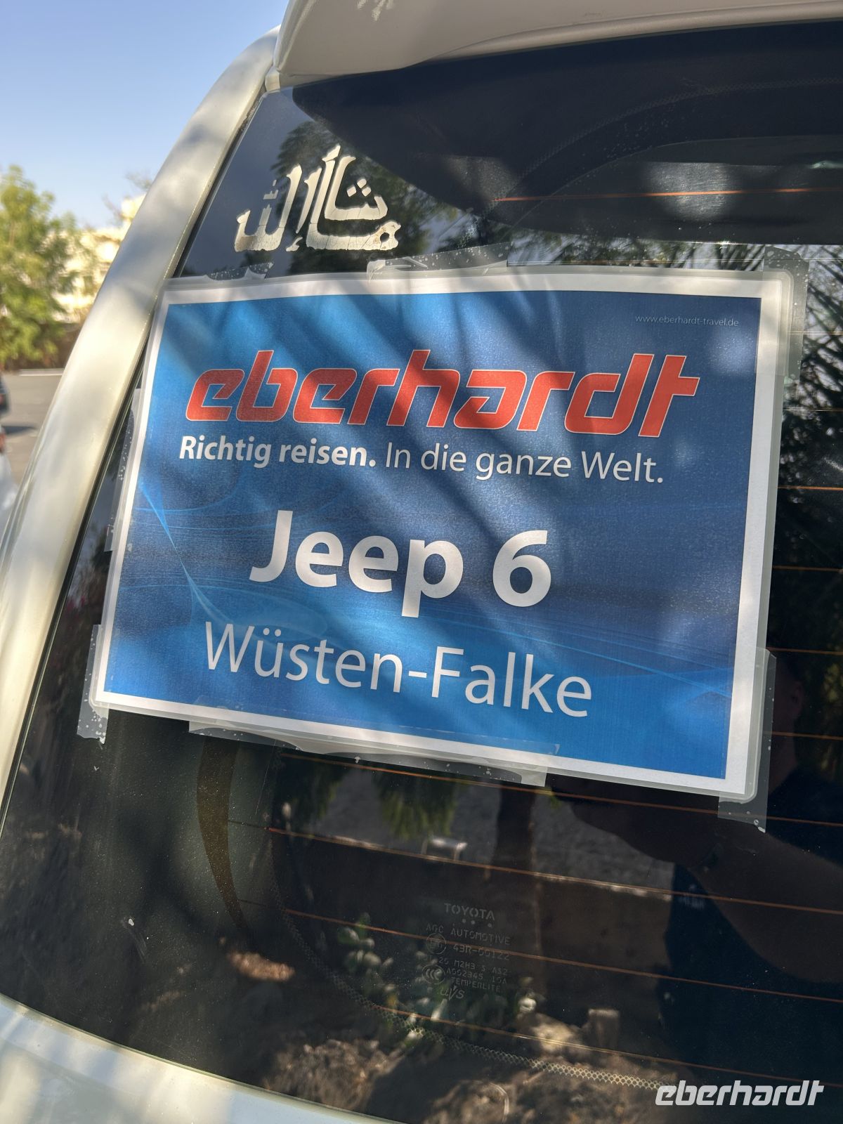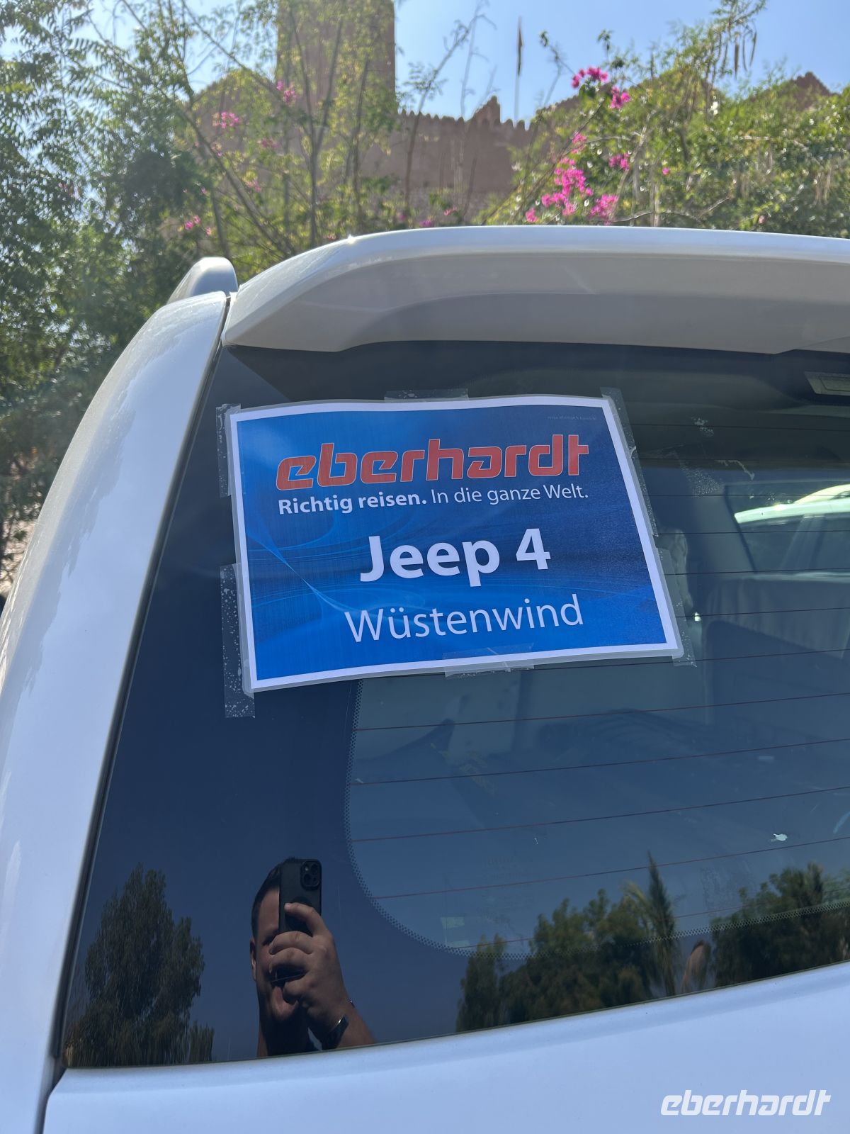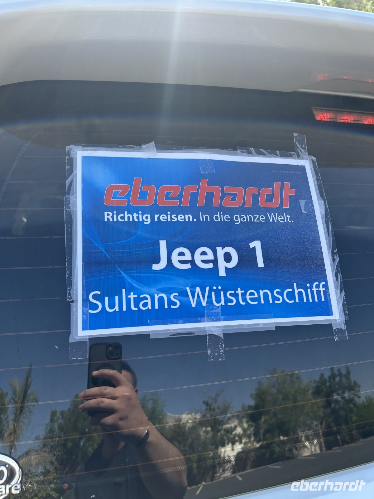 Vor dem Hotel herrscht gespannte Vorfreude, als nacheinander unsere Geländewagen vorfahren: „Sultans Wüstenschiff“, „Dünen-Gleiter“, „Sandfloh“, „Wüstenwind“, „Dattel-Express“ und „Wüsten-Falke“. Wir verstauen unser Gepäck, finden unsere Plätze – und mit einem leichten Brummen setzen sich die Motoren in Bewegung. Unsere kleine Karawane rollt los.