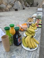 Nun wird es gemütlich: Wir genießen ein Picknick an den warmen Quellen von Ain Thowara, wo klares Wasser zwischen Palmen und Felsen hervorquillt. Ein friedlicher Ort, an dem die Zeit für einen Moment stillzustehen scheint.