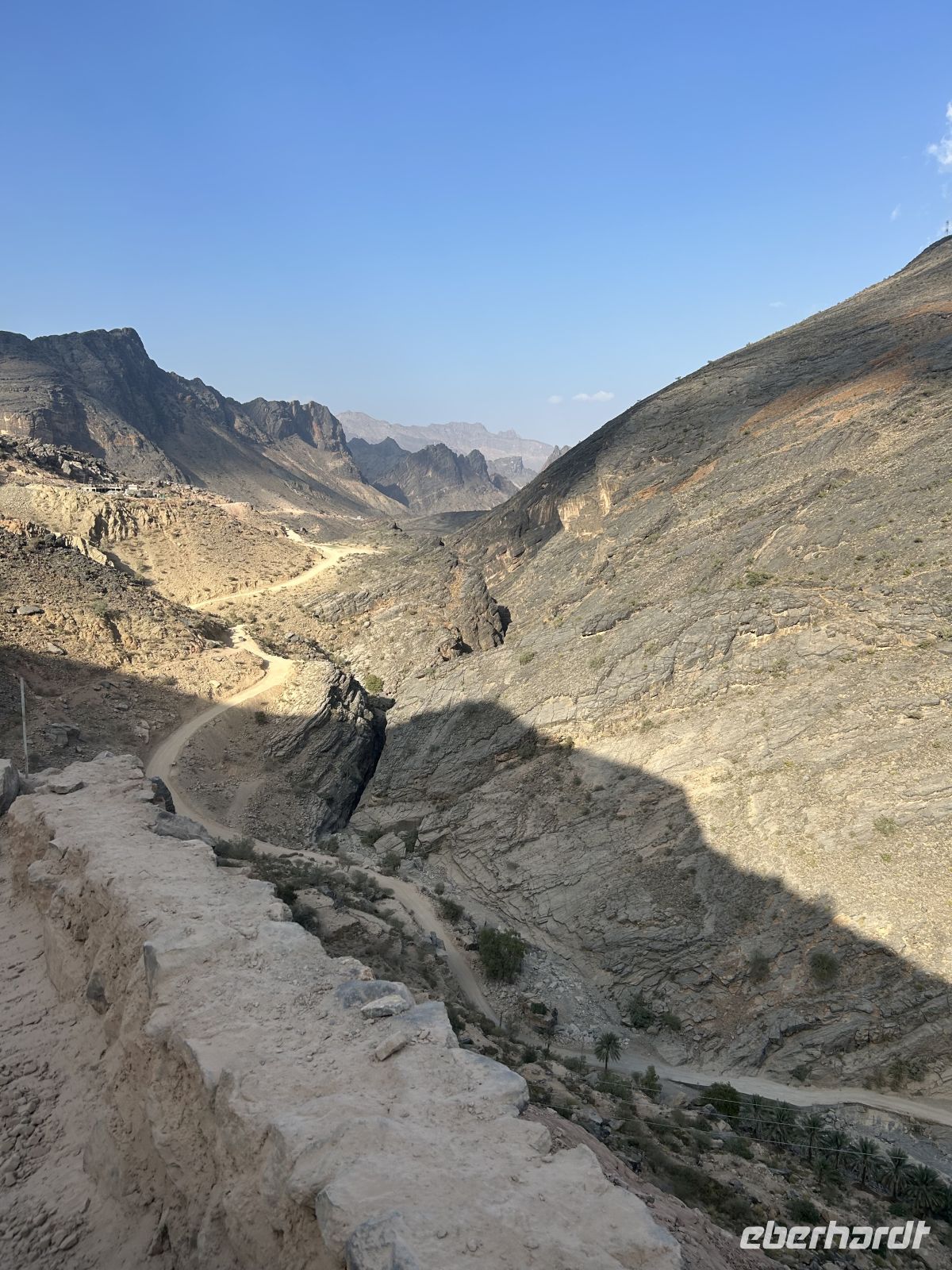 Gut gestärkt fahren wir weiter zum berühmten Diana’s Viewpoint, benannt nach Lady Diana, die diesen Ort einst besuchte. Von hier aus starten wir unseren Three Village Walk – eine der schönsten Wanderungen des Omans.