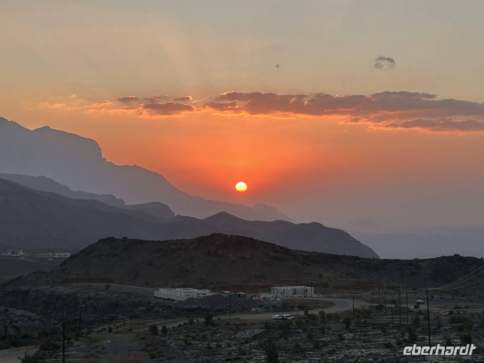 Am Abend erreichen wir unser Ziel: das Jebel Shams Resort, wo wir die Nacht direkt auf dem Plateau verbringen. Kühlere Bergluft, klare Sterne und die Vorfreude auf den „Grand Canyon des Oman“ begleiten uns in unsere Zimmer. Ein Tag voller Abenteuer – und ein Vorgeschmack auf das, was noch kommt.