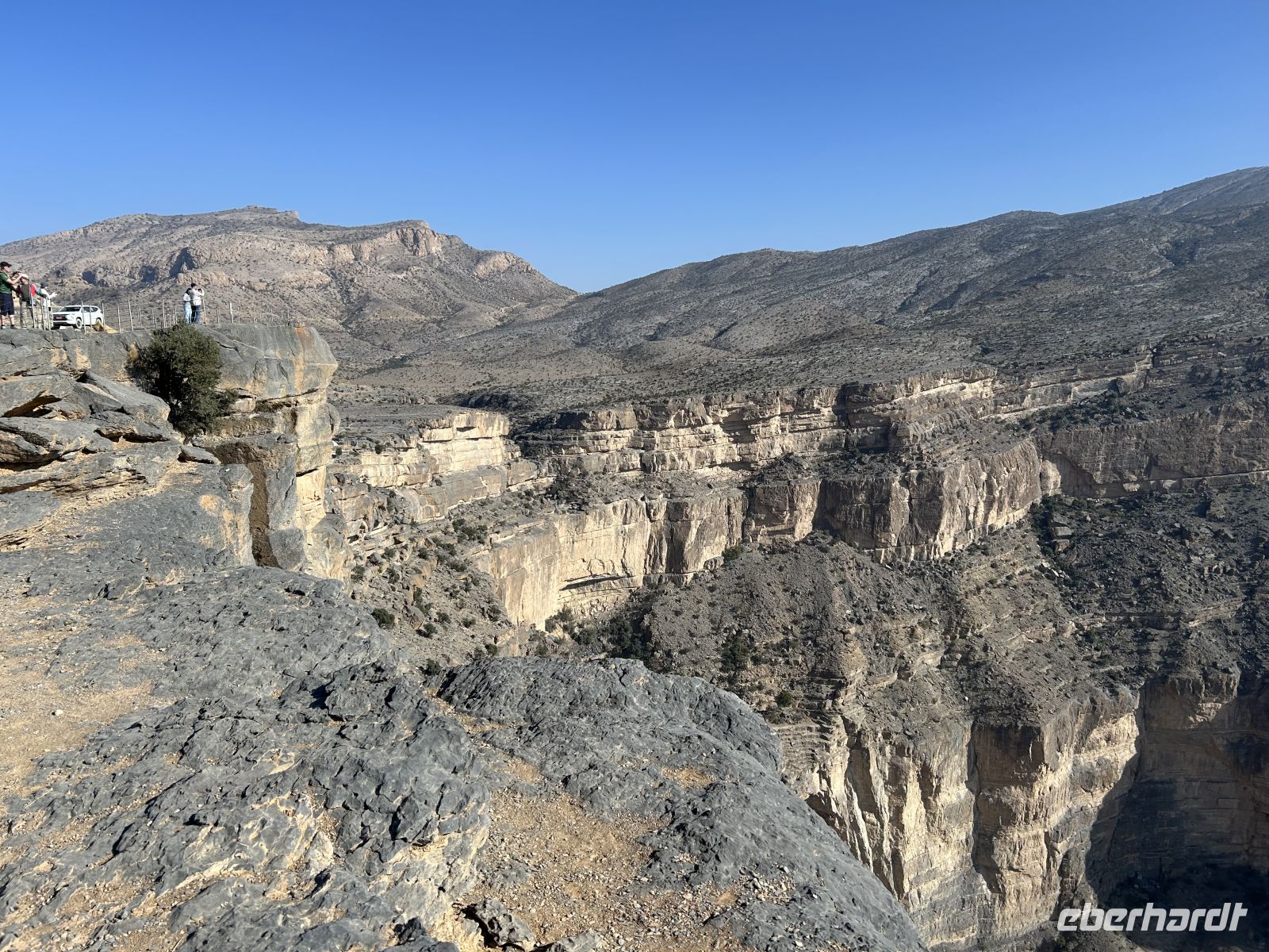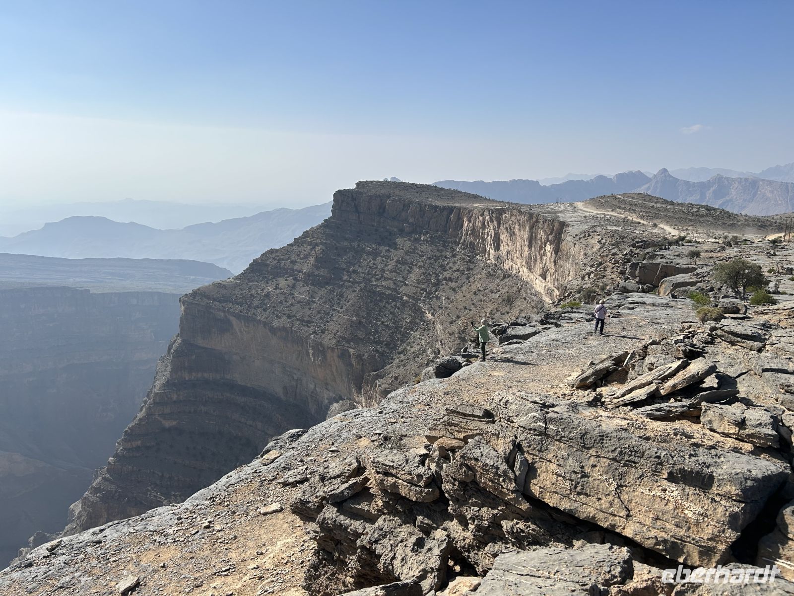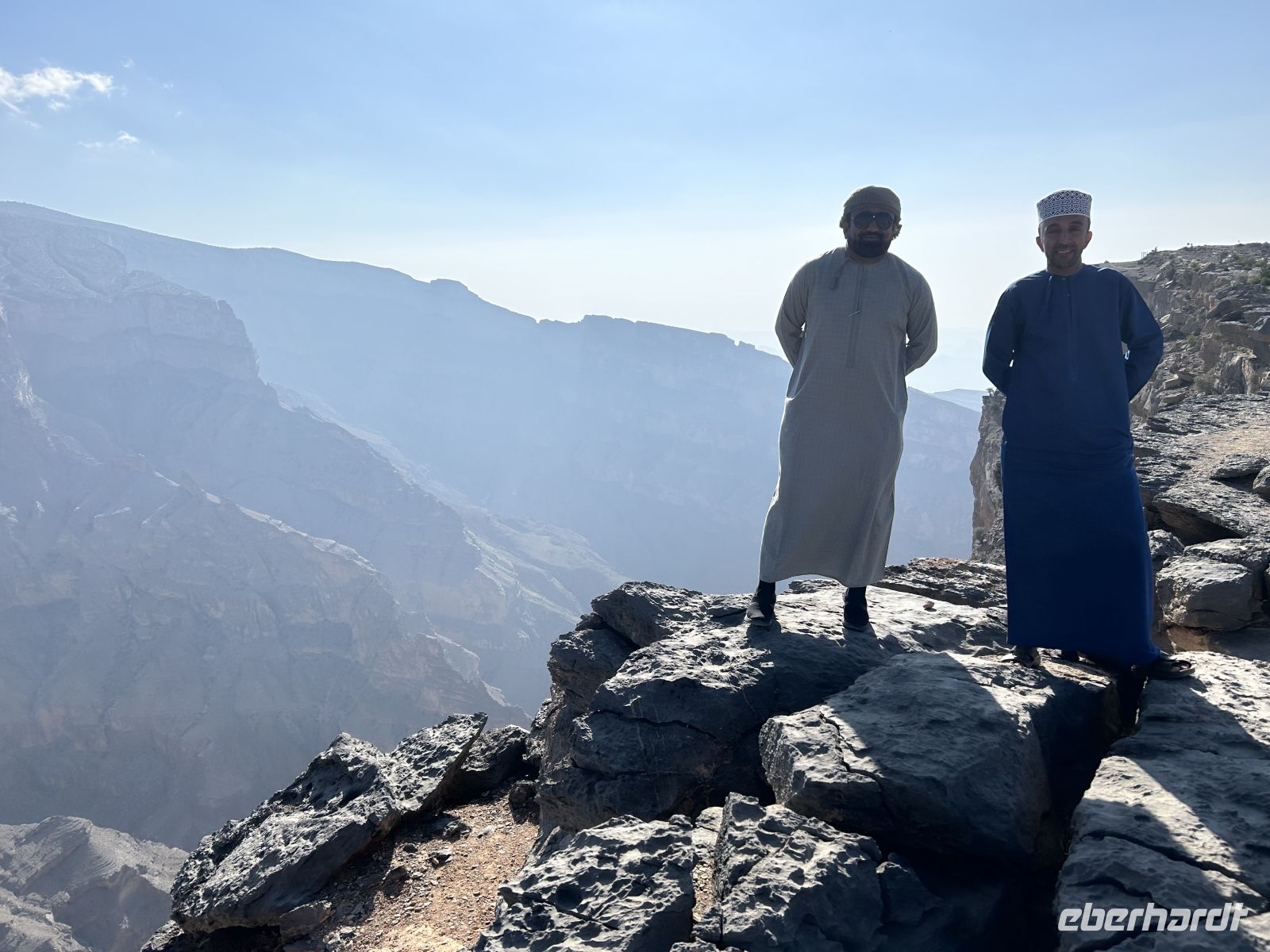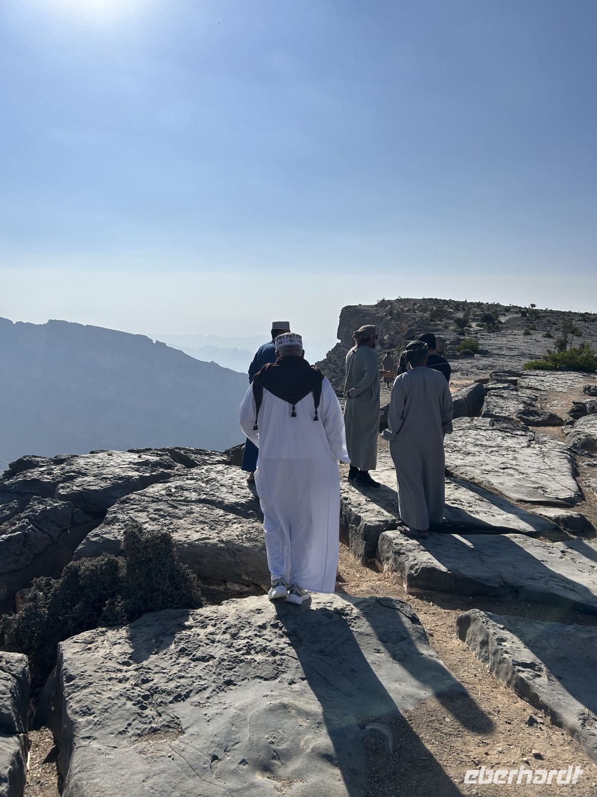 Zunächst führt uns ein kurzer Spaziergang entlang des Grand Canyon des Oman. Die gewaltigen Abgründe, schroffen Felsen und die Stille der Höhe lassen uns für einen Moment sprachlos stehen. Ein Panorama, das man nicht vergisst.