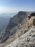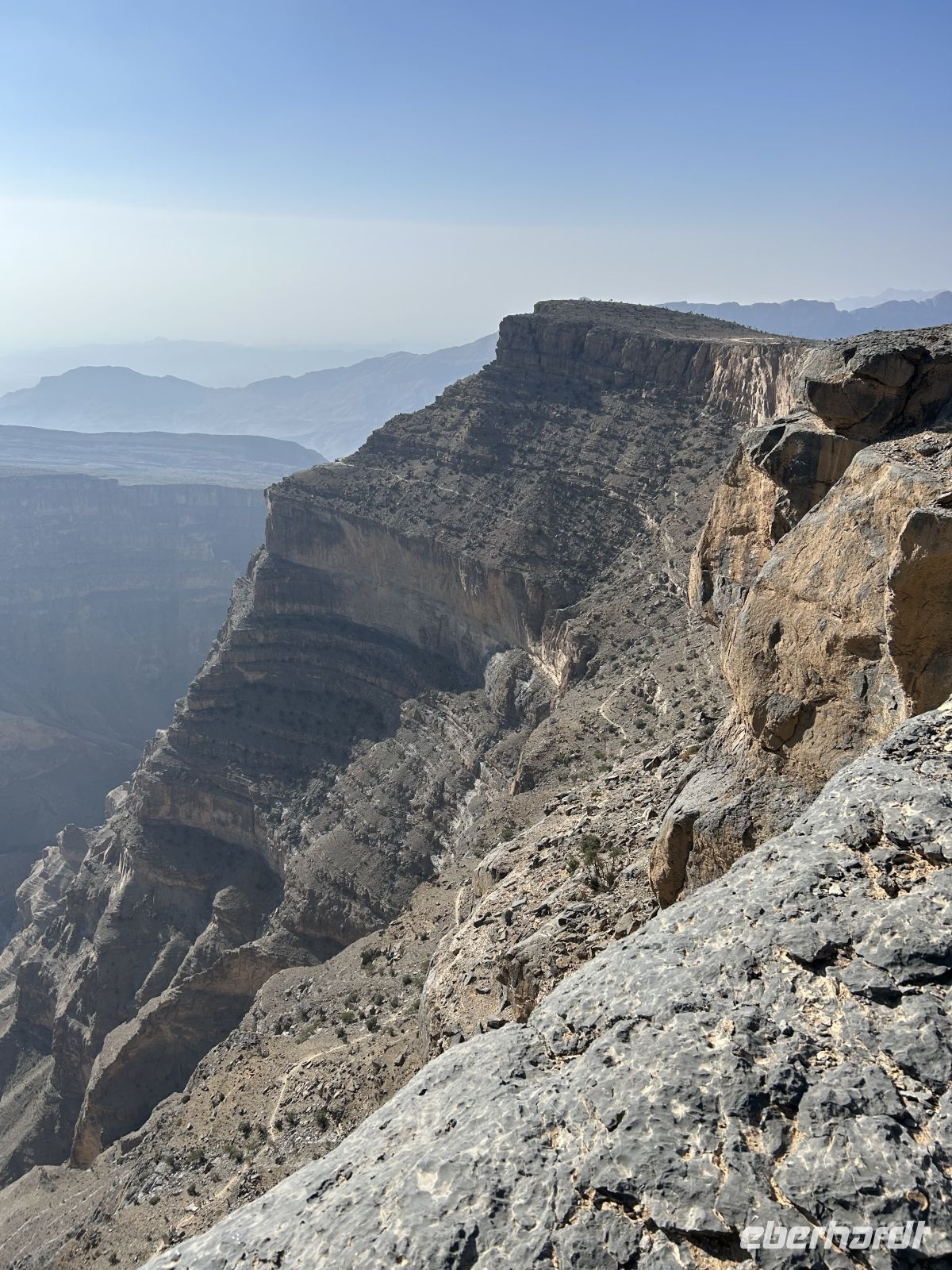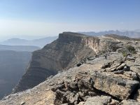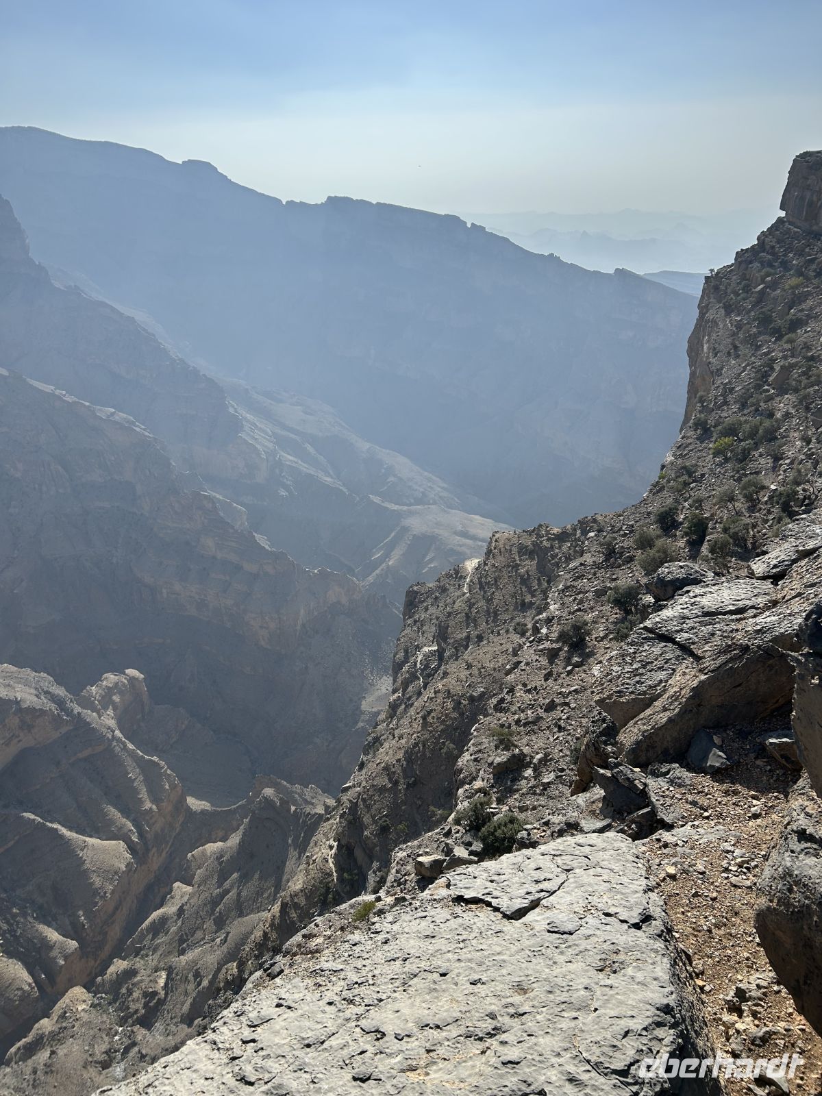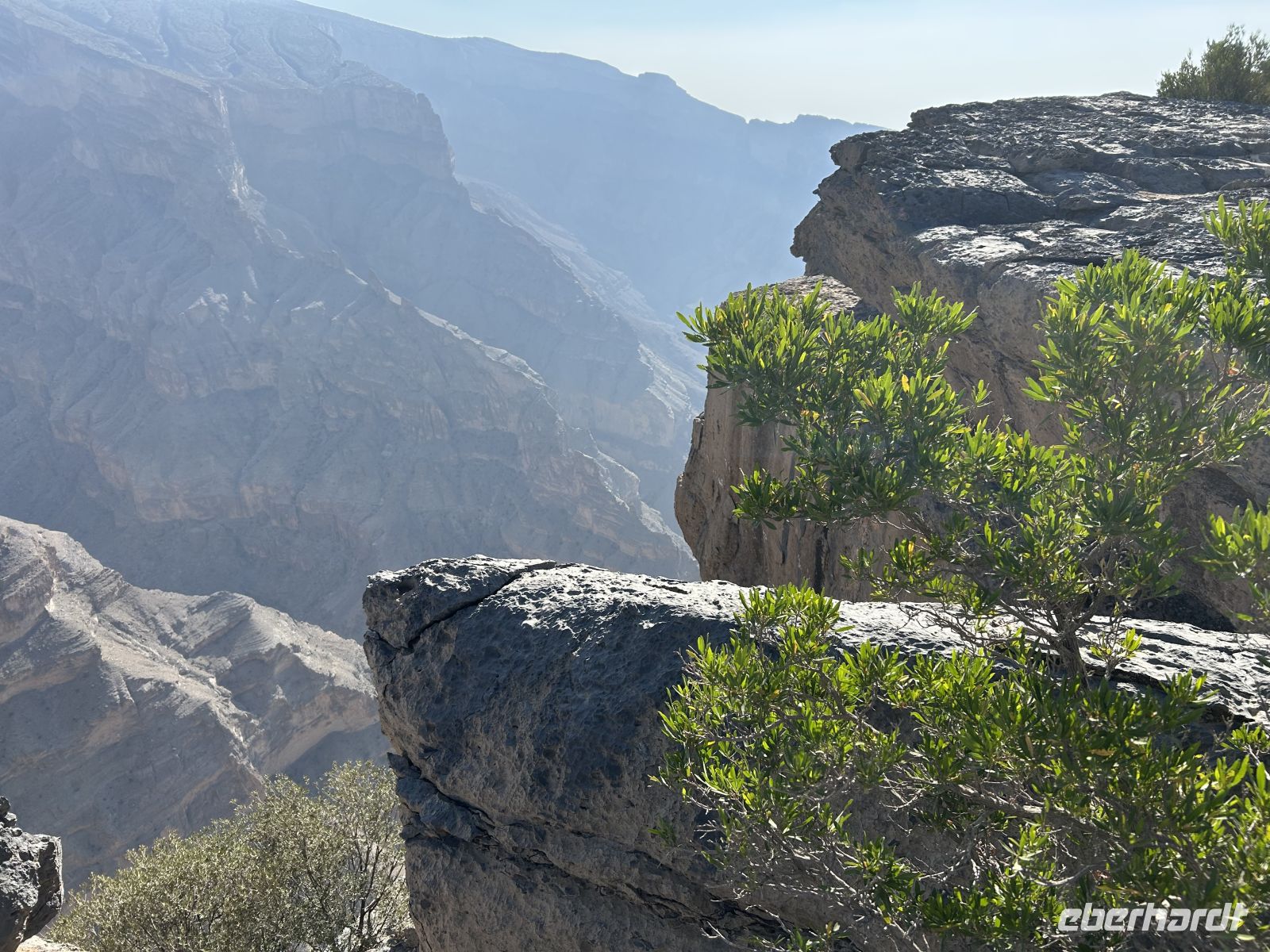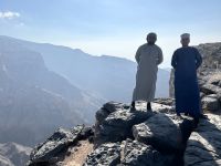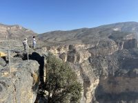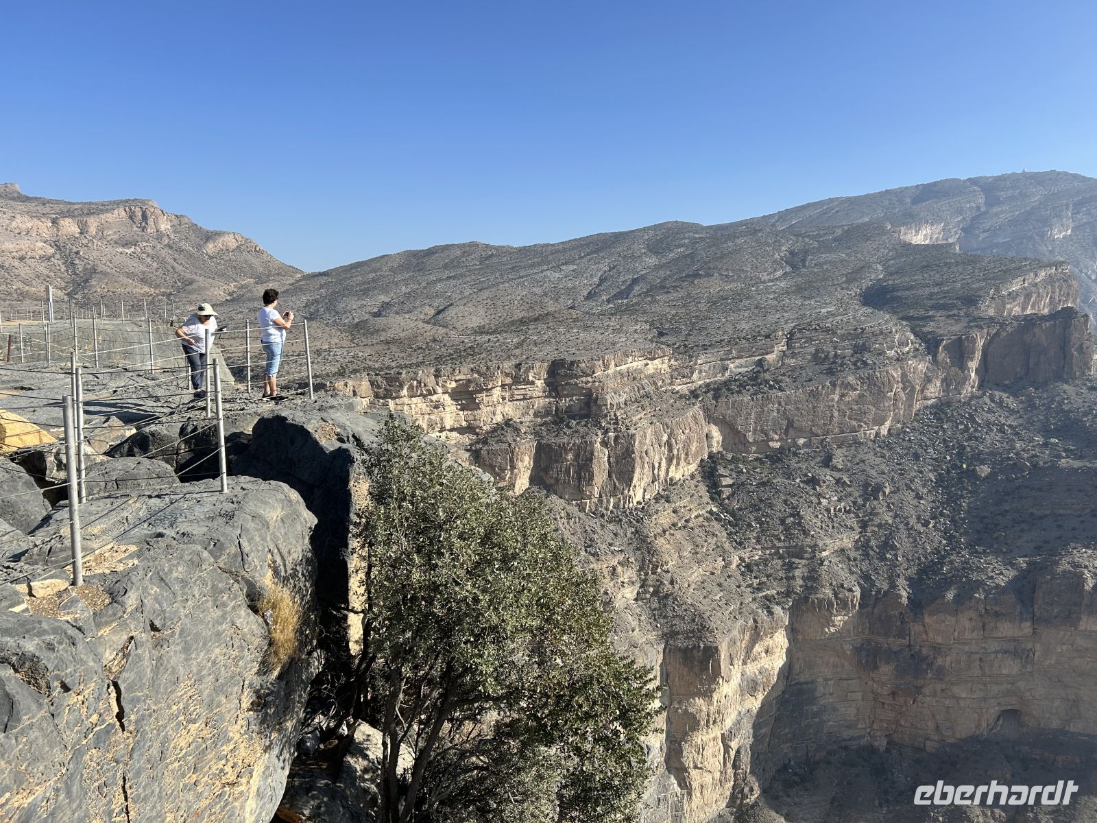 Zunächst führt uns ein kurzer Spaziergang entlang des Grand Canyon des Oman. Die gewaltigen Abgründe, schroffen Felsen und die Stille der Höhe lassen uns für einen Moment sprachlos stehen. Ein Panorama, das man nicht vergisst.