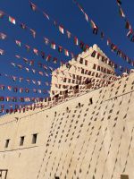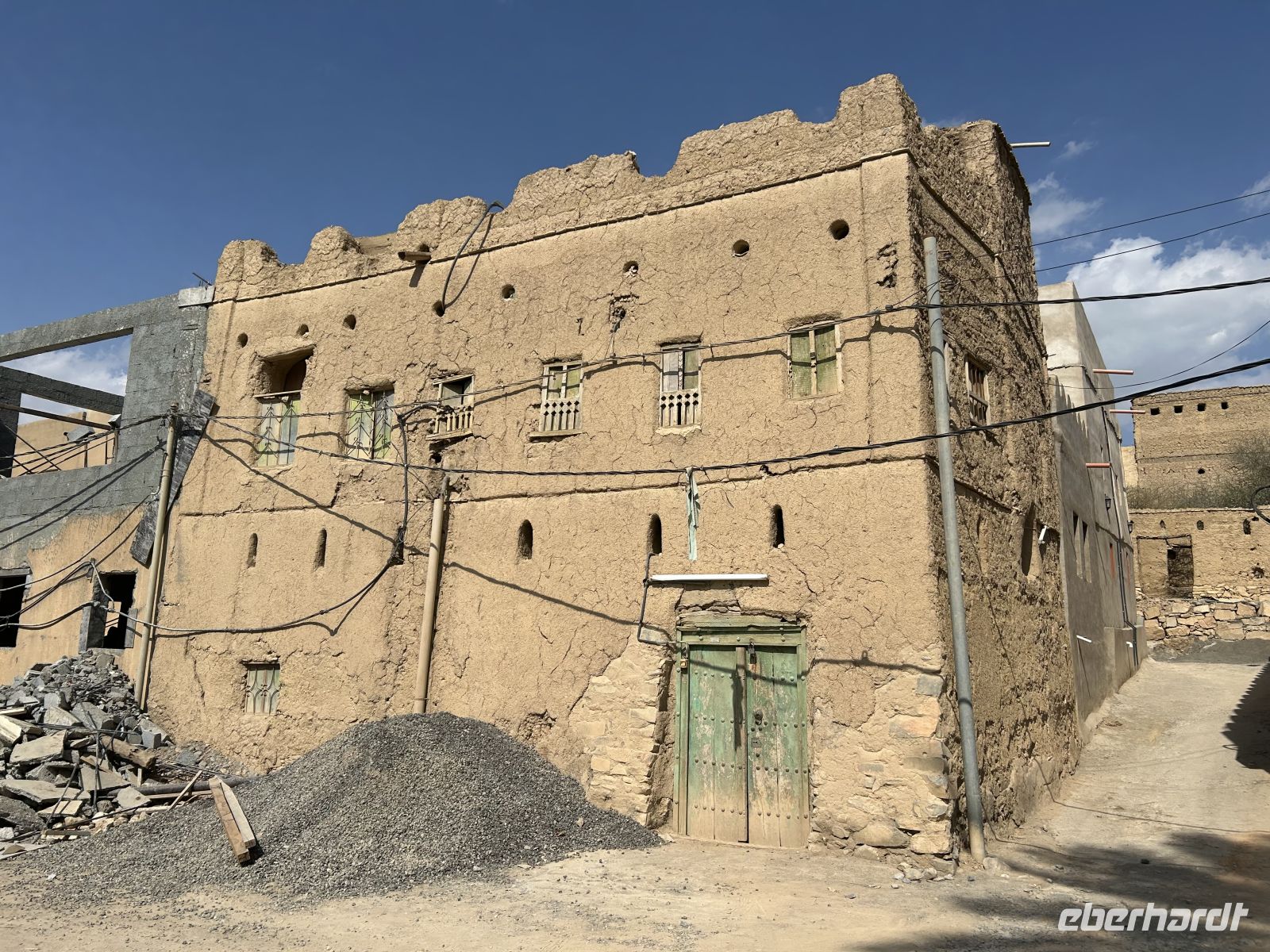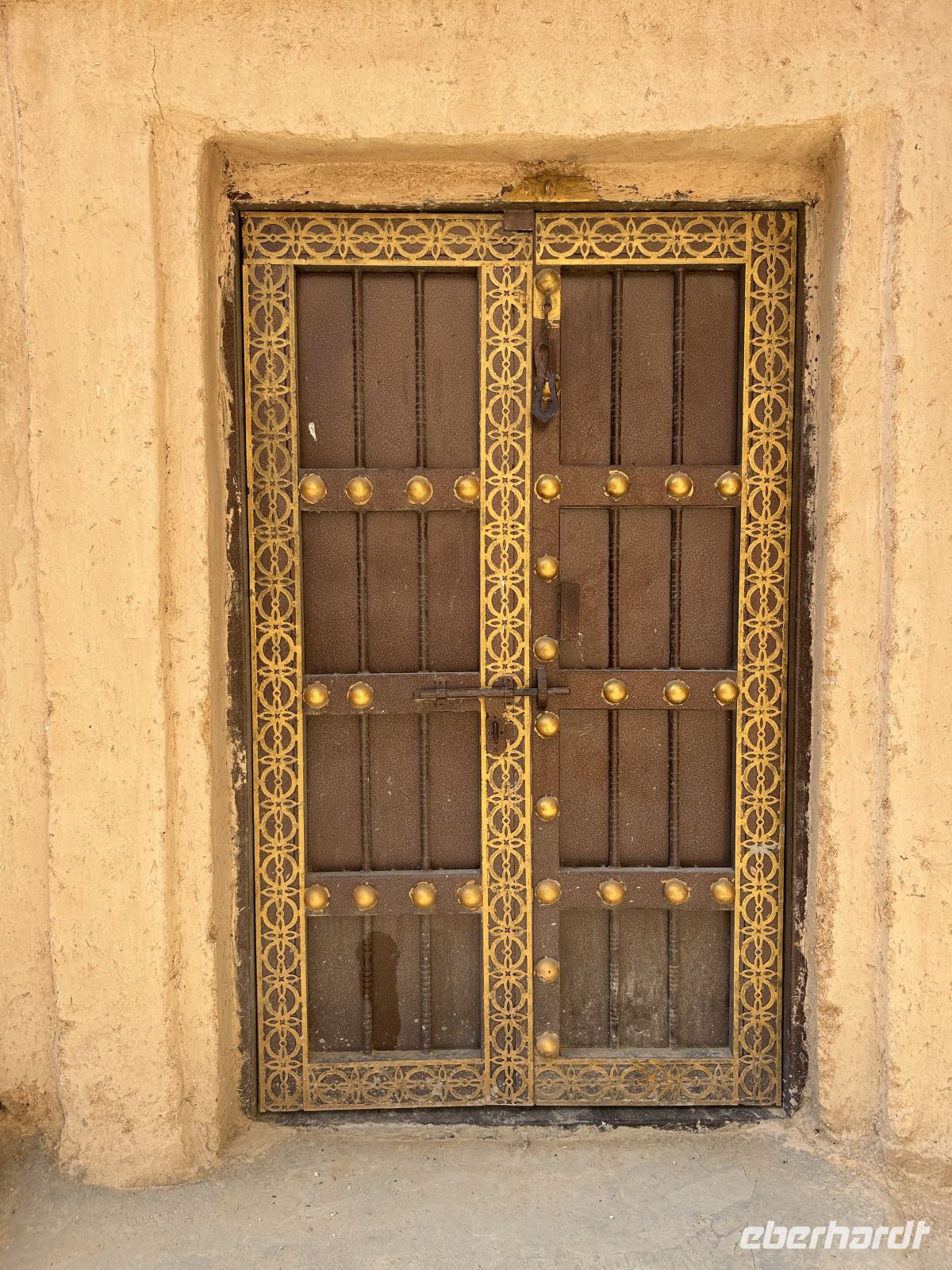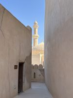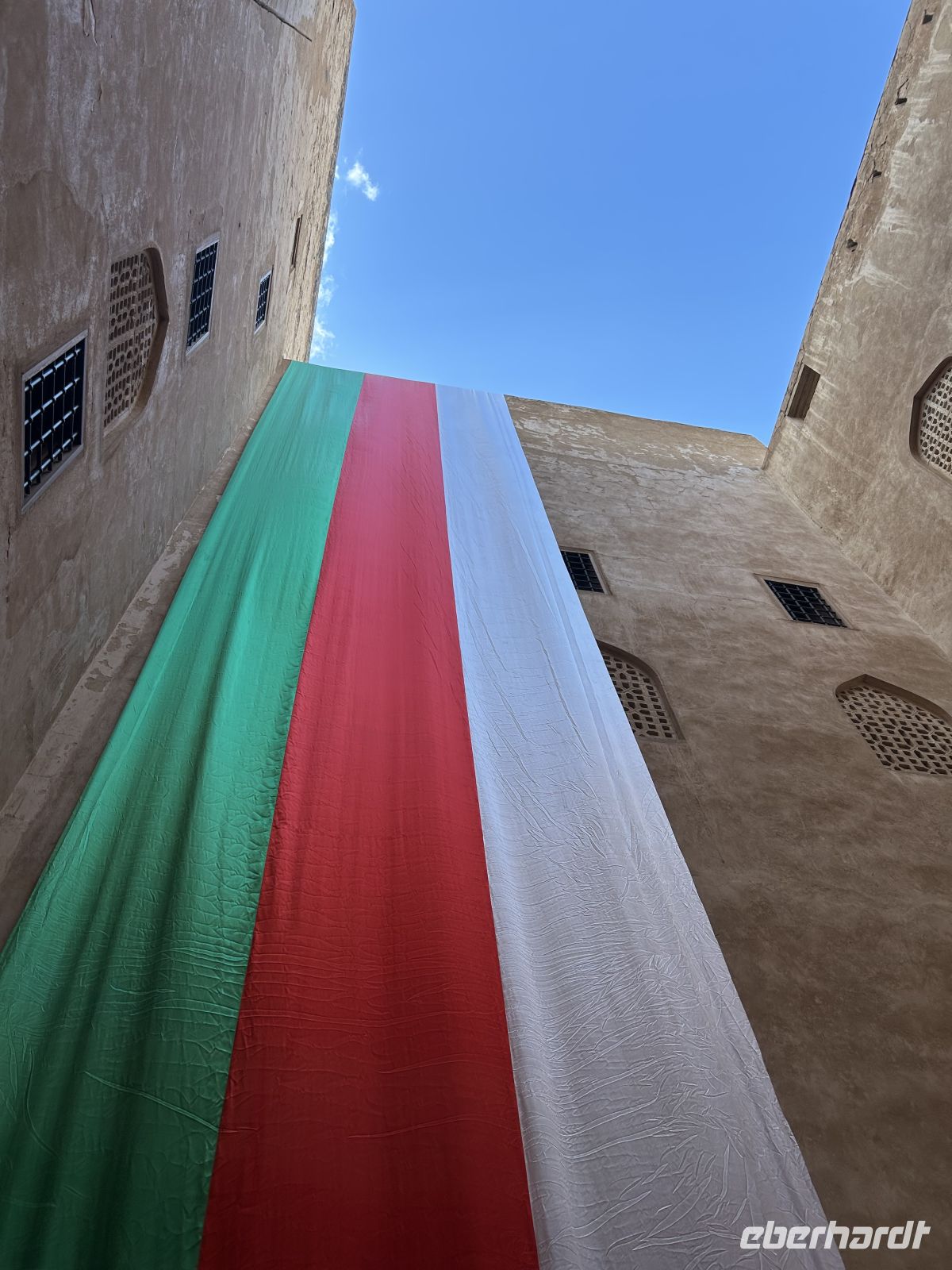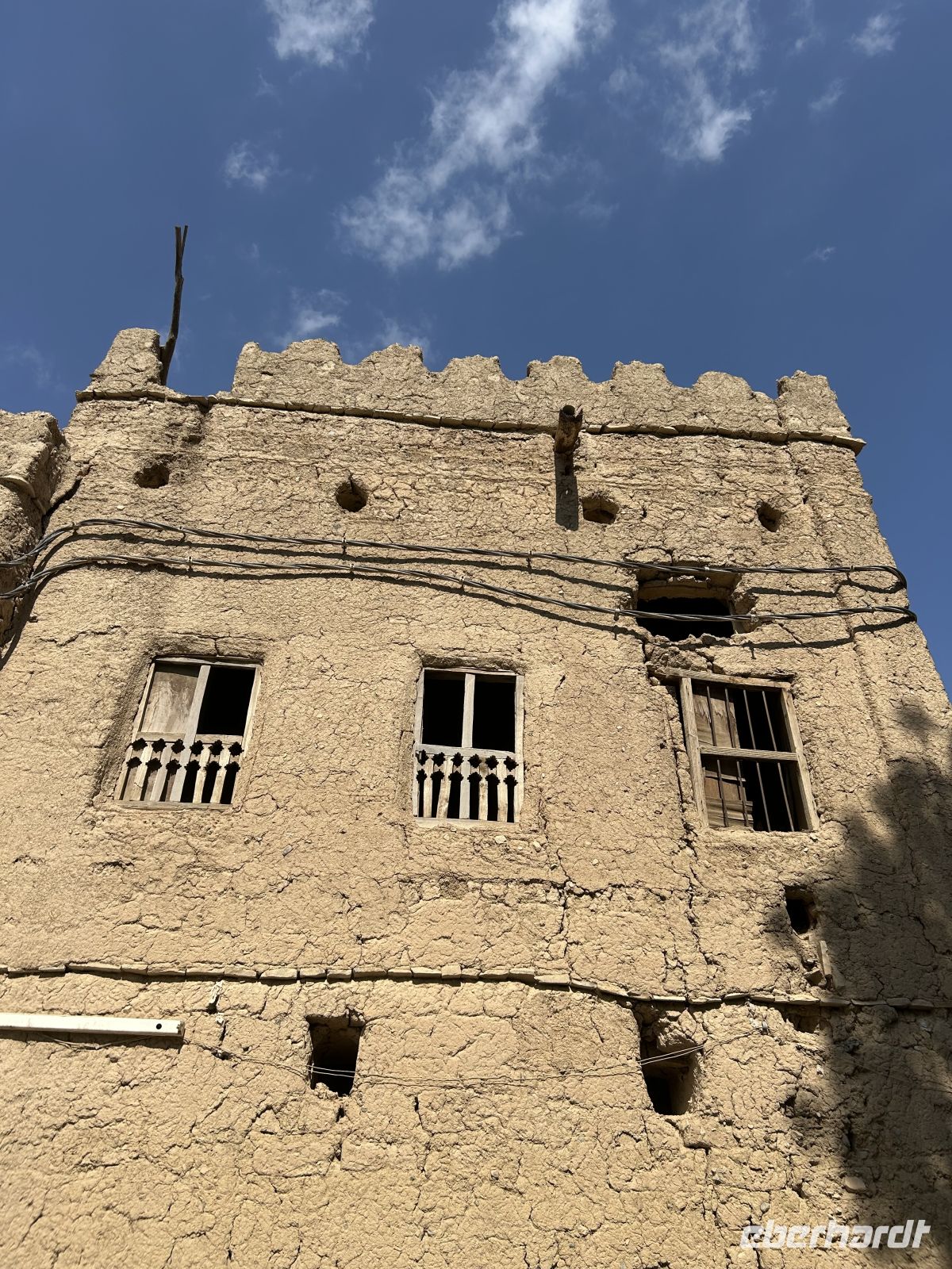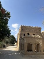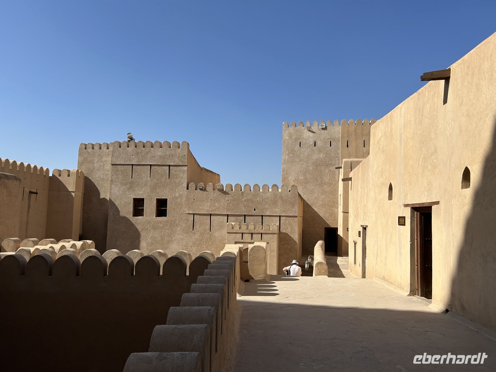 Weiter geht’s nach Al Hamra. Von einem Aussichtspunkt blicken wir über die Oase: tausende Dattelpalmen, dahinter die historische Lehmsiedlung – ein Bild wie von einer Postkarte. Beim Spaziergang durch das alte Zentrum, dessen Häuser vor wenigen Jahrzehnten noch bewohnt waren, spüren wir Geschichte auf Schritt und Tritt.