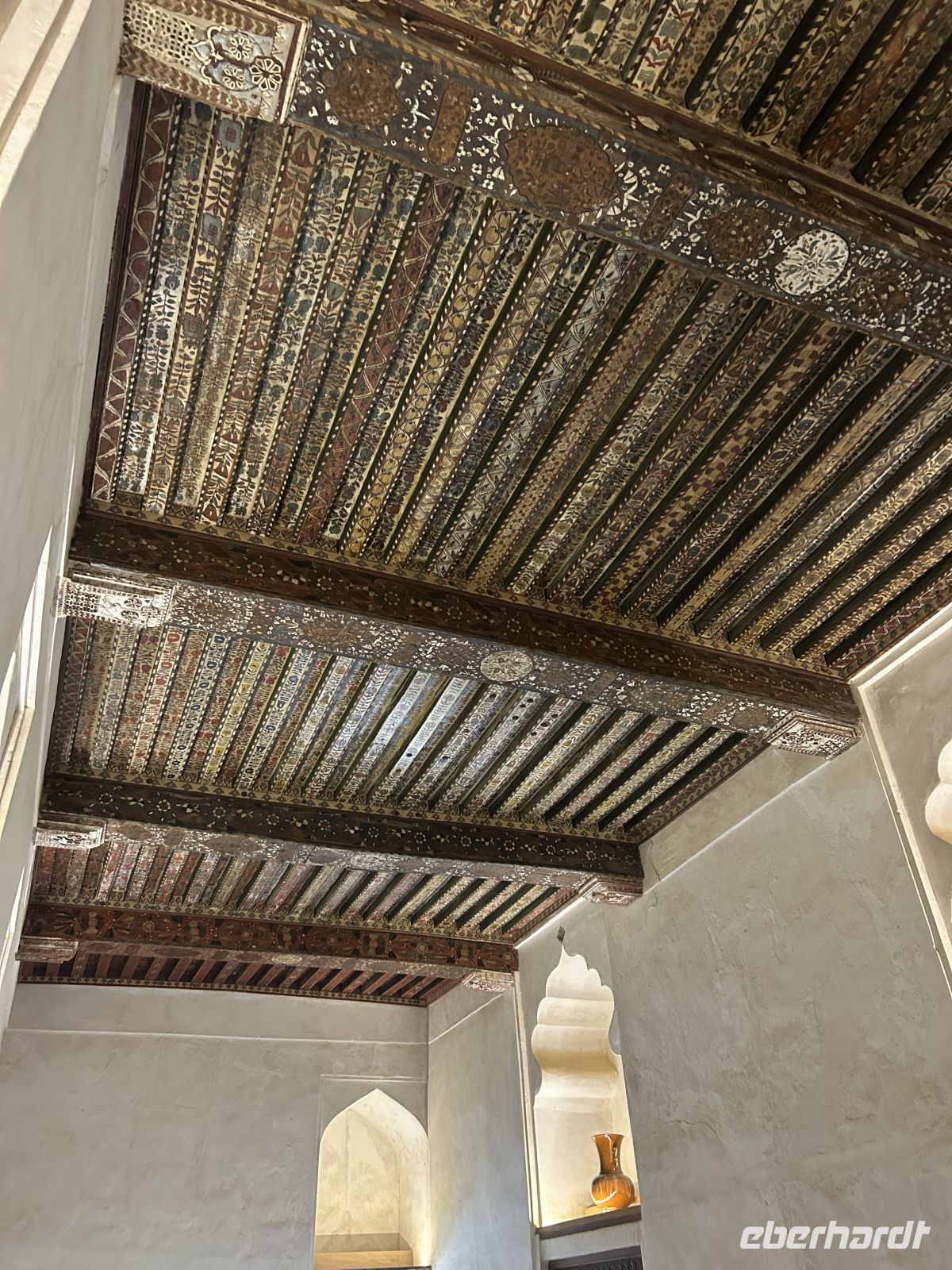 Zum Abschluss besuchen wir das wunderschöne Schloss Jabreen, dessen kunstvoll bemalte Decken, feinen Holzarbeiten und hellen Innenhöfe uns in eine andere Zeit versetzen. Während wir durch die Räume wandern, haben unsere Fahrer die Jeeps wieder auf Hochglanz gebracht.