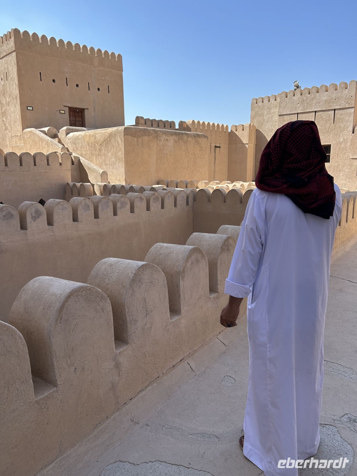 Gut gestärkt fahren wir weiter zu einem Aussichtspunkt über Bahla, dessen mächtige Festung als UNESCO-Weltkulturerbe gilt. Von hier aus wirkt sie wie eine sandfarbene Krone über der Stadt.