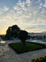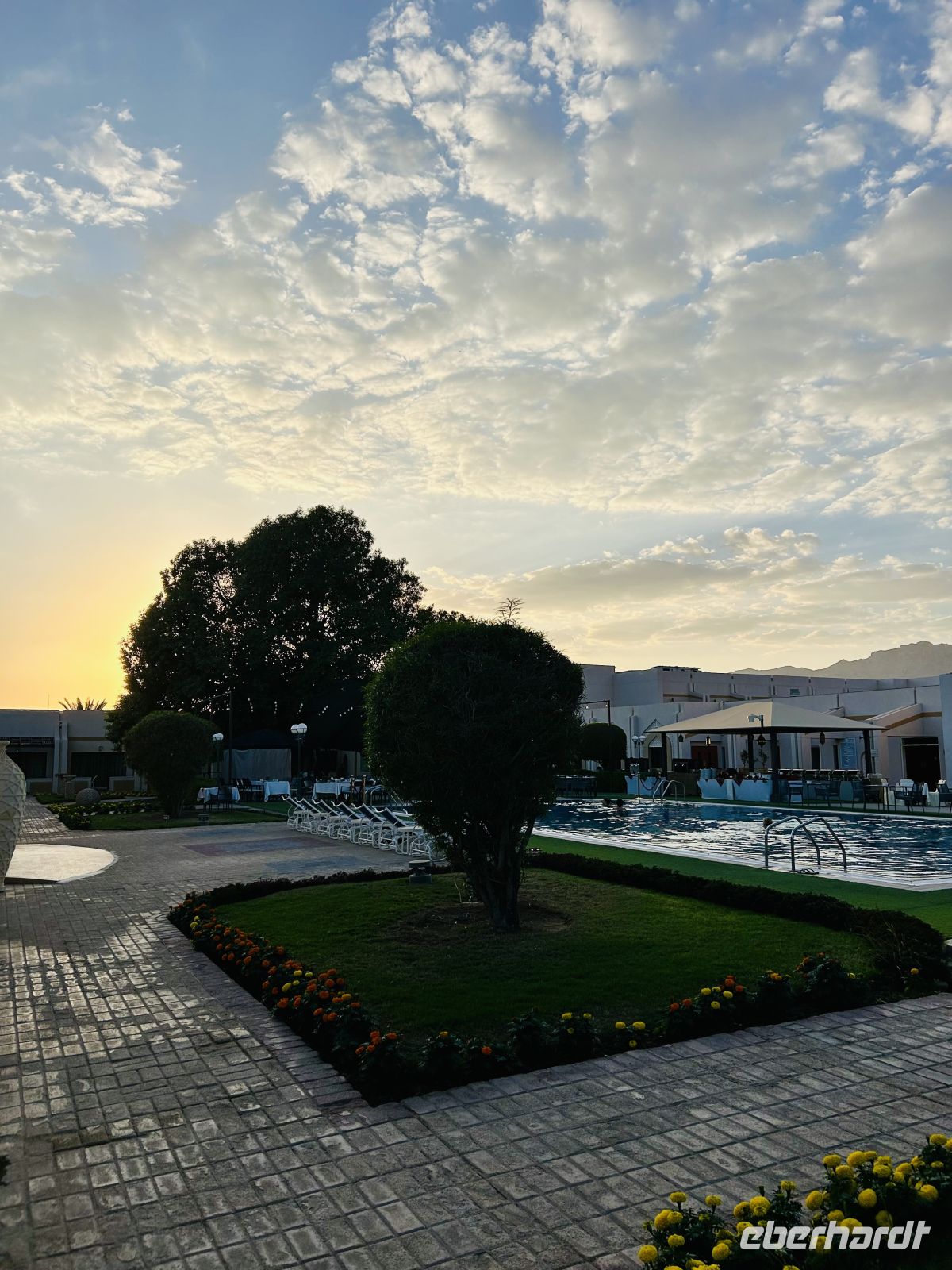 Mit frisch geputzten Fahrzeugen geht es zum Golden Tulip Nizwa, wo der Tag entspannt am Pool ausklingt – bei gutem Essen, angeregten Gesprächen und dem Gefühl, heute wieder ein Stück omanische Seele entdeckt zu haben.