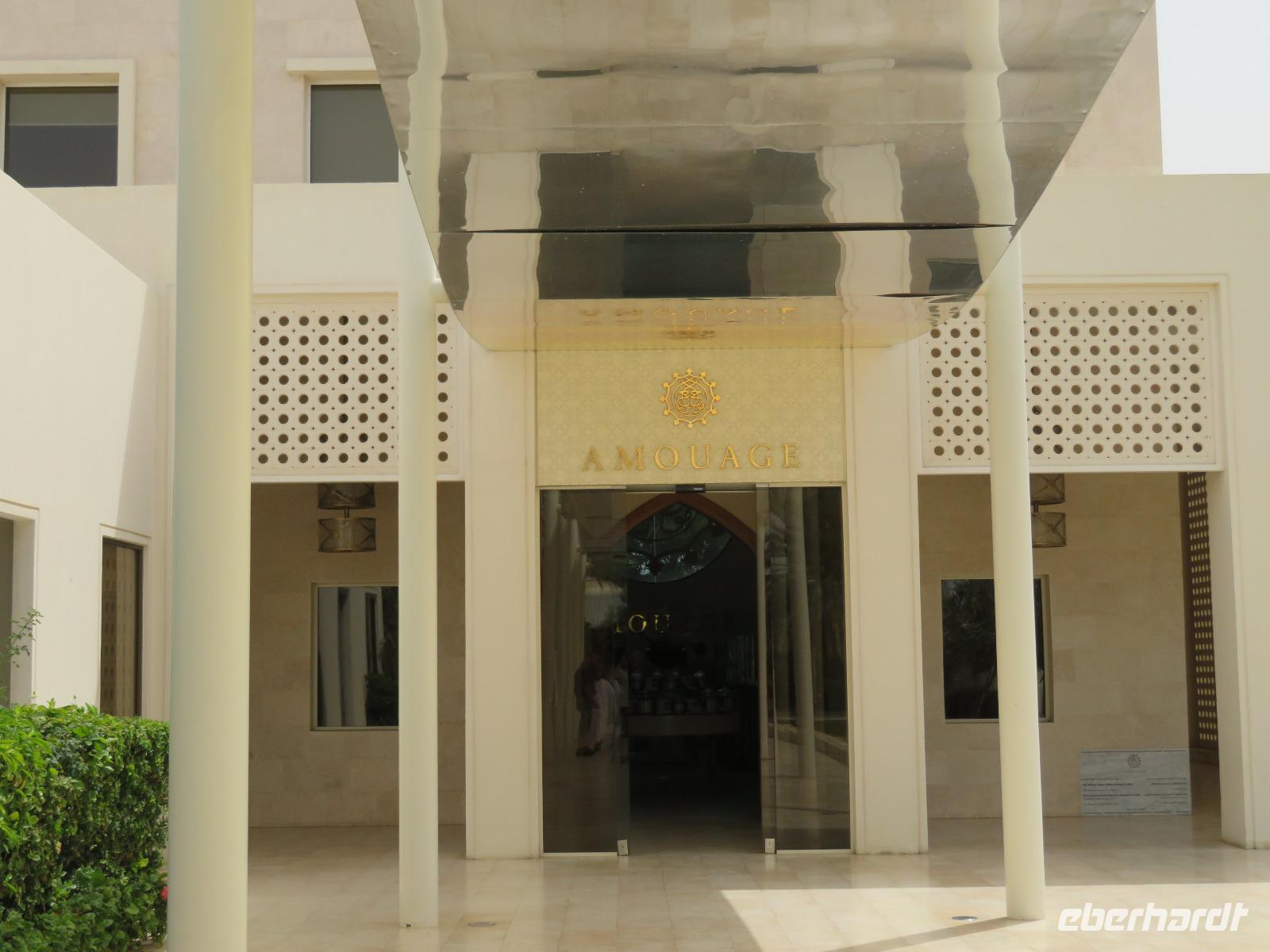 Nach einem gemütlichen Frühstück und der Begrüßung von Daniela, die am Vortag aus Zürich angereist ist warten Toto und unsere omanischen Jeep-Chauffeure Amarr, Machmoud und Omar auf uns. Schnell noch einige Euronen in Rial umgerubelt und unsere Erlebnistour kann starten. Das teuerste Parfüm der Welt "Amouage" wartet auf uns. Die Fabrik, in welcher dieses hergestellt und verkauft wird befindet sich in Muscat. Wir sehen historische und moderne Destillationsanlagen in denen aus natürlichen Stoffen edelste Essenzen hergestellt wurden bzw. werden. Die Rezepte der orientalischen Düfte, die wir auch schnuppern dürfen sind natürlich geheim. In edle Flacons gefüllt, die für Herren ziert eine Art Krone, die für Frauen die Kuppel einer Moschee, kann das Parfüm dann käuflich erworben werden. Für europäische Näschen gewöhnungsbedürftig...