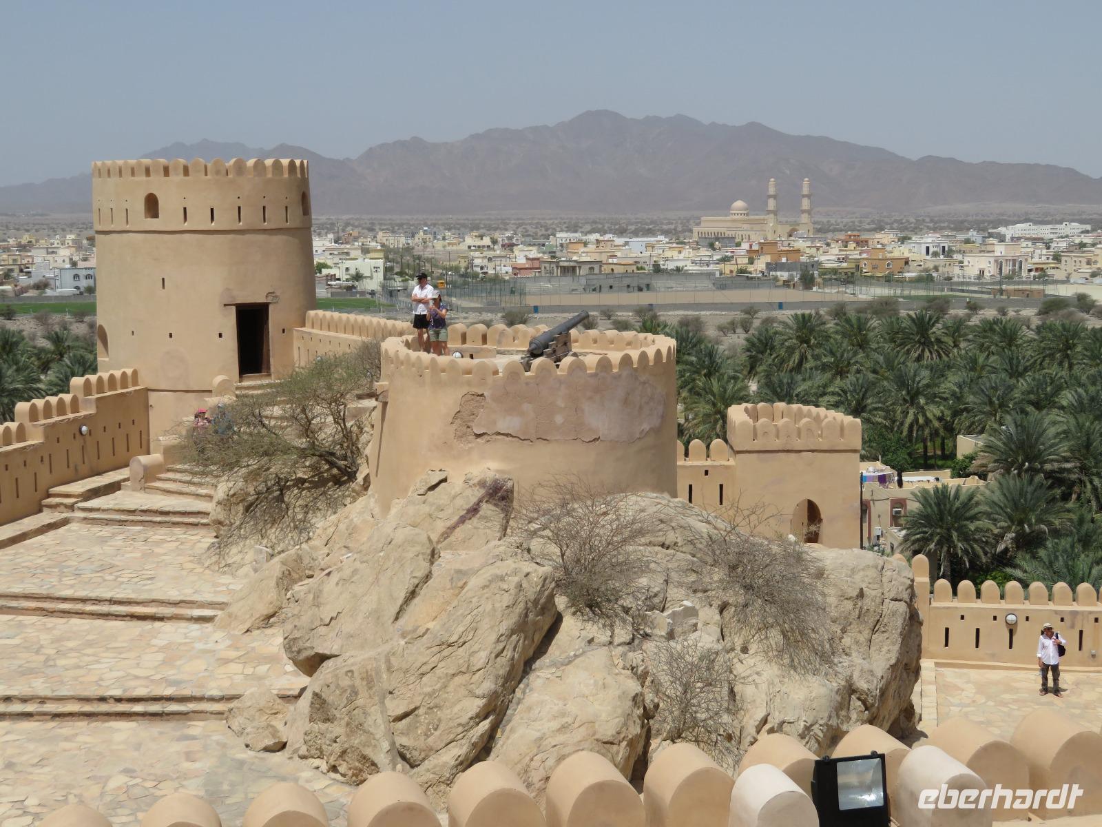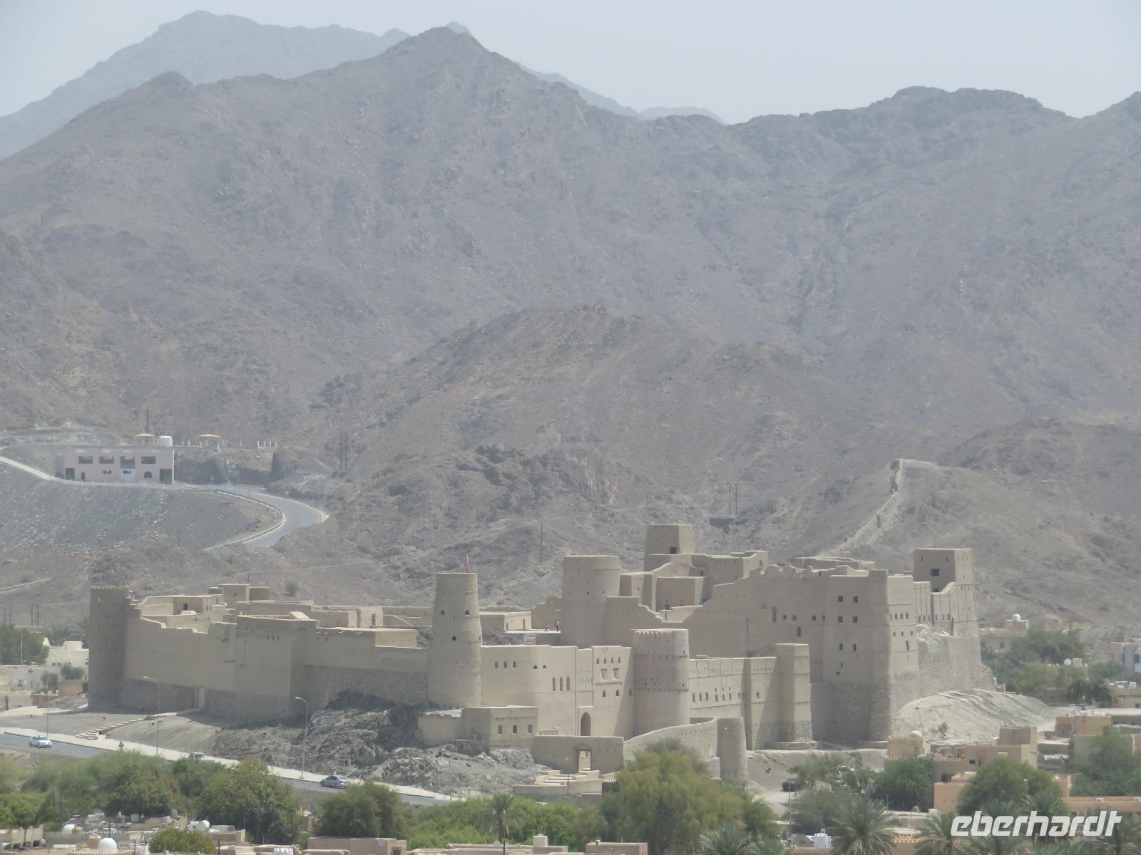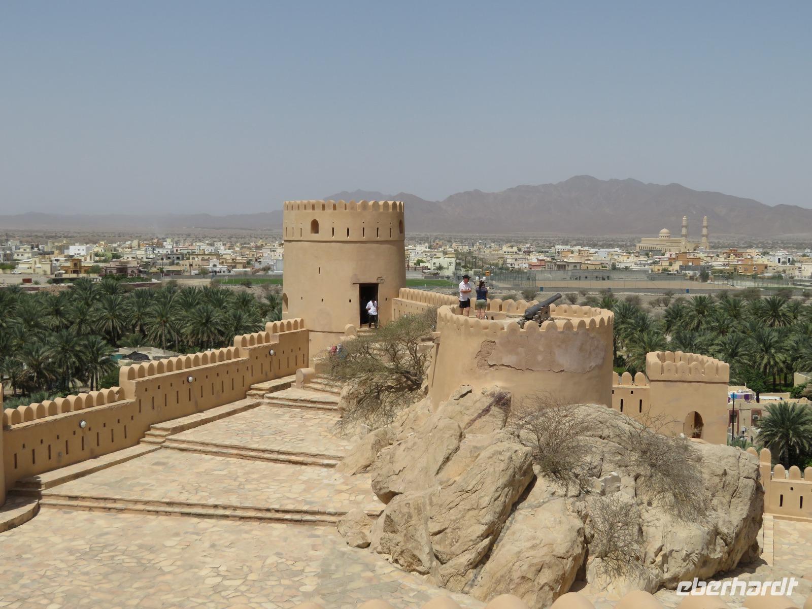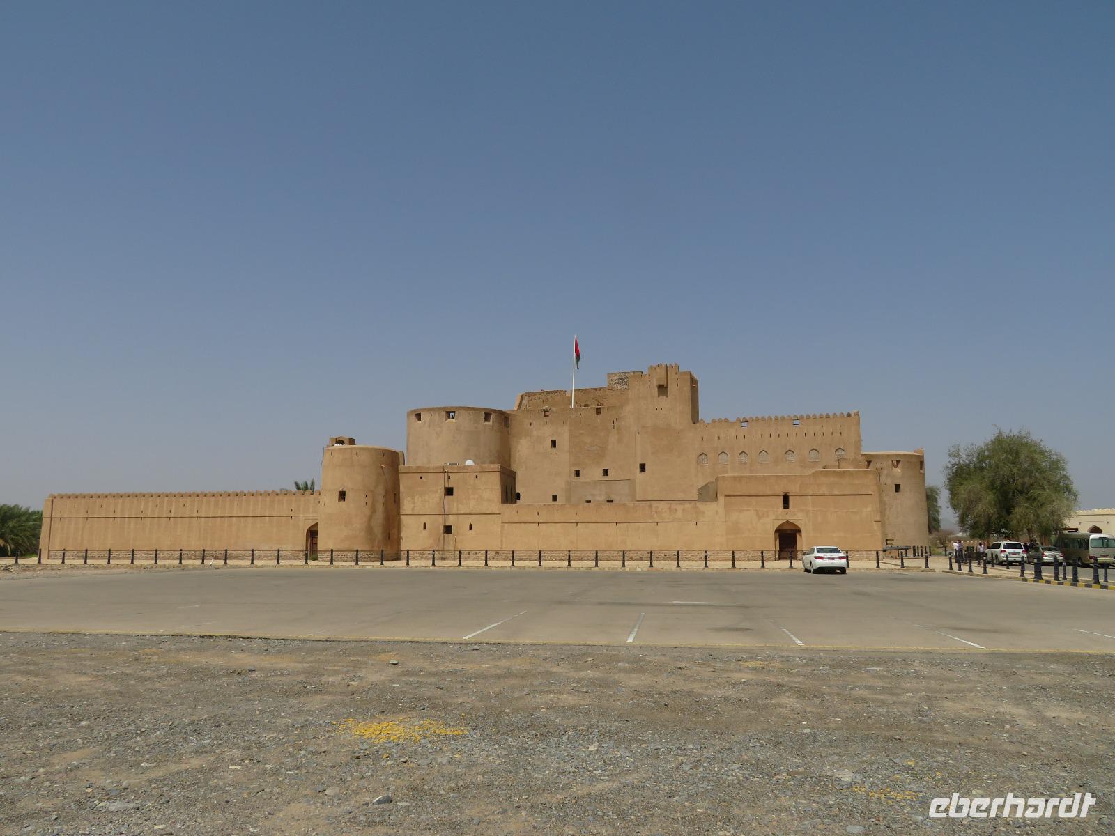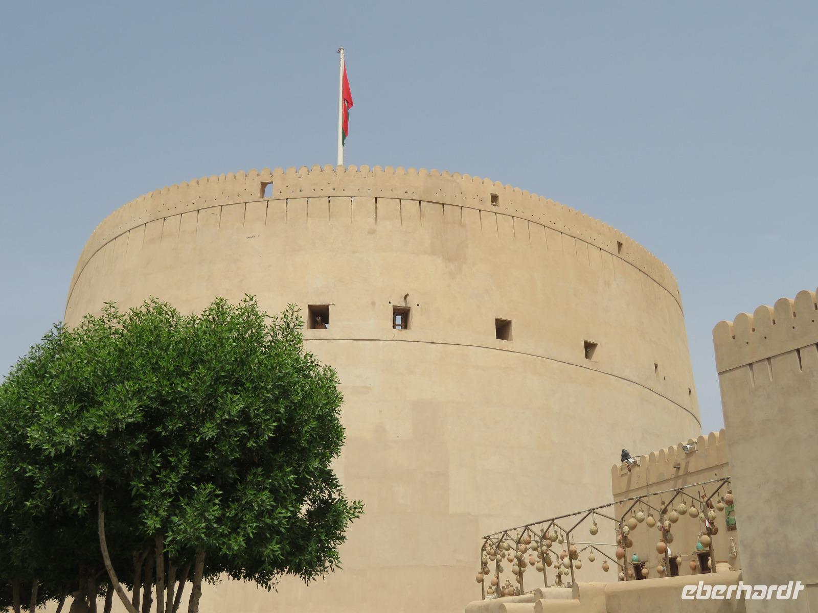 Bei strahlendem Sonnenschein starteten wir zu Schloss Jabrin. Das wie eine Festung wirkende Schloss wurde 1670 unter Bil'arub bin Sultan al- Ya'aruba erbaut, der auch 1688 zum Iman gewählt wurde. Er verlegte die Hauptstadt des Omans nach Nizwa und residierte auf Jarbin. Mit viel Liebe zum Detail wurde es im 20. Jahrhundert restauriert. Das Schloss zeugt von einer hohen handwerklichen Baukunst der damaligen Erbauer, fasziniert durch reiche Ausstattung der Räume mit prachtvoll geschnitzten und bemalten Deckenverzierungen, maurischen Bögen und zeitgenössischem Mobiliar.