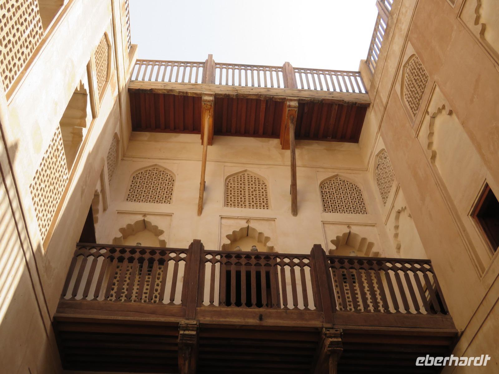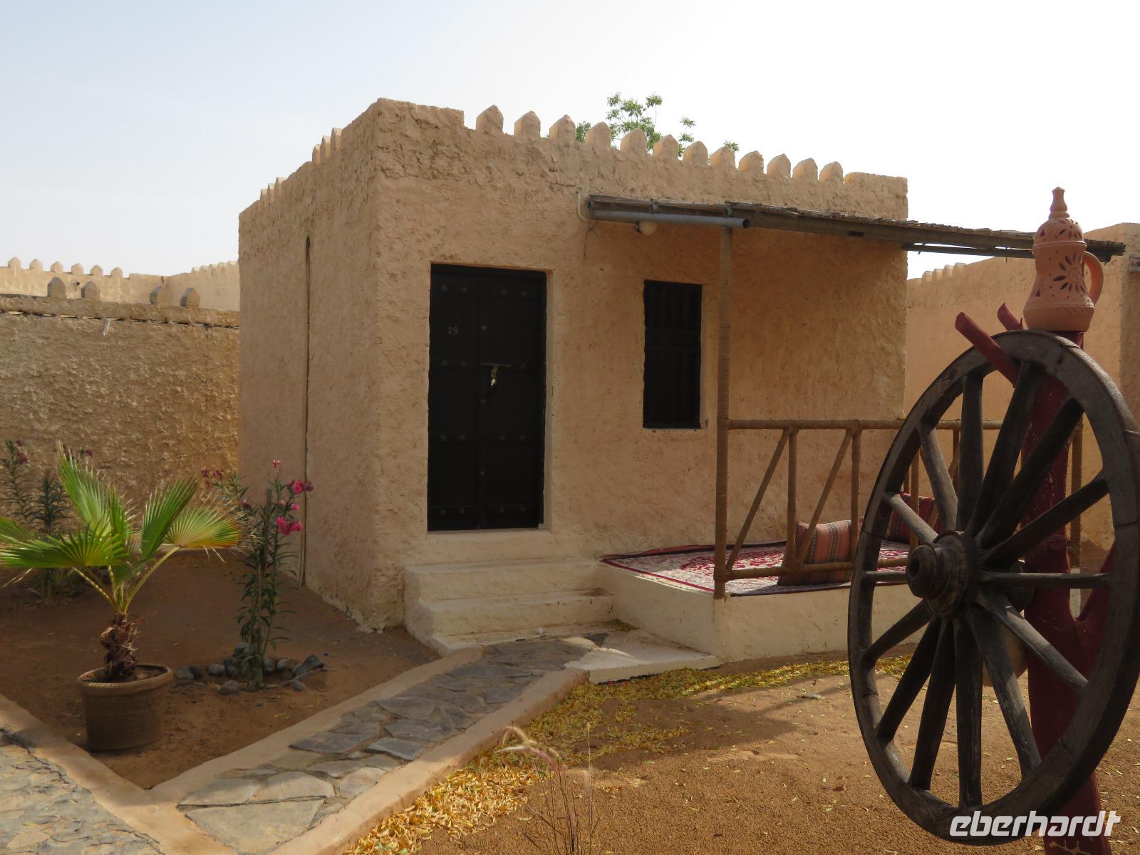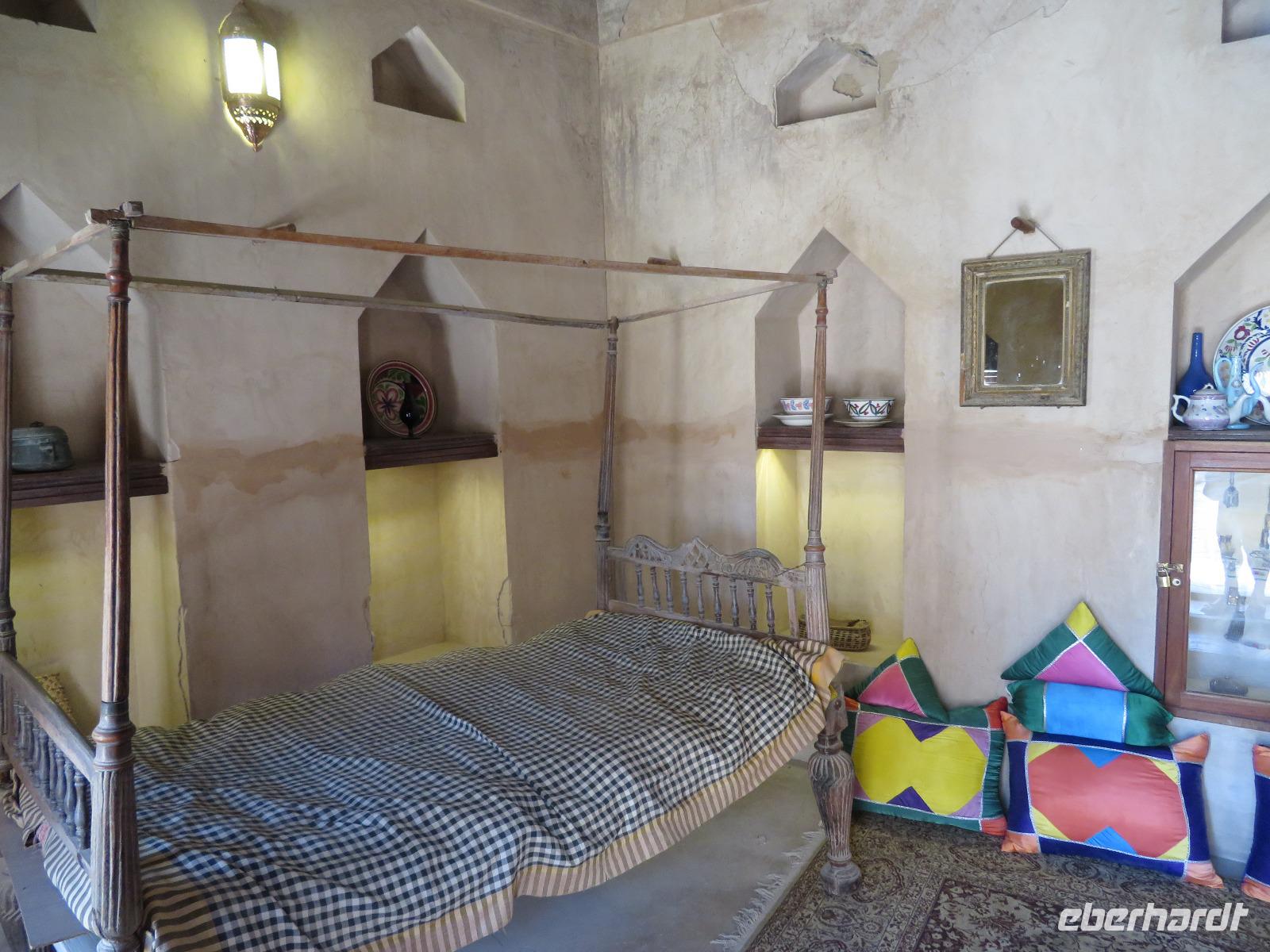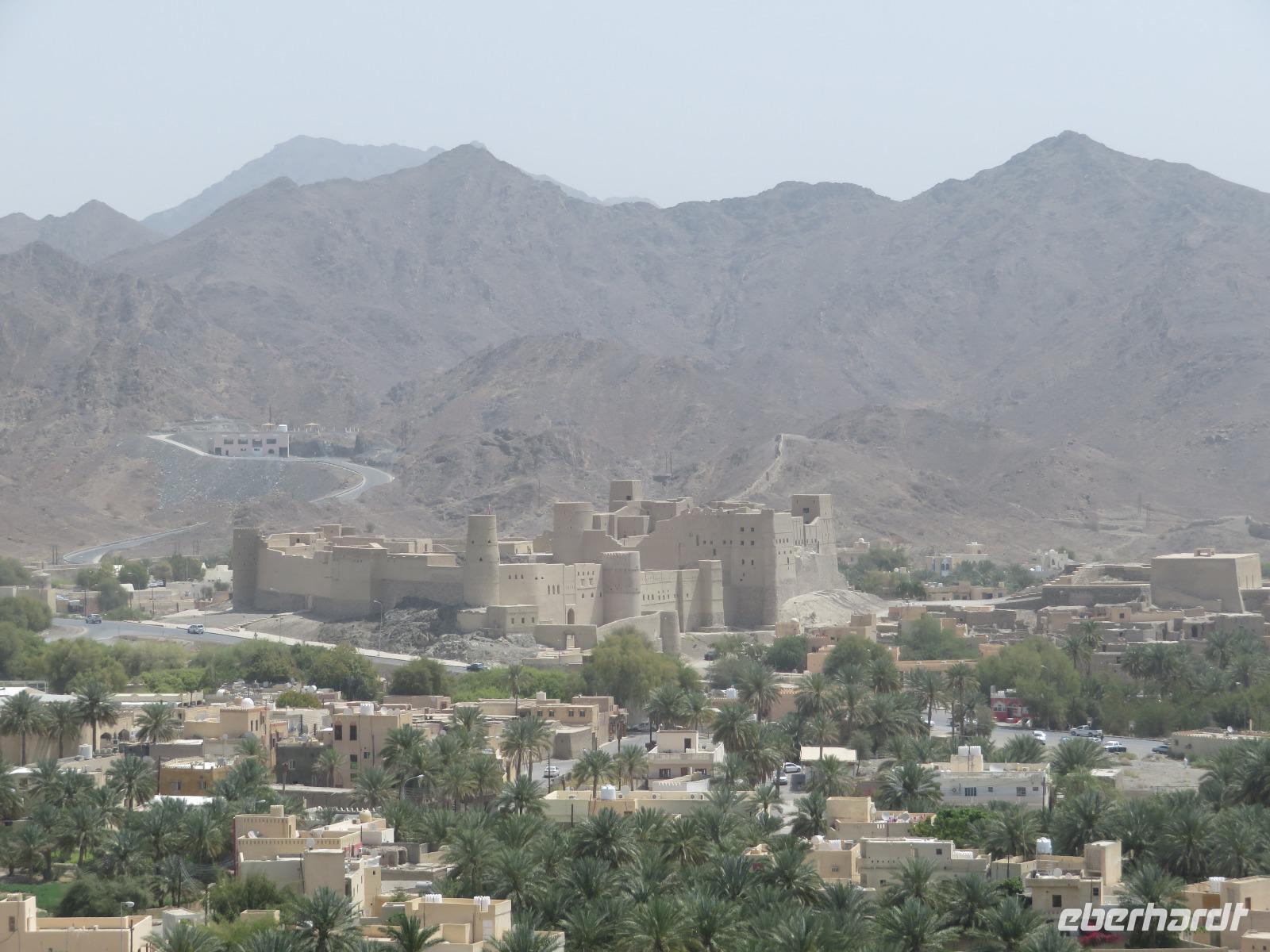 Bei strahlendem Sonnenschein starteten wir zu Schloss Jabrin. Das wie eine Festung wirkende Schloss wurde 1670 unter Bil'arub bin Sultan al- Ya'aruba erbaut, der auch 1688 zum Iman gewählt wurde. Er verlegte die Hauptstadt des Omans nach Nizwa und residierte auf Jarbin. Mit viel Liebe zum Detail wurde es im 20. Jahrhundert restauriert. Das Schloss zeugt von einer hohen handwerklichen Baukunst der damaligen Erbauer, fasziniert durch reiche Ausstattung der Räume mit prachtvoll geschnitzten und bemalten Deckenverzierungen, maurischen Bögen und zeitgenössischem Mobiliar.