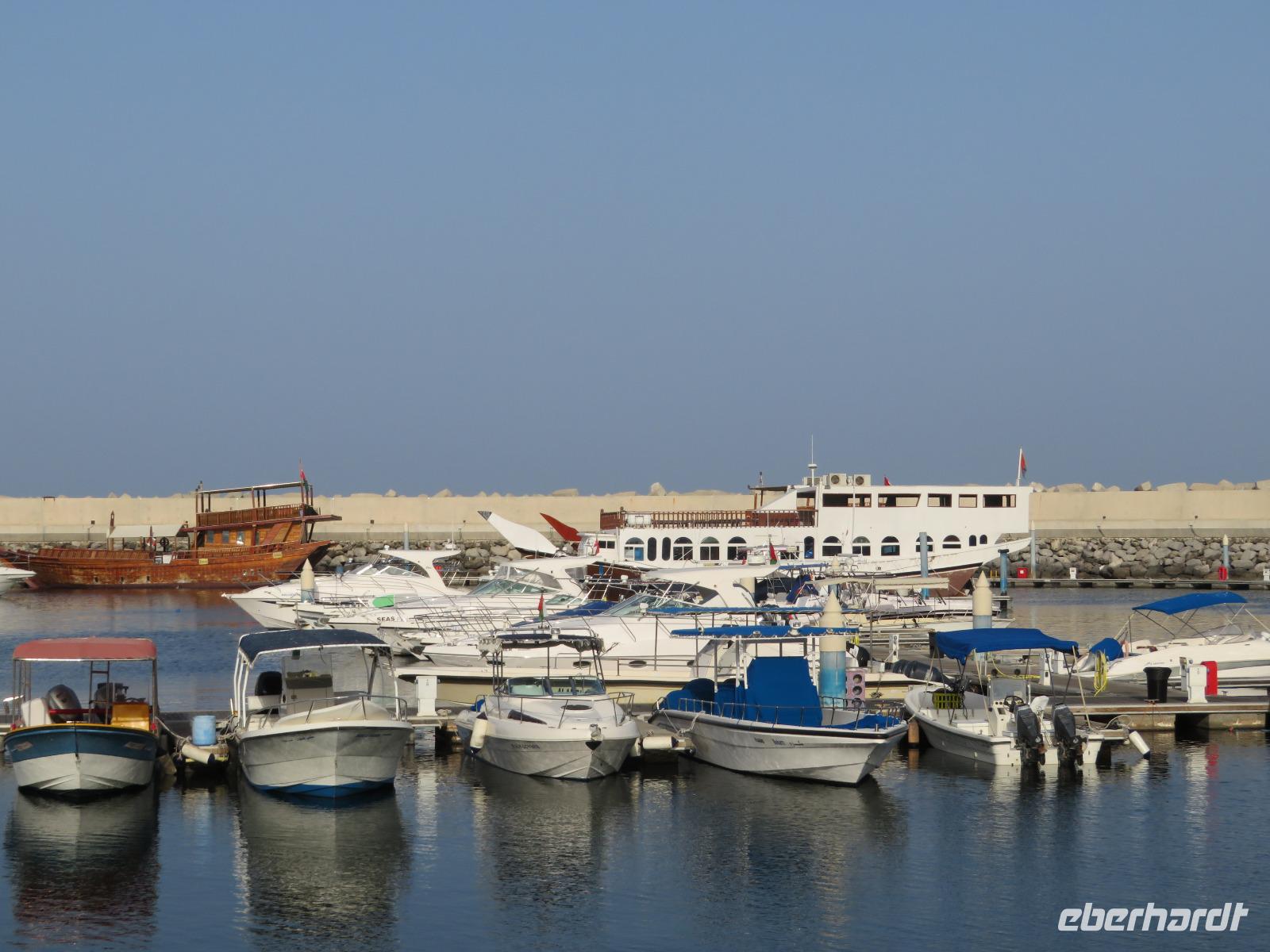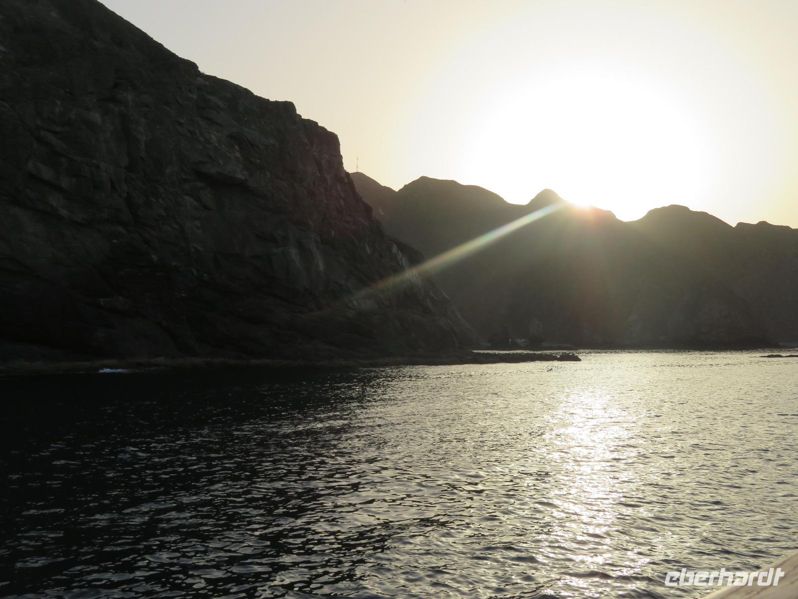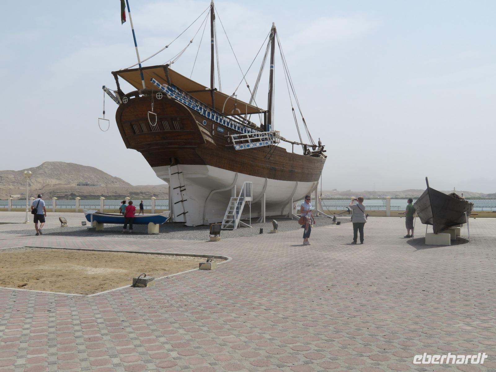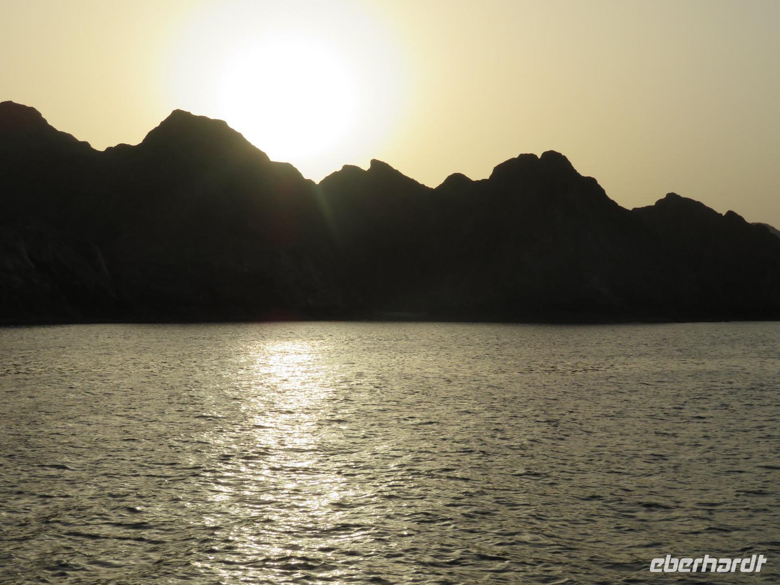 Am späten Nachmittag führt unser Weg in die Marina von Muscat. Wir besteigen eine alte traditionelle Dhau. Auf ihr erleben wir eine wunderschöne Fahrt entlang der Küste zum Sonnenuntergang. Wir sehen die alten Forts der Portugiesen, den Sultanspalast und die Yachten des Sultans vor der Altstadt. Während der gemütlichen Tour genießen wir das Meer, einen fantastischen Sonnenuntergang, knabbern Datteln und schlürfen omanischen Kaffee.