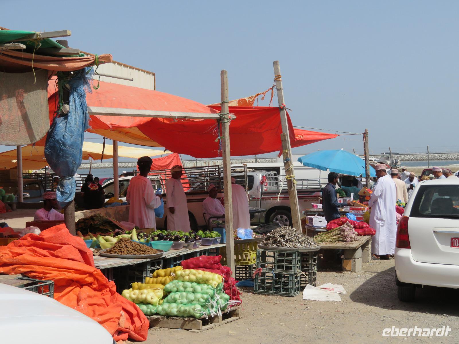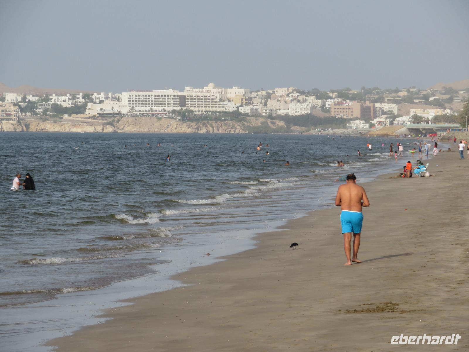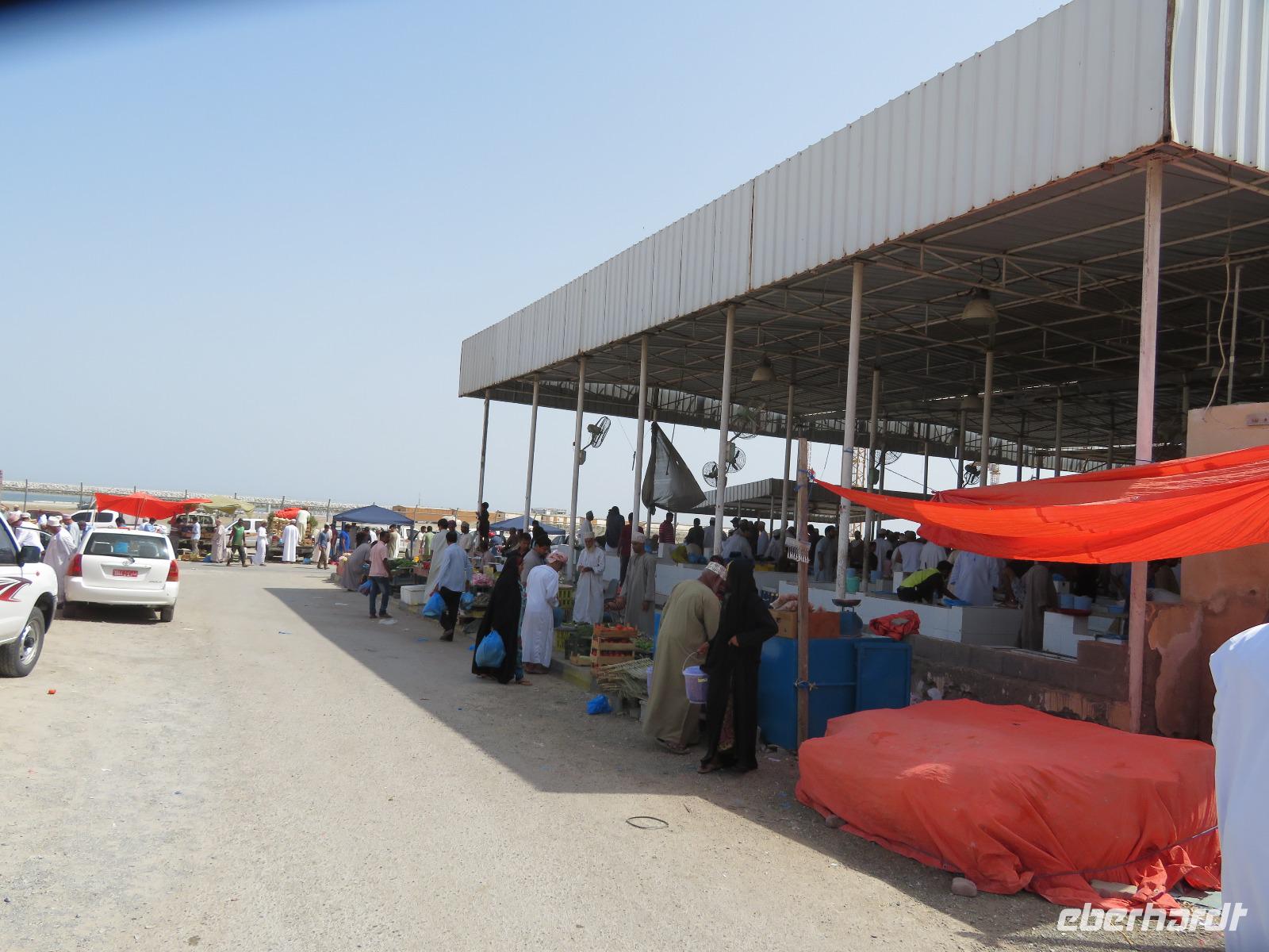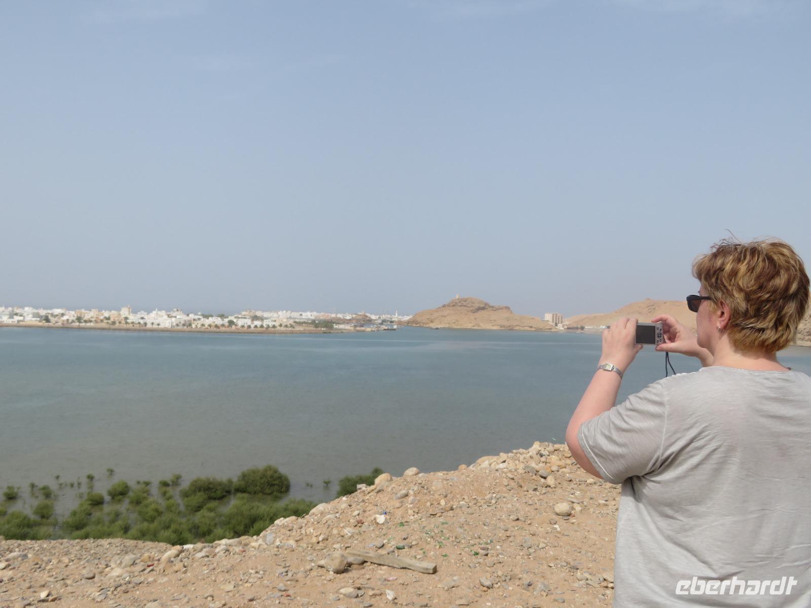 Anschließend geht es in die Altstadt von Muscat, erst zum neuerbauten Fischmarkt im Hafen und zum berühmten Muttrah Souk. Wir spazieren durch den Markt mit seinem bunten Treiben. Von Tawfik werden wir in das Geheimnis des Weihrauchs eingeführt. Weihrauch ist nämlich nicht gleich Weihrauch. Ein gutes Stück der Räucherware kann locker ca. 30 € kosten. Andere orientalische Düfte, Krummdolche, Silberschmuck und exotische Kleidung zogen uns ebenfalls in ihren Bann. Von der Küstenstraße aus konnte man im Hafen die