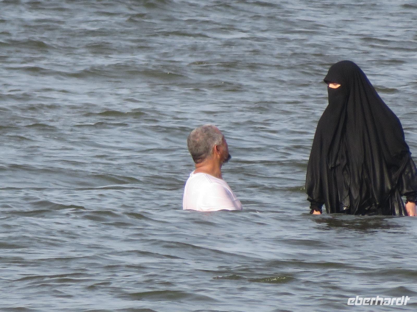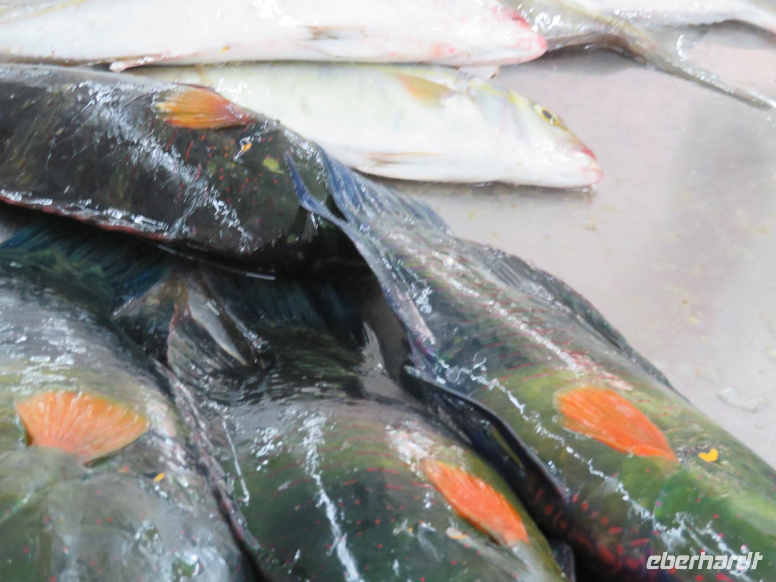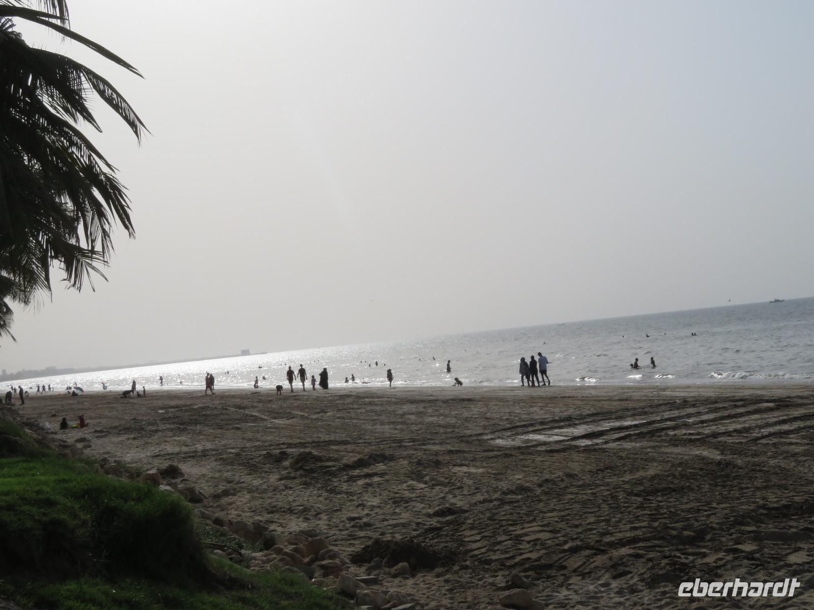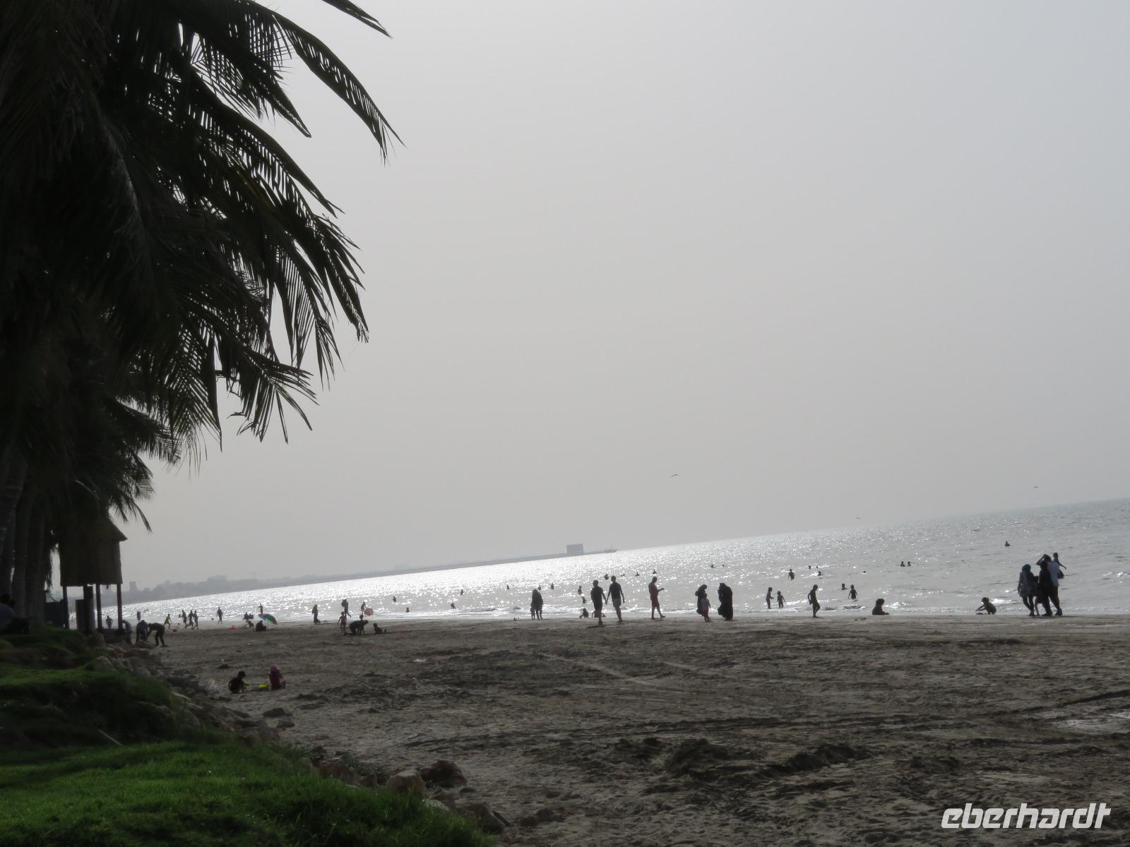 Anschließend geht es in die Altstadt von Muscat, erst zum neuerbauten Fischmarkt im Hafen und zum berühmten Muttrah Souk. Wir spazieren durch den Markt mit seinem bunten Treiben. Von Tawfik werden wir in das Geheimnis des Weihrauchs eingeführt. Weihrauch ist nämlich nicht gleich Weihrauch. Ein gutes Stück der Räucherware kann locker ca. 30 € kosten. Andere orientalische Düfte, Krummdolche, Silberschmuck und exotische Kleidung zogen uns ebenfalls in ihren Bann. Von der Küstenstraße aus konnte man im Hafen die