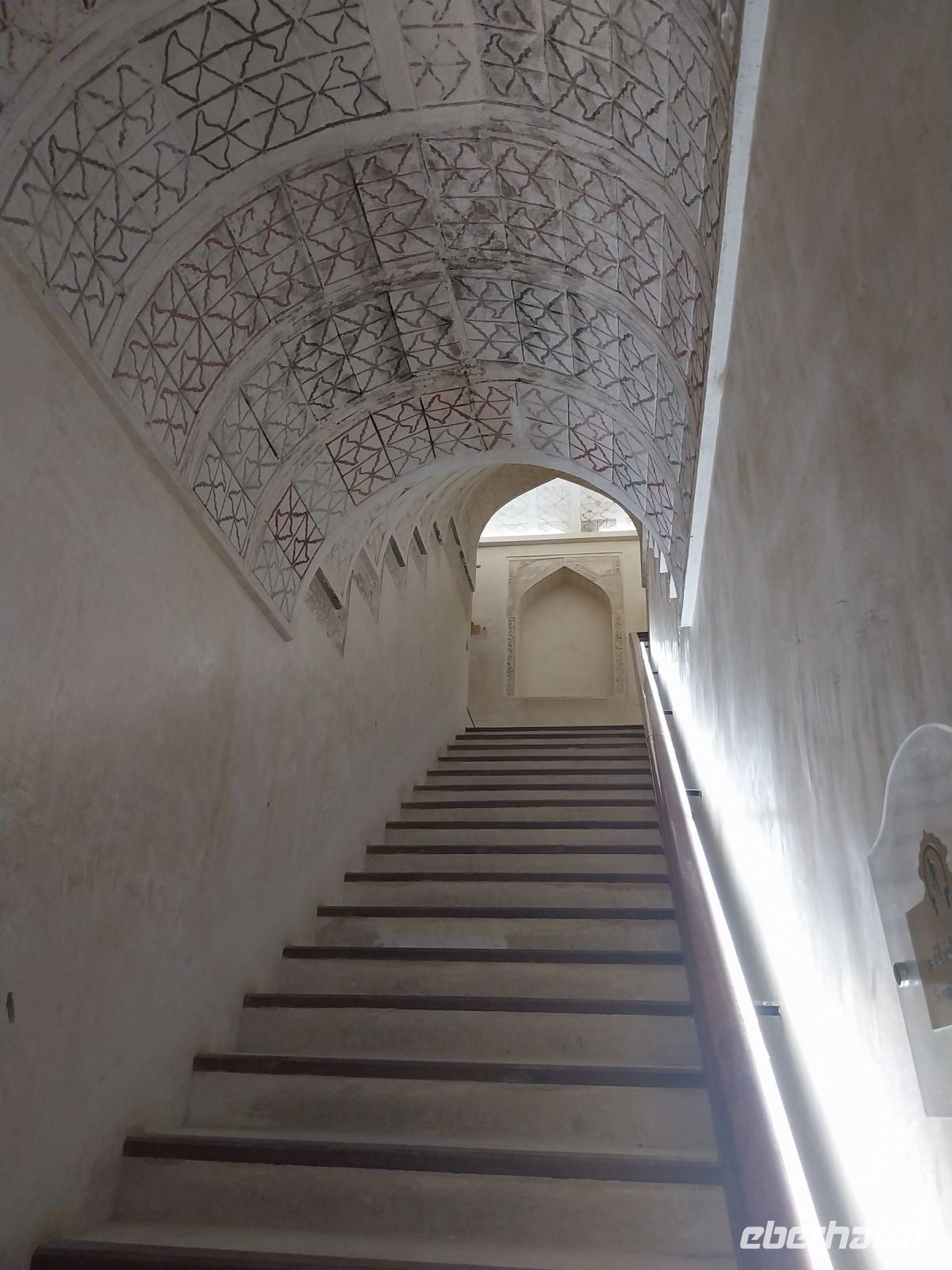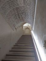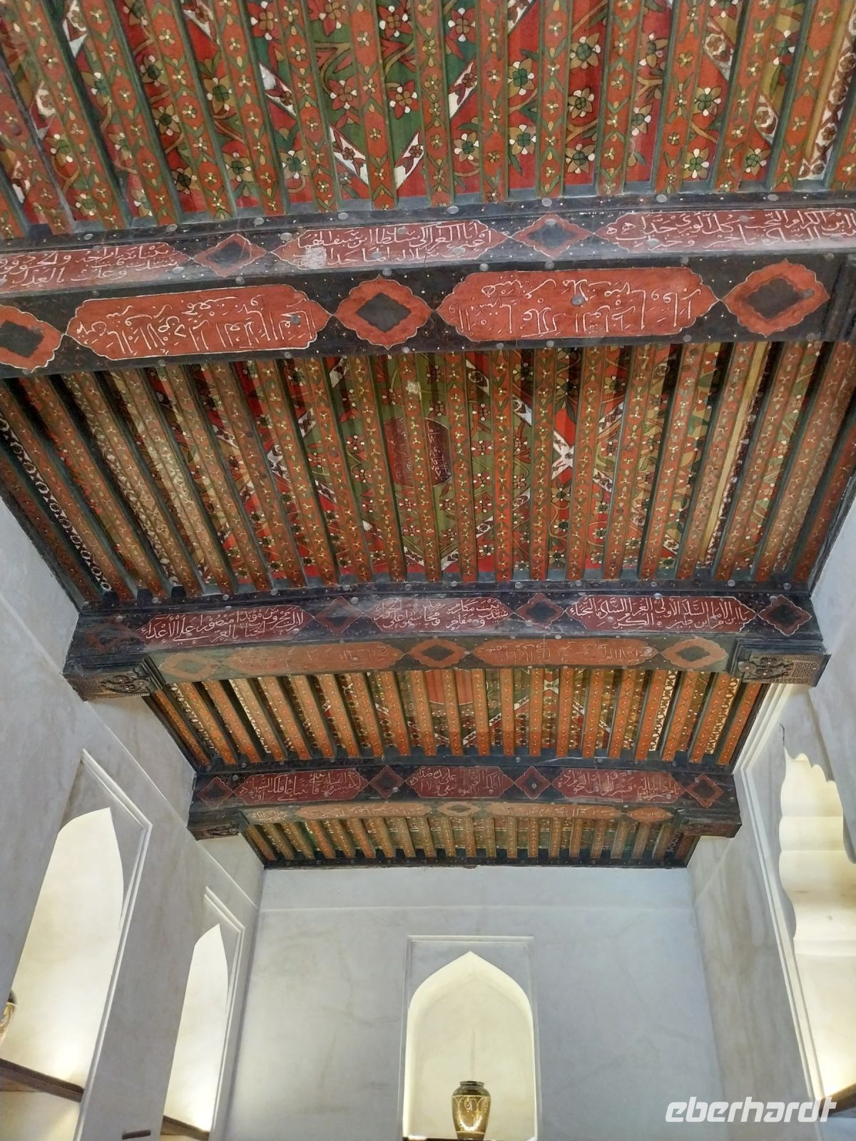 Weiter geht es zum Schloss Jabrin, wo wir uns zunächst bei einem Picknick stärken. Anschließende besichtigen wir die interessantesten Teile des Forts wie die Küche, das Dattellager, Empfangsräume mit bemalten decken voller Blumenmotive u. a. m. Schließlich können wir von der Dachterrasse des Schlosses einen tollen Ausblick auf die mächtigen Berge des Felsengebirges genießen. Während unserer Besichtigung gehen einige aus der Gruppe verloren, aber auch sie finden schließlich den Ausgang ??