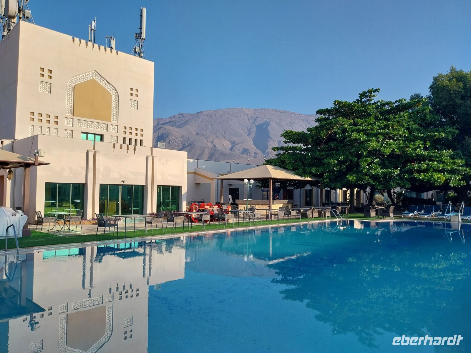 Bis zur Abfahrt unserer Dhau haben wir eine Kaffeepause im luxuriösen Al bustan Hotel (Ritz Carlton).