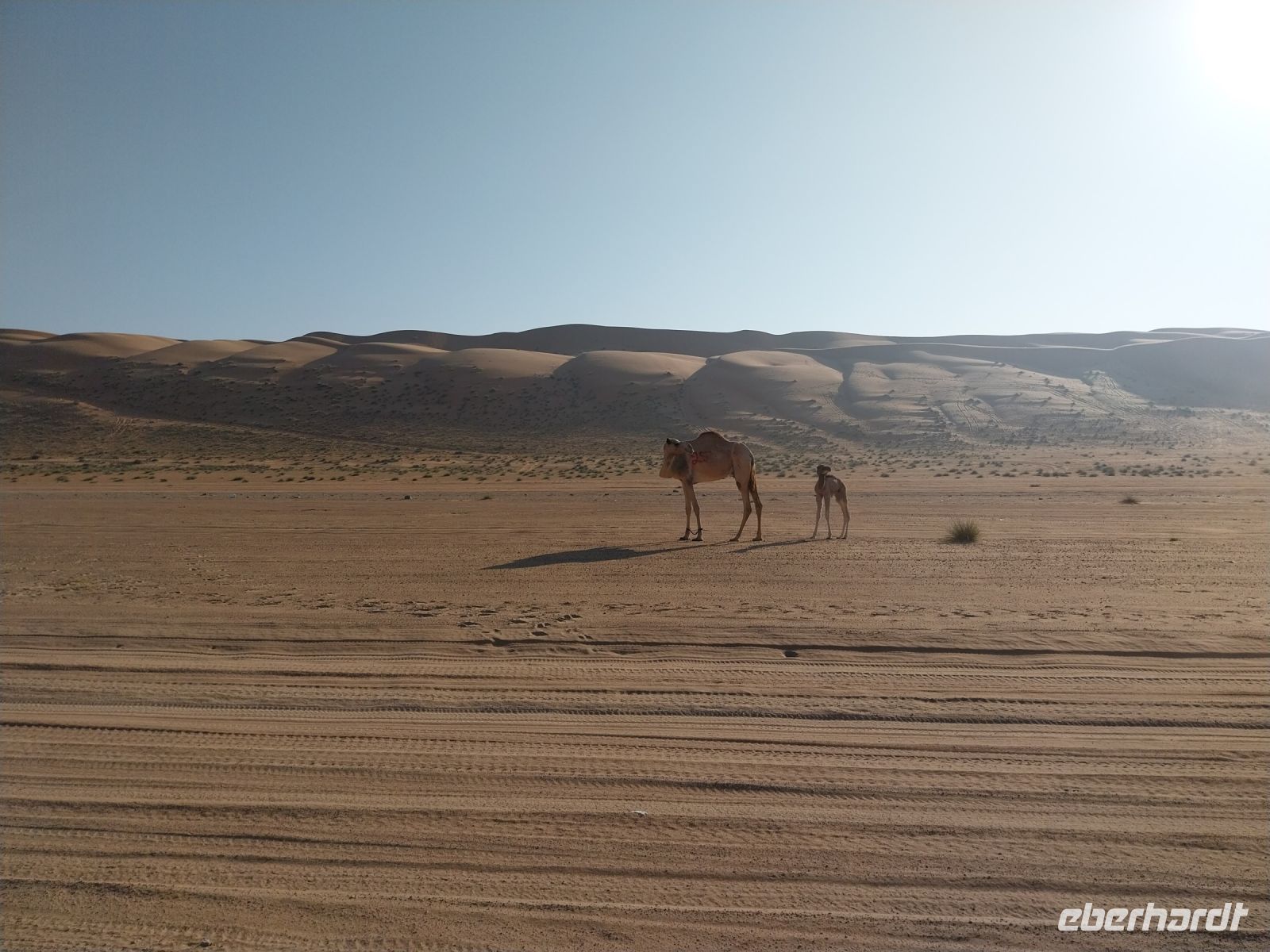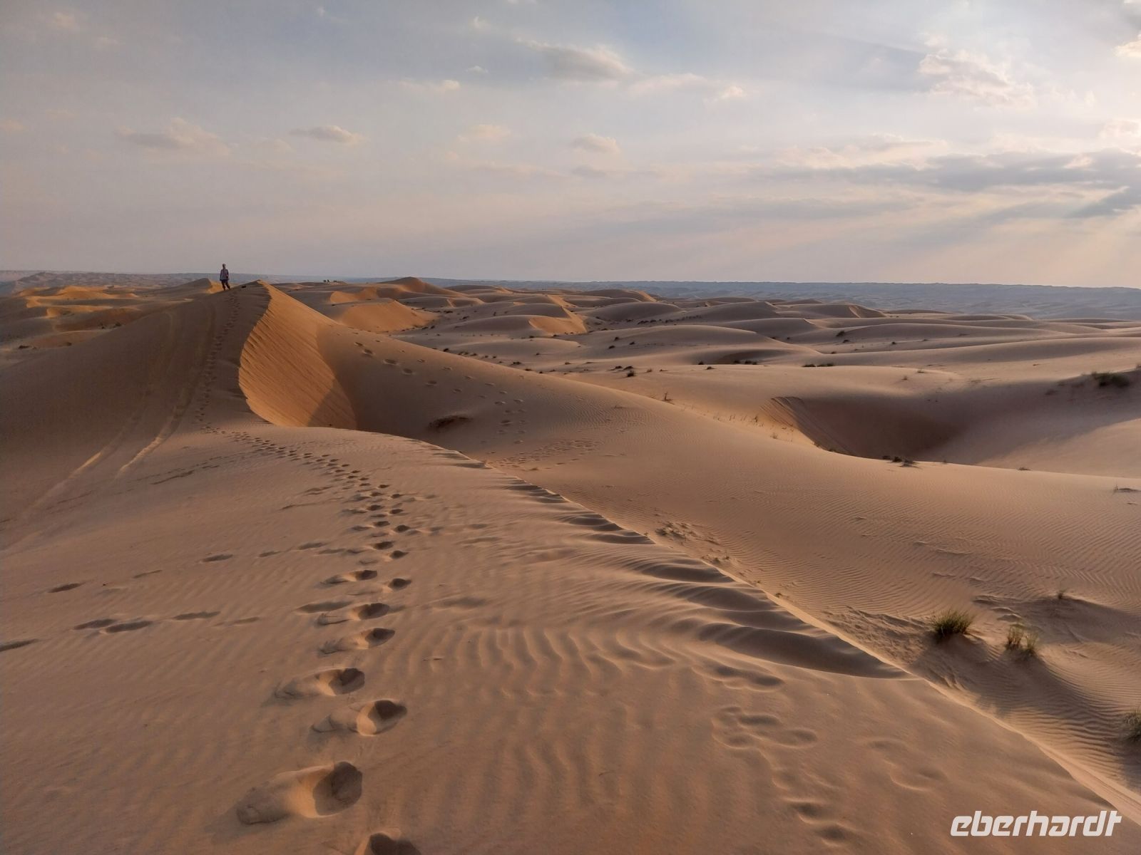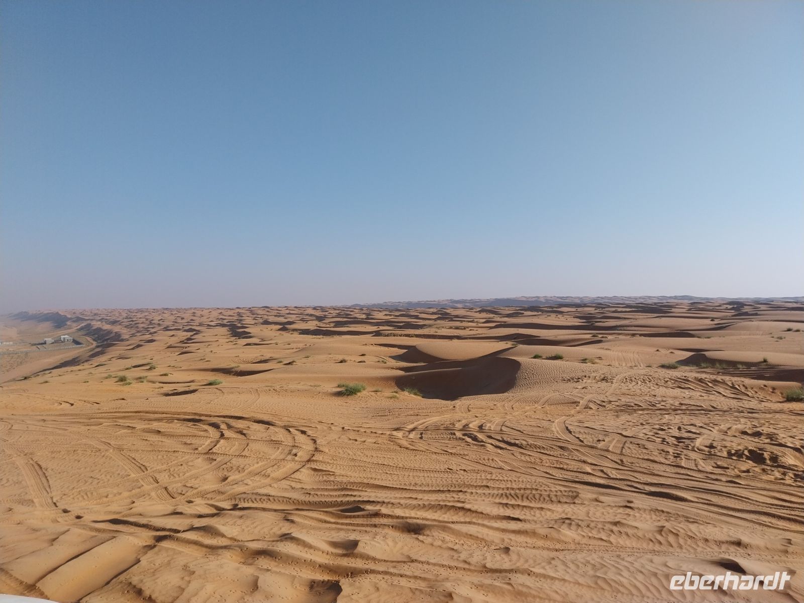 Es geht zurück in die Ebene und mittags befinden wir uns schon am Rande der Sandwüste Wahiba Sands. Zum Mittagessen sind in Bidiya in einem Restaurant. Es gibt Reis mit Hühnchen und Königsmakrele.