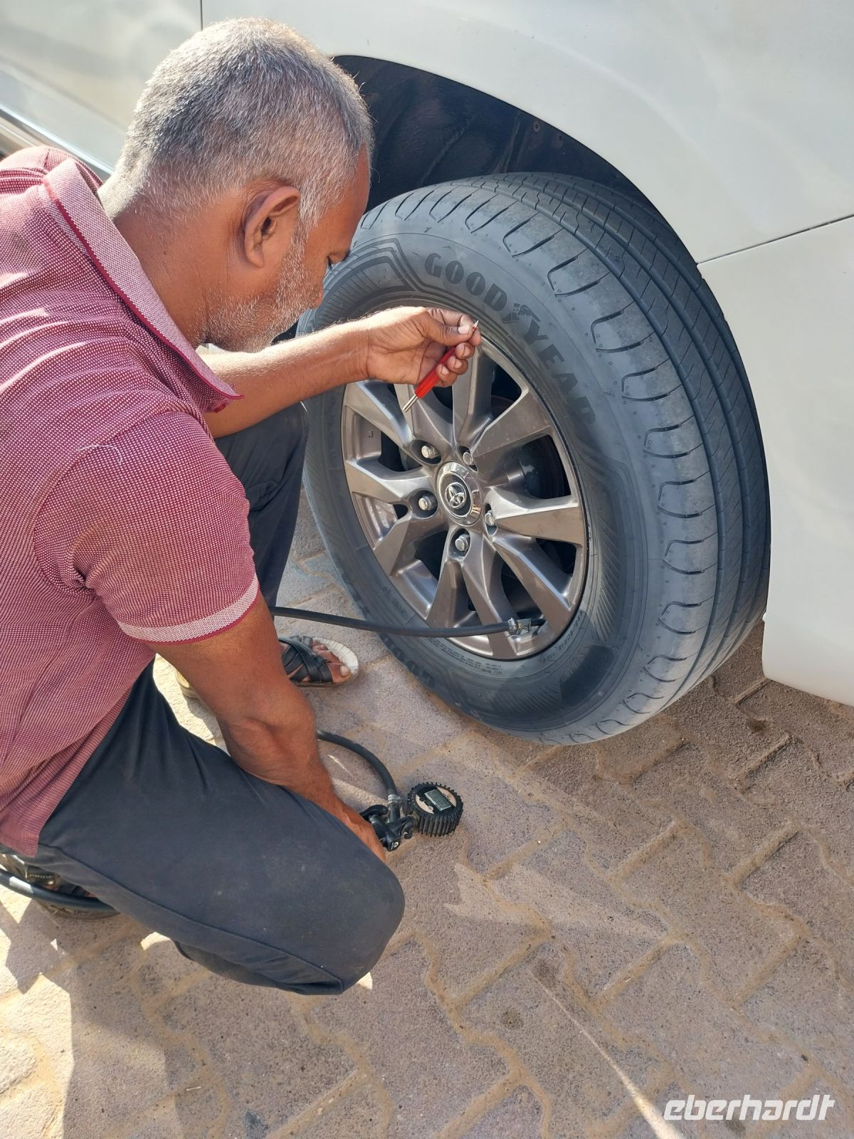 Am Morgen strahlt die Sonne bei angenehmen Temperaturen. Fünf Allradwagen stehen für uns bereit. In den nächsten vier Tagen werden uns Ali, Hussein (local guide), Sahir, Idris und Khalid durch den Norden des Oman fahren.