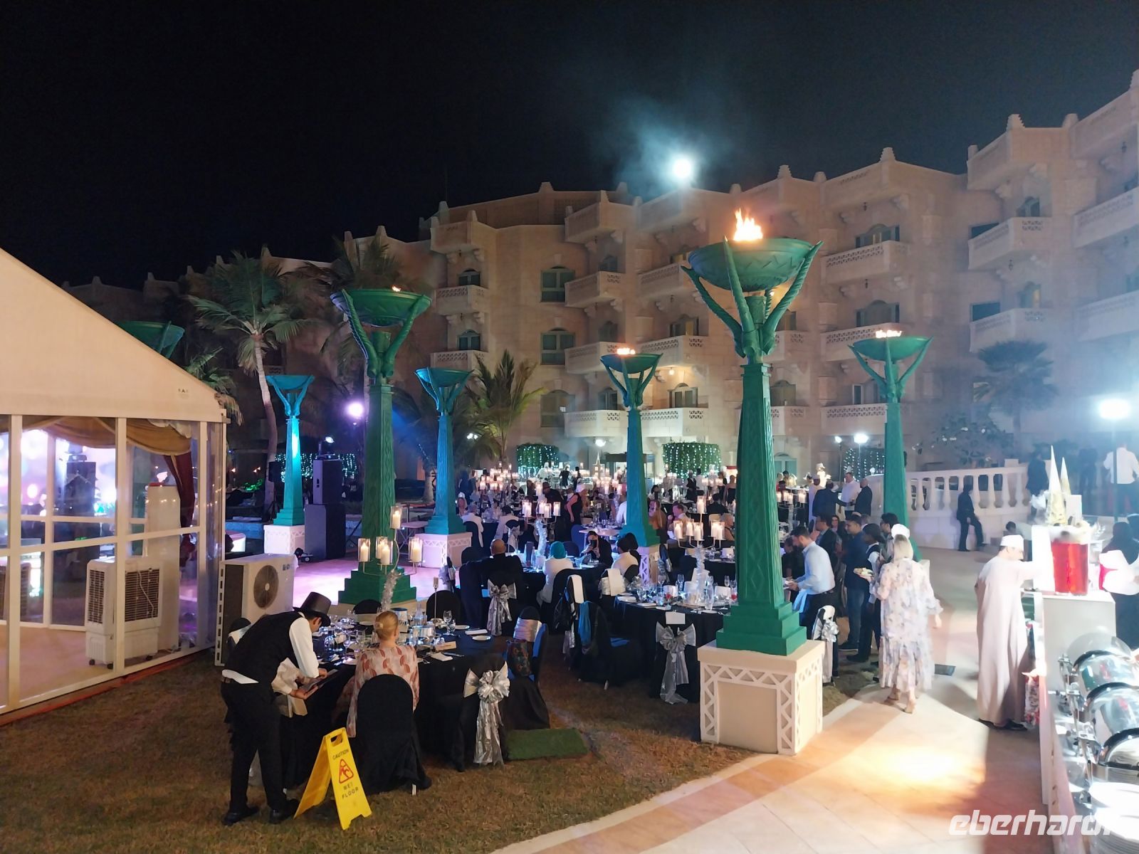 Im Golden Tulip Hotel in Nizwa erwartet uns am Abend ein leckeres Buffet im Freien.