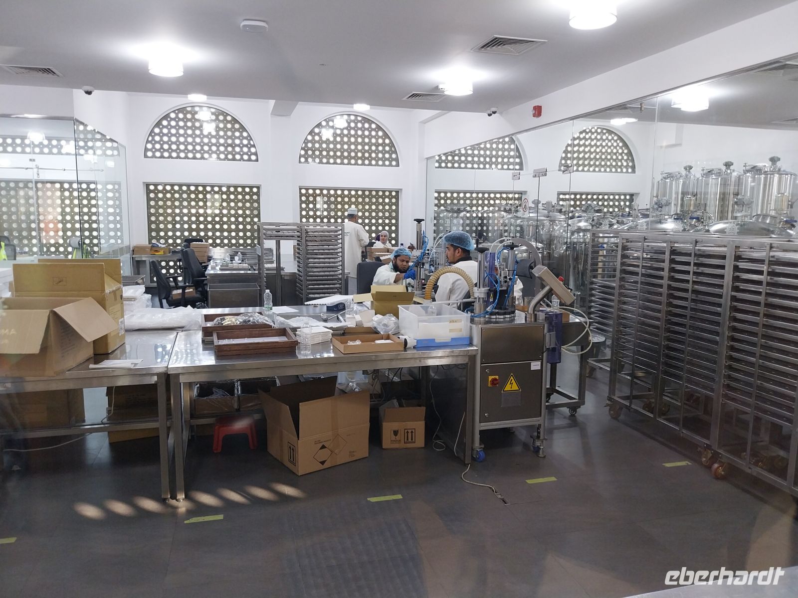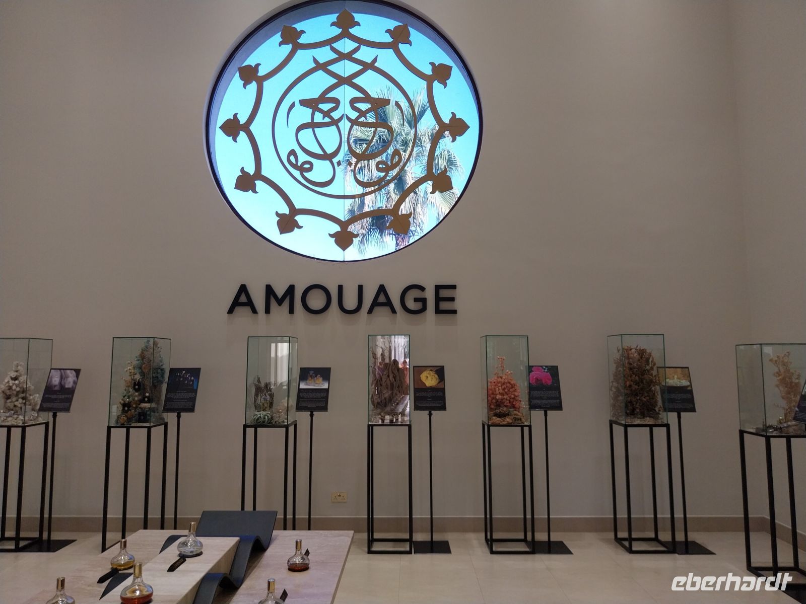 Die Rückfahrt nach Muscat nutzen wir für einen Besuch der Amouage Manufaktur. Im Besucherzentrum erfahren wir, dass das wohl teuerste Parfum der Welt 1983 auf Bitte von Sultan Qaboos kreiert wurde. Die ersten Jahre diente es ausschließlich dem Sultan als Geschenk für Staatsgäste. Heutzutage kann jeder den berühmten Duft des Oman kaufen, wenn man bereit ist, einen stolzen dreistelligen Betrag oder mehr auszugeben. Von Jahr zu Jahr kamen neue Duftvarianten hinzu und auch die kunstvollen Flacons für Männer in Krummdolchform und Frauen mit einer Moscheekuppel wurden stetig weiterentwickelt.