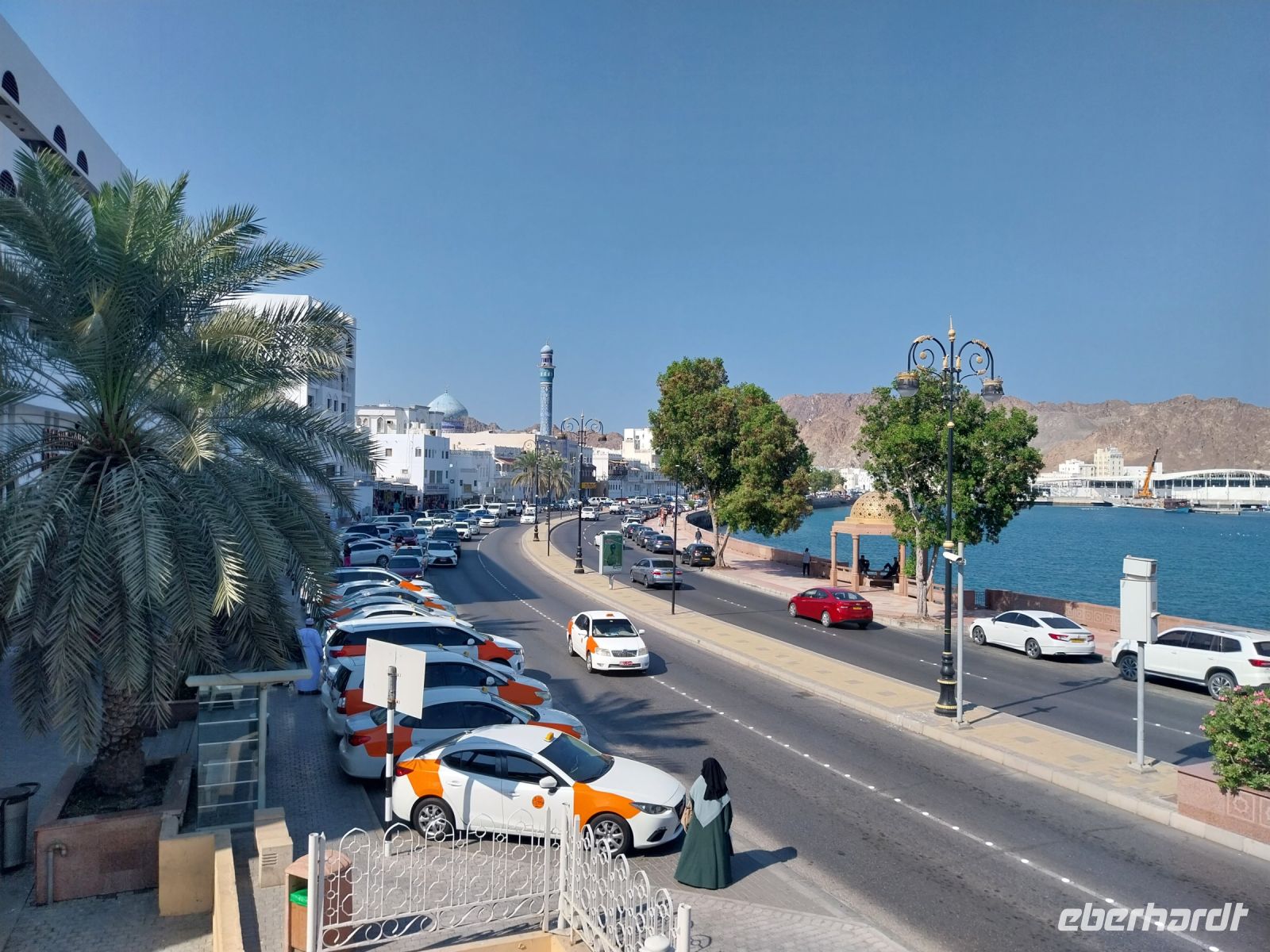 Unsere Stadtbesichtigung führt uns weiter in den Stadt Muttrah. Hier gibt es Gelegenheit für einen Bummel durch den überdachten Markt, den Souk. Es duftet nach Weihrauch – eine gute Gelegenheit, das Duftharz inklusive eines typischen Brenners aus Ton einzukaufen. Hier bietet sich auch eine gute Gelegenheit für eine Mittagspause, eine Kaffee oder einen kleinen Spaziergang entlang der malerischen Corniche von Muttrah.